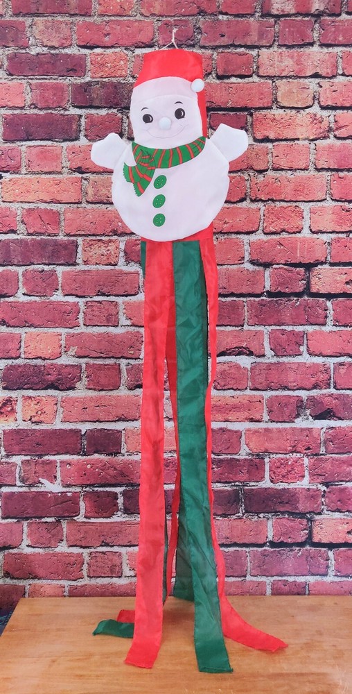 This listing is for one vintage snowman windsock. This snowman is in wonderful condition and is free of stains and tears. The colors are bright and the six streamers are firmly attached. The original nylon rope hanger is also included. From top to bottom this windsock measures at about 4 feet and 9 inches. Please check out the photos!