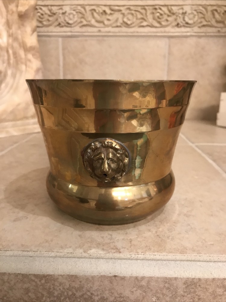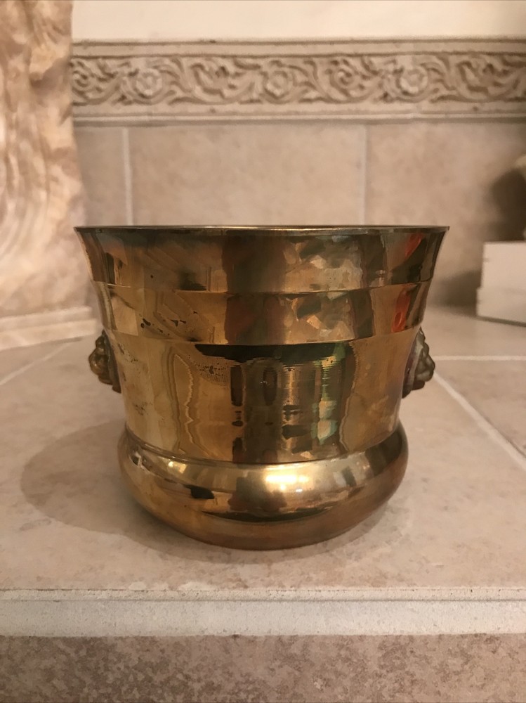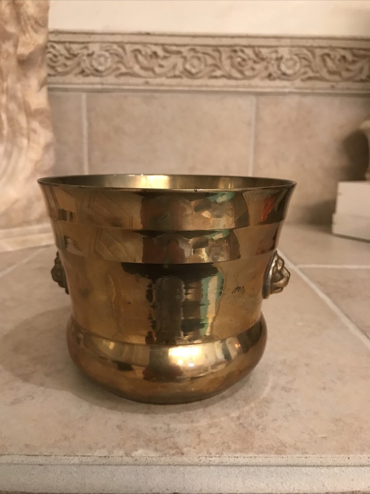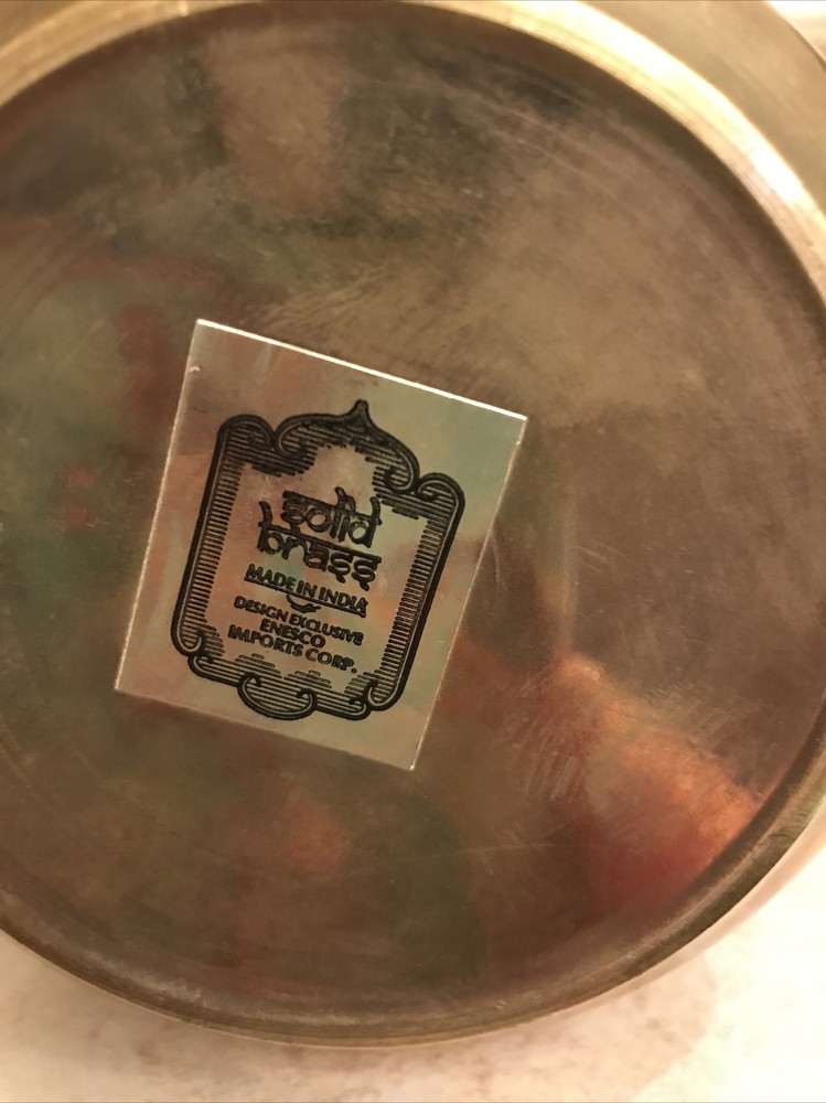 This vintage brass vase is a stunning addition to any collection. The intricate design and brass material make it a unique piece that is sure to catch the eye. Made in India, this vase stands at 4 inches tall and is perfect for displaying flowers or as a standalone decorative item. The vase has not been modified and is not handmade, making it a great choice for those who appreciate vintage pieces.