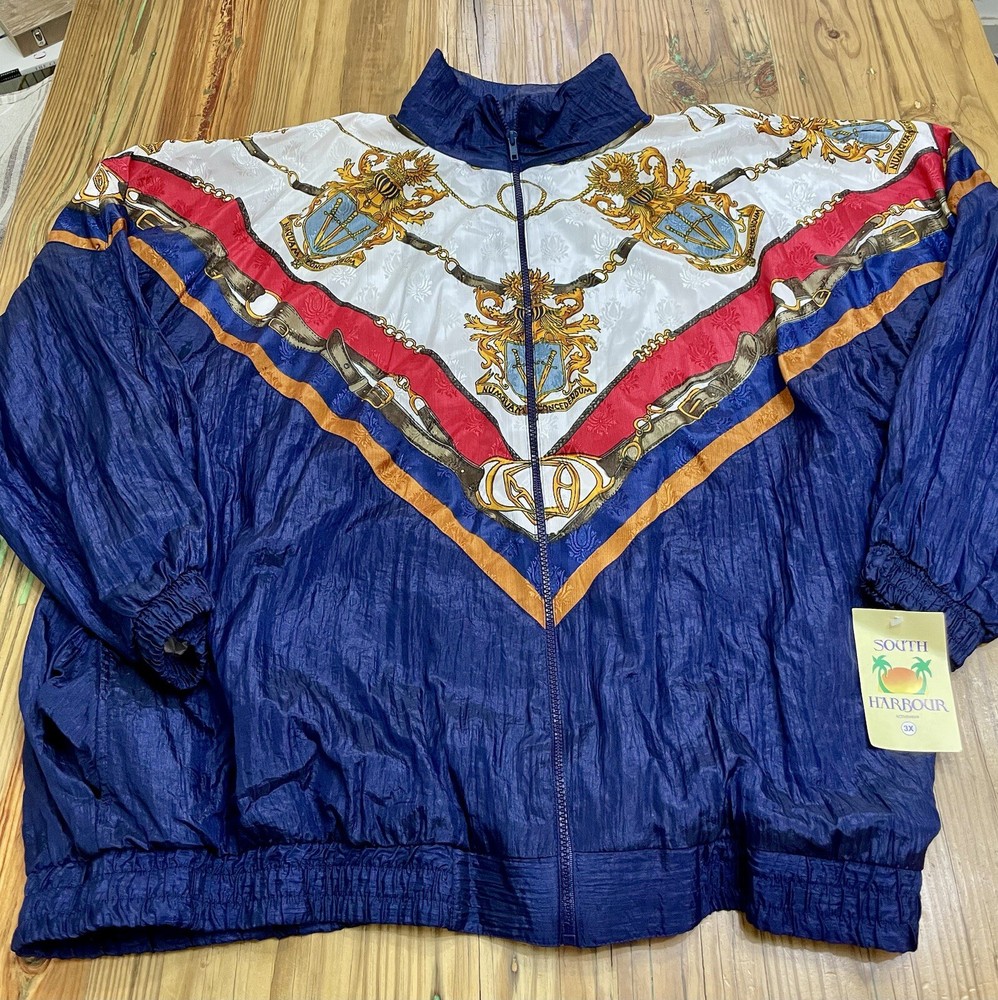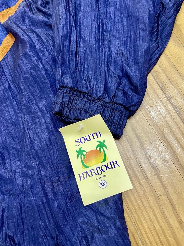 This vintage South Harbour windbreaker jacket is perfect for any athletic occasion. The color block pattern and full zip closure make it a stylish and functional addition to your activewear collection. Made of 100% polyester blended fabric, this jacket is both comfortable and durable. The jacket is designed for plus size women and features the Wind brand logo. Its 80s theme and all season features make it a versatile piece for gym & training, walking, cycling, fishing, hiking, running & jogging. Don't miss the chance to own this unique piece of activewear history. Brand new with tags. In perfect condition. Beautiful colors. Size is 3xl and measures 28” pit to pit and 28” in length.