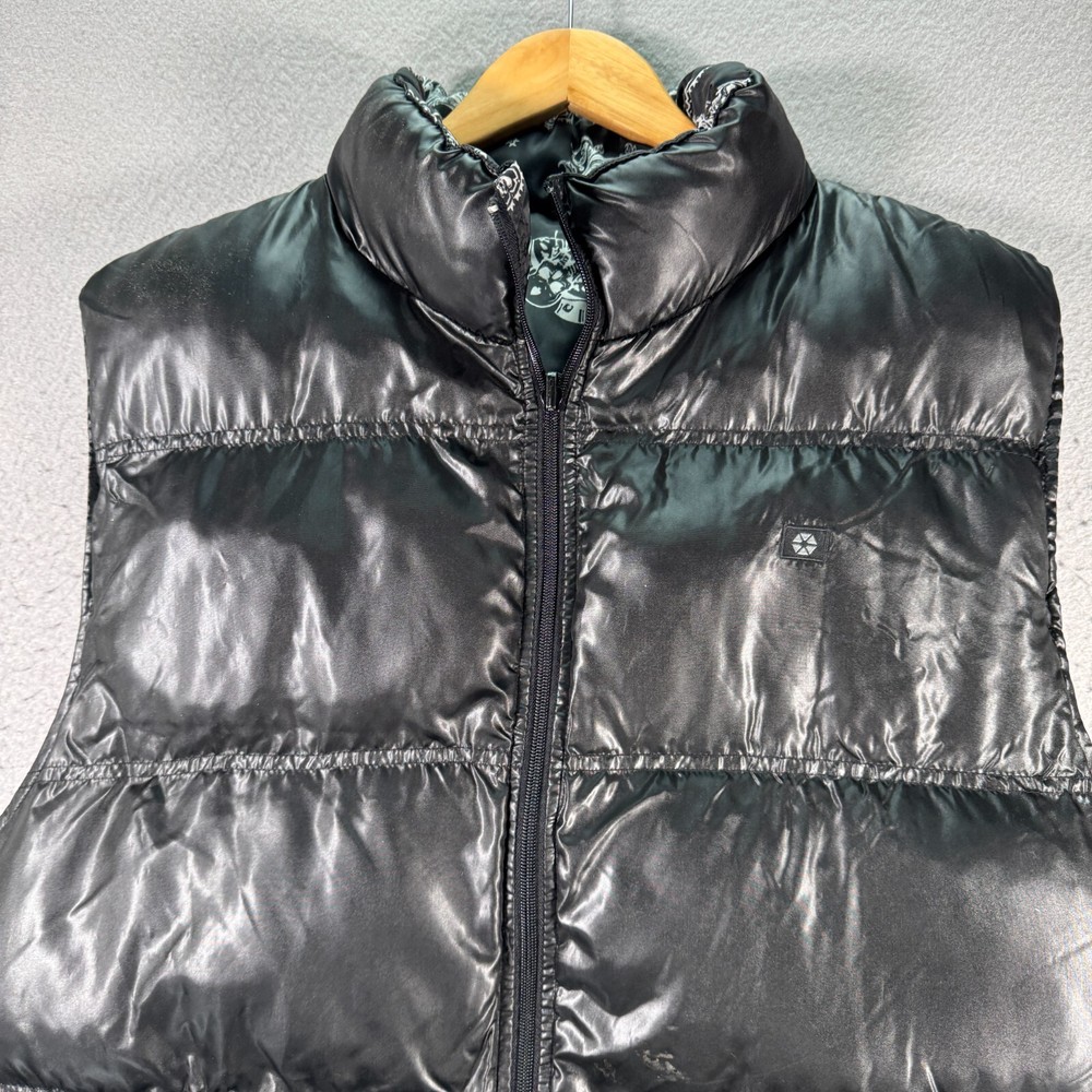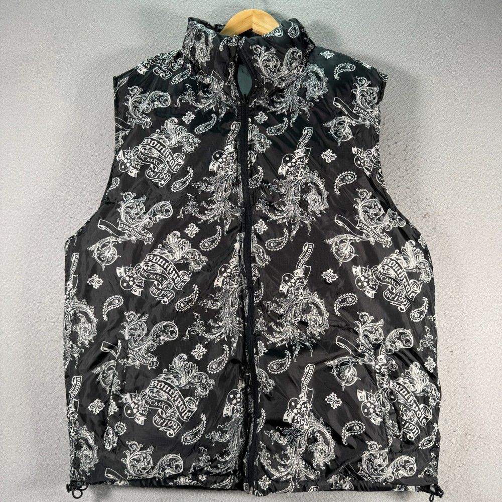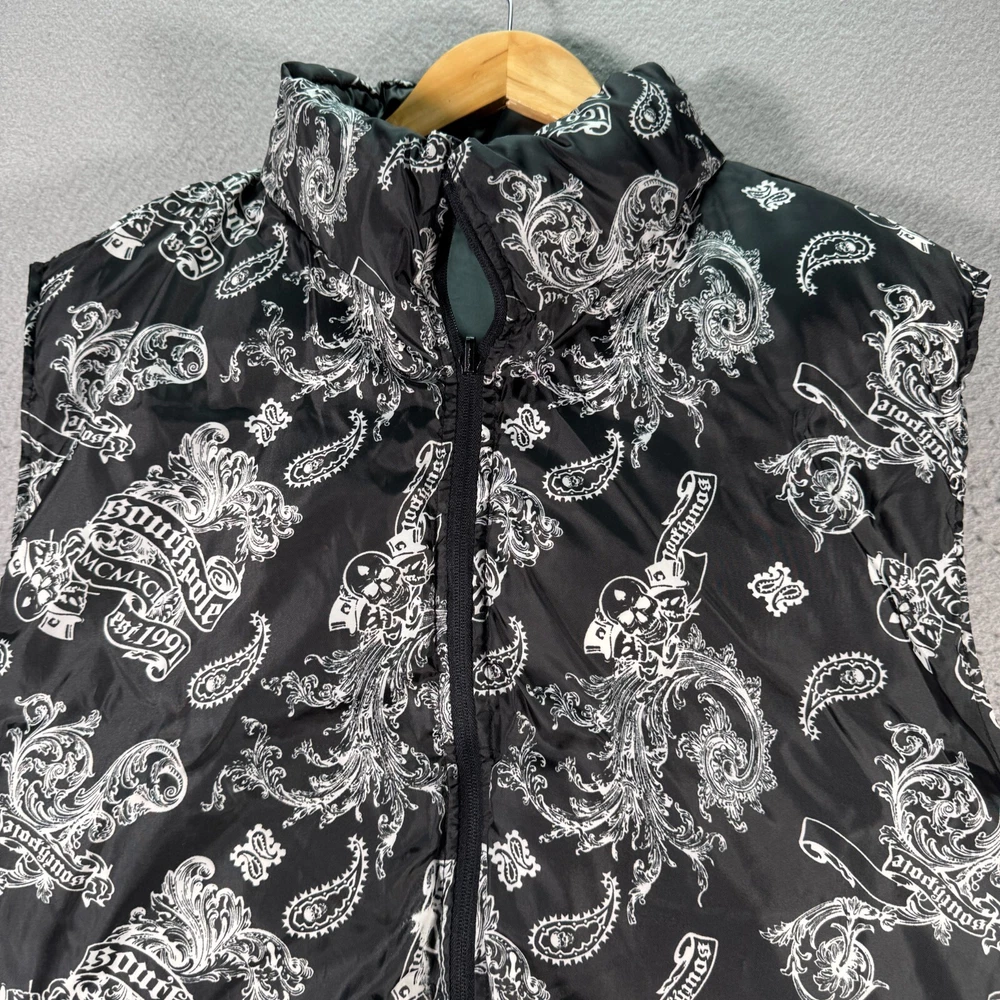 Vintage South Pole Reversible Puffer Vest Mens XL Black AOP Paisley Streetwear Y2K * Material: Polyester * Size: XL * Measurements: Please refer to pictures for measurements Year Released: N/A Description: Good pre-owned condition. 1 mark on front on black side as shown in pictures. This item is pre-owned, normally things in this condition have normal previous wear unless otherwise noted. Any drastic imperfections will always be noted in the description of item unless we miss something, in this case please refer to the pictures provided for further judgement by potential buyer Shipping Information Most orders placed are processed within 1 business day. Any question or desire regarding shipping, please do not hesitate to message