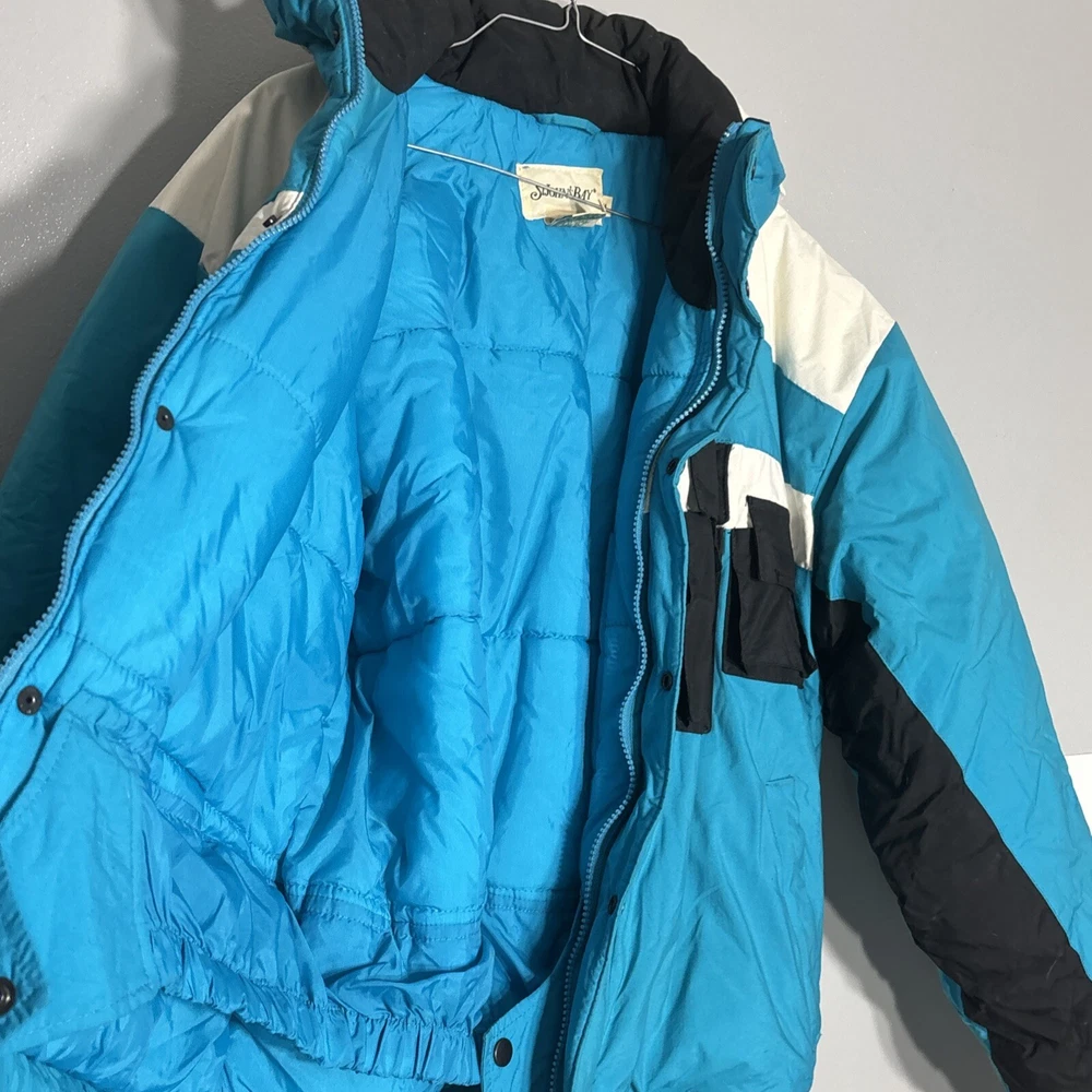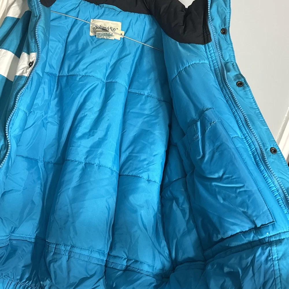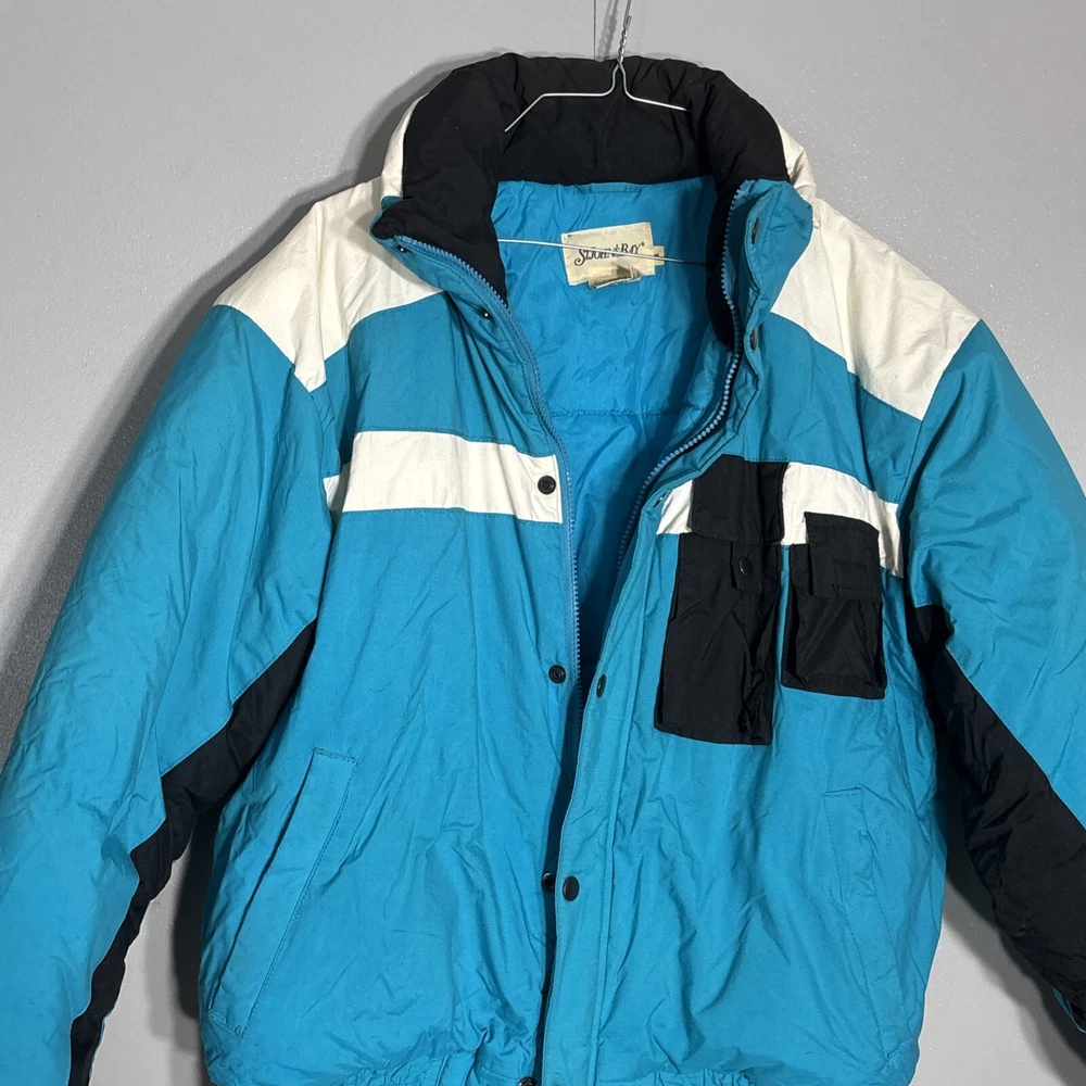 This vintage St. Johns Bay puffer jacket is a winter essential! Love the retro 90s vibe with the bold colors and contrast trim—super stylish yet functional. The insulation keeps me toasty without feeling bulky, and the water-repellent fabric handles snow like a champ. Perfect for hitting the slopes or just running errands in the cold. Super comfy, well-made, and the fit is spot-on. A total steal for the quality!