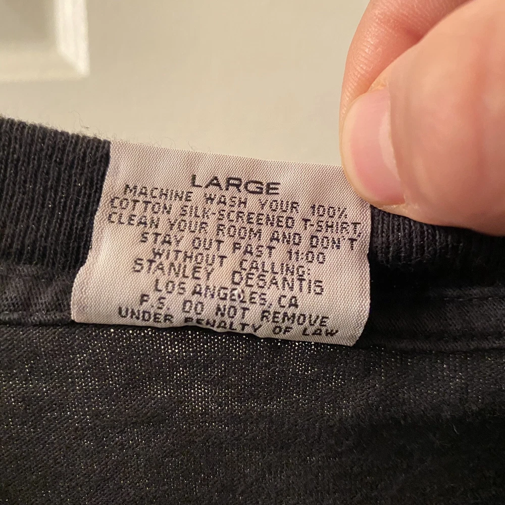 This vintage Stanley Desantis Gone With The Wind movie t-shirt is a must-have for any fan of the classic 80s film Gone With The Wind! The shirt features a solid black color with a crew neck and short sleeves, making it the perfect choice for all seasons. The double-sided shirt is machine washable and made from high-quality cotton knit fabric, ensuring both comfort and durability. The shirt's front showcases the iconic Gone With The Wind image, while the back features a graphic print of Stanley Desantis. The shirt is a size Large and has a regular fit, making it suitable for most men. This t-shirt is a great addition to any vintage clothing collection and is sure to turn heads.