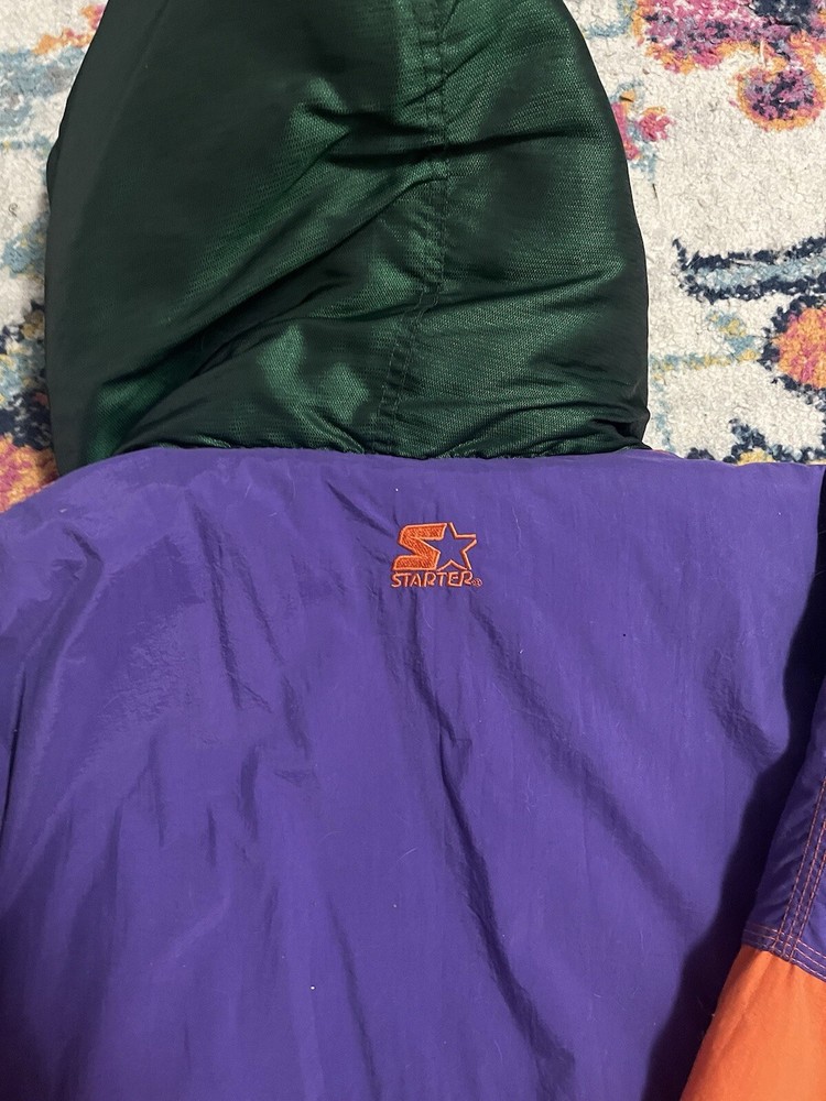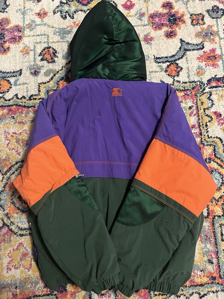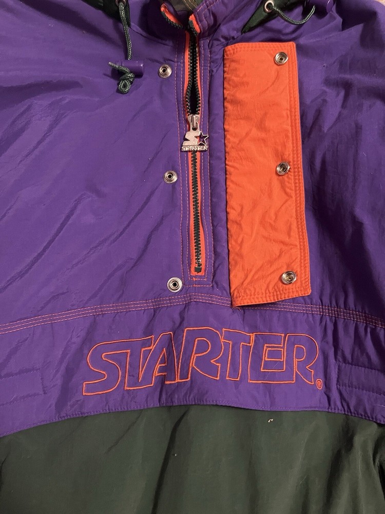 This vintage Starter jacket is a must-have for any fashion-forward man. The pullover design features a half zip closure, making it perfect for casual occasions. The softshell fabric type is lightweight and breathable, making it suitable for all seasons. The jacket is wind-resistant and has pockets for added convenience. This jacket is perfect for sports such as tennis, cycling, and basketball, as well as other activities such as hiking, walking, and riding. Don't miss out on this authentic piece from the 90s.