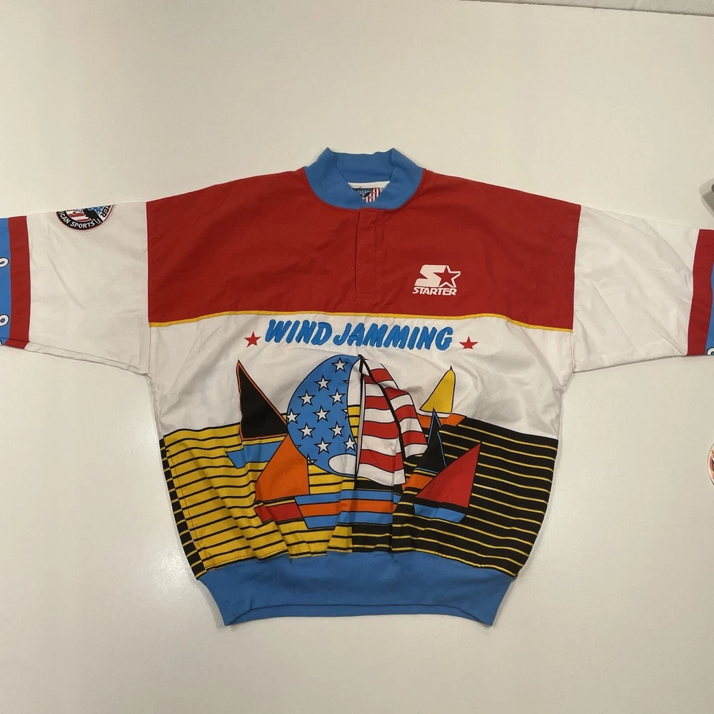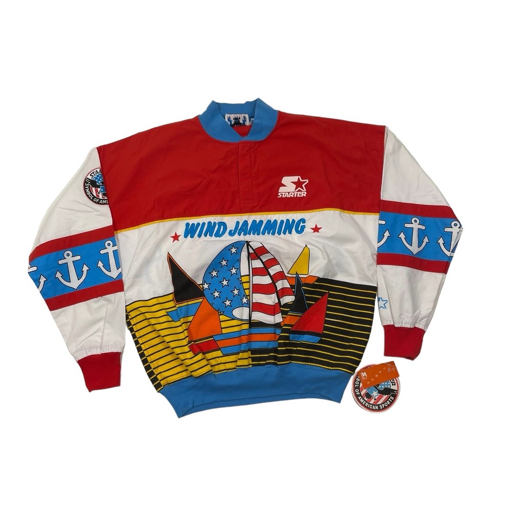 Vintage Starter Wind Jamming Pullover Sweatshirt 80s Sailing AOP Size XL NWT. See pictures for measurements and condition. Feel free to messege me with any further question. Shipped with USPS....