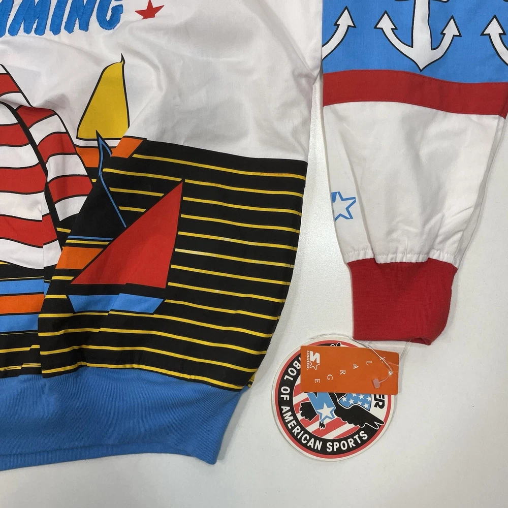 Vintage Starter Wind Jamming Pullover Sweatshirt 80s Sailing AOP Size XL NWT. See pictures for measurements and condition. Feel free to messege me with any further question. Shipped with USPS.