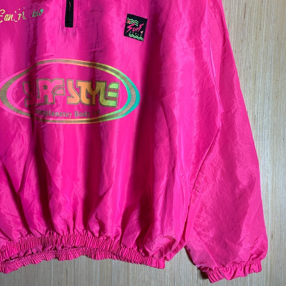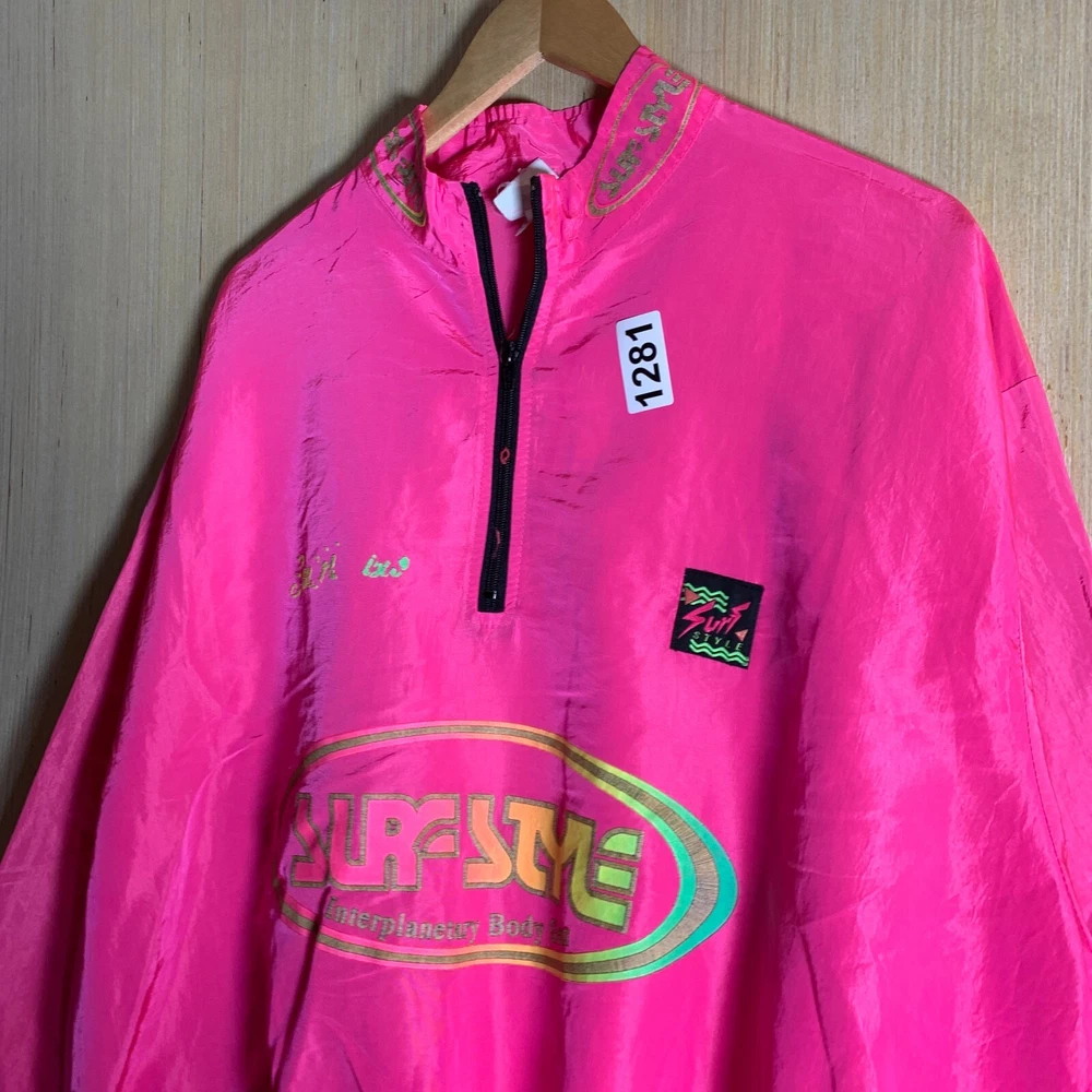 This vintage Surf Style windbreaker is a must-have for any fashion-forward man's wardrobe. With a solid multicolor pattern and embroidered logo accents, this jacket is perfect for any occasion, from casual outings to formal events. The outer shell is made of polyester knit fabric, which makes it comfortable to wear in any season. This windbreaker features a zip, button, and snap closure, and is preshrunk and easy to care for. It's a regular fit, size large, and has long sleeves to keep you warm in the winter and cool in the summer. Whether you're hitting the beach or the city streets, this jacket is the perfect addition to your outfit.