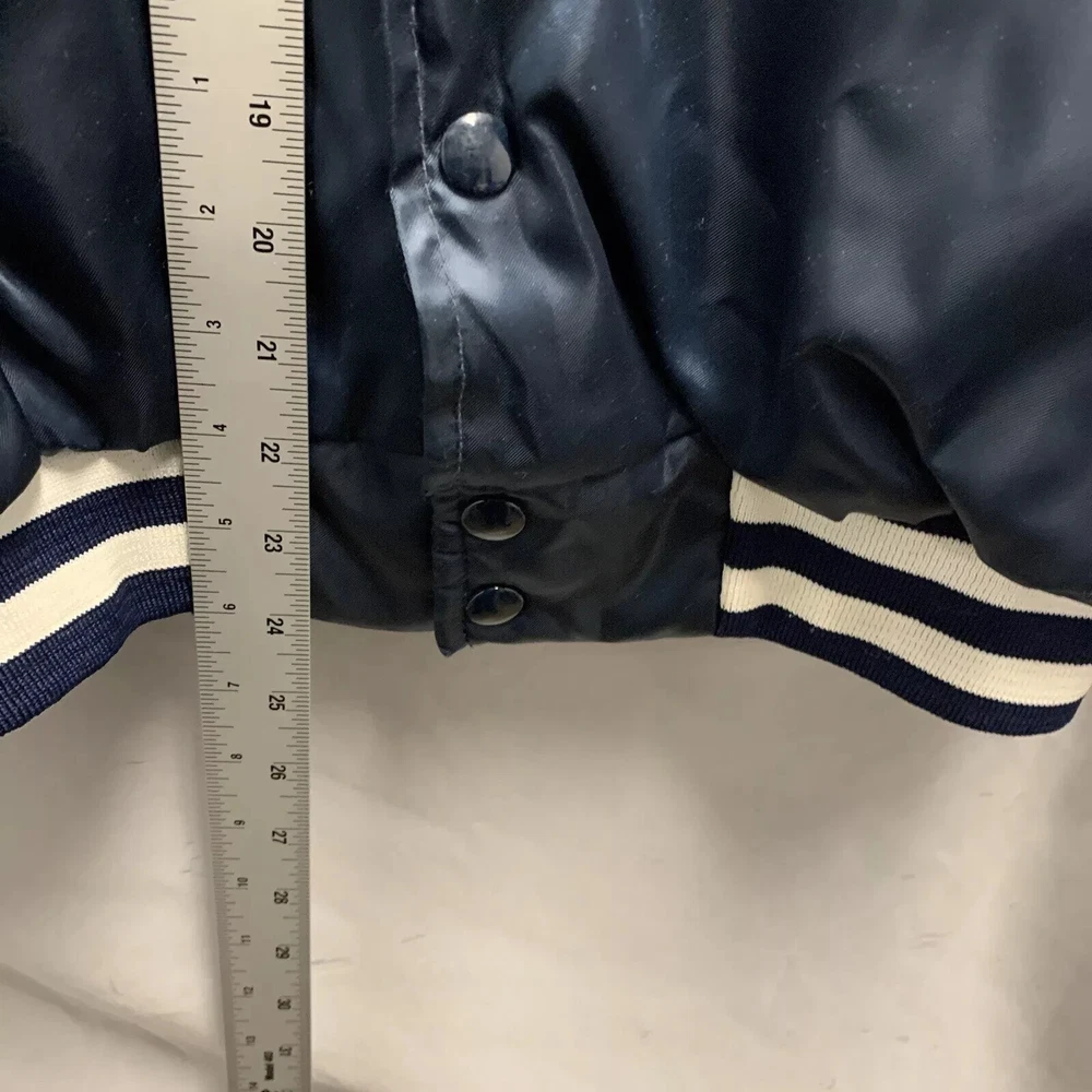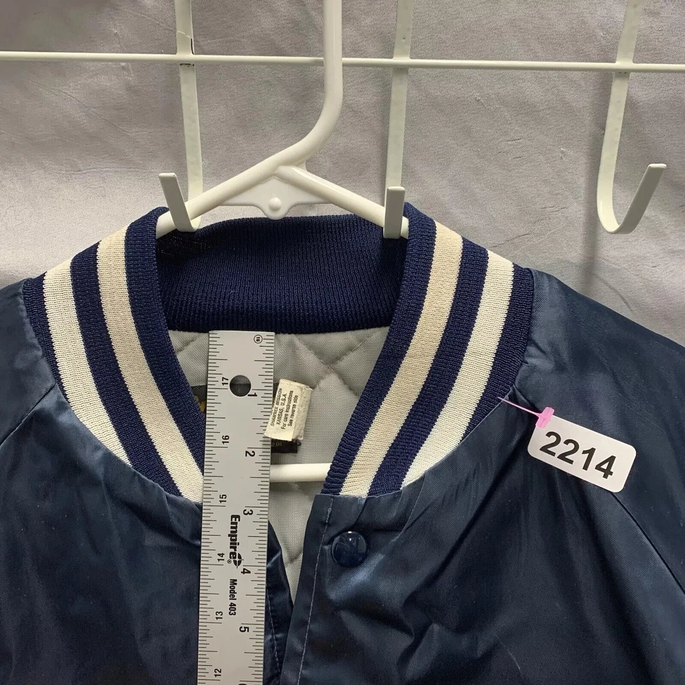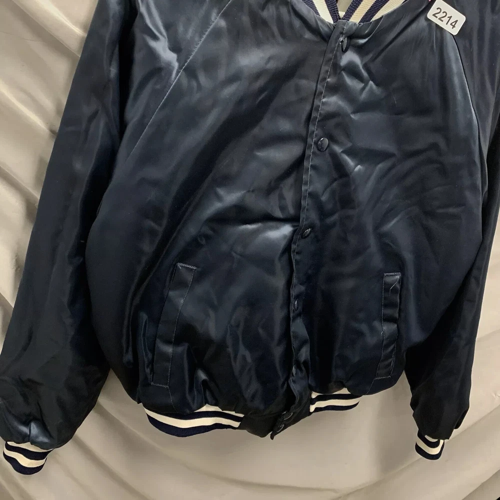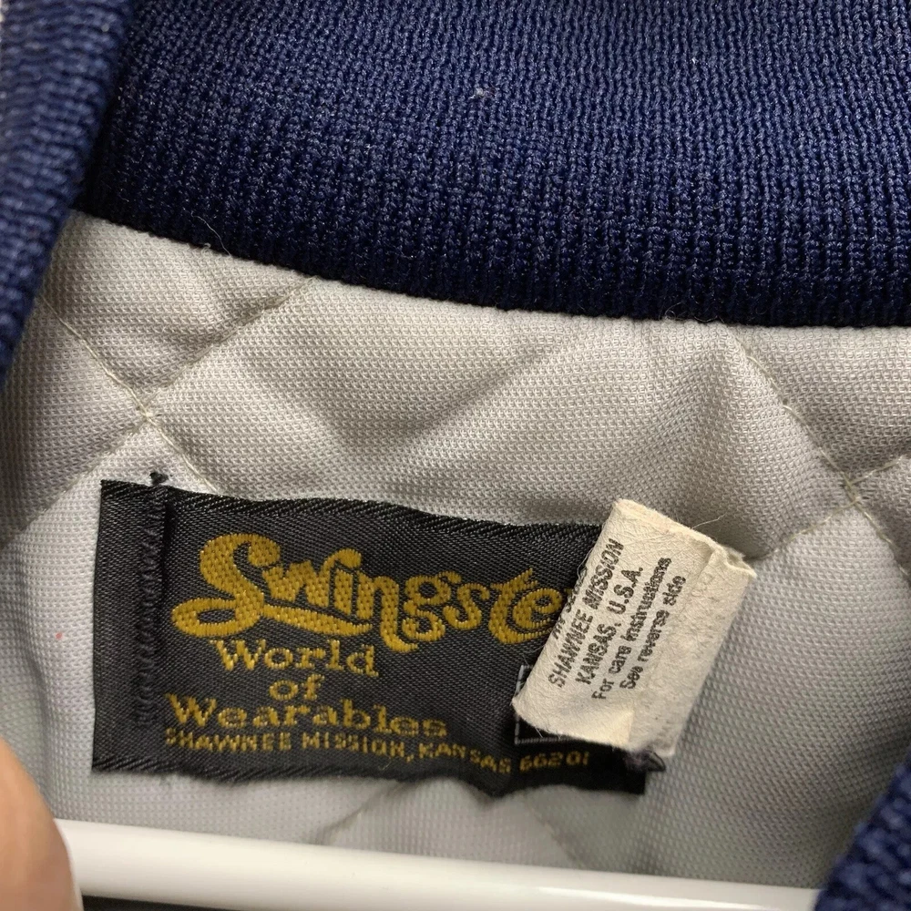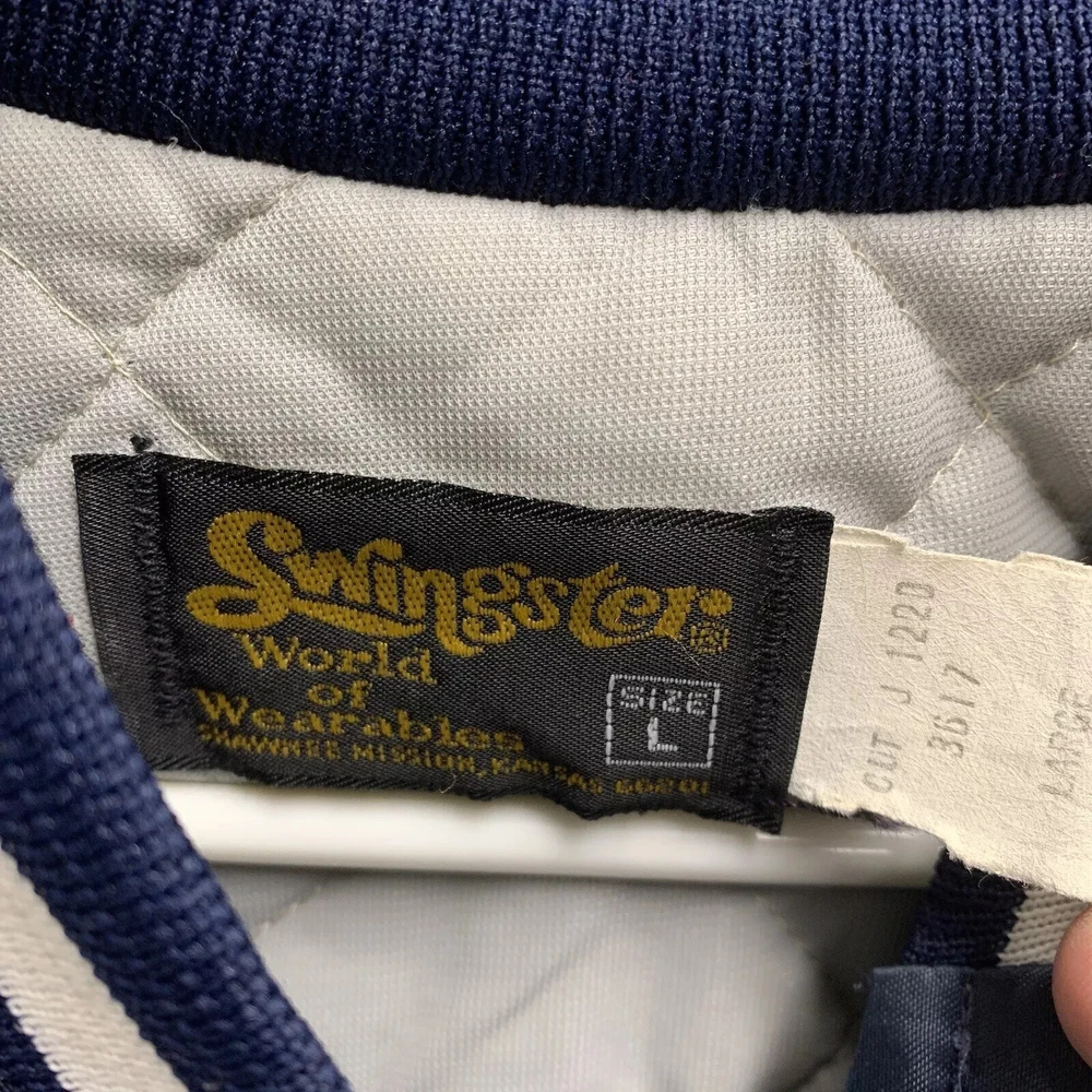 This vintage Swingster jacket is a must-have for any fashion-savvy man. The blue polyester outer shell with embroidered accents and a solid pattern makes this jacket perfect for any occasion, from casual wear to formal events. The jacket features a zip, buckle, and drawstring closure, ensuring a comfortable and secure fit. The long sleeve windbreaker has a lightweight design that makes it suitable for all seasons, whether it's winter, summer, fall, or spring. This jacket is perfect for riding, cycling, golf, baseball, cross-training, dance, CrossFit, Pilates, basketball, racing, or bodybuilding. The jacket is available in size L, and the lining material is made of polyester.