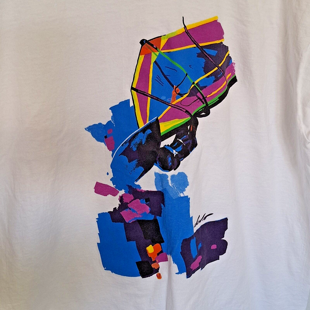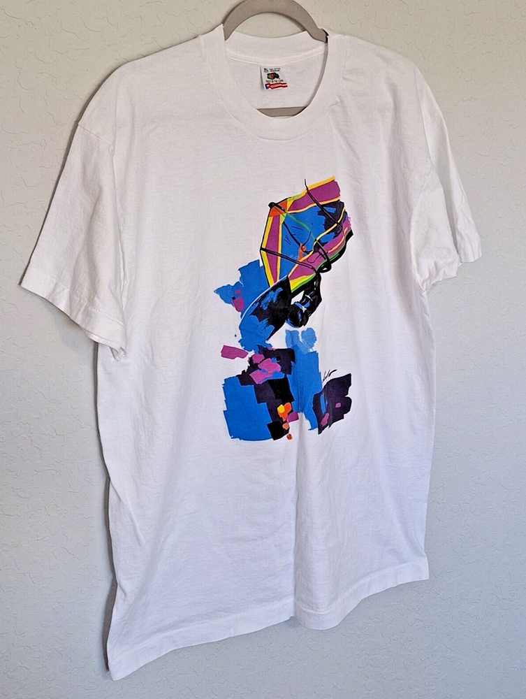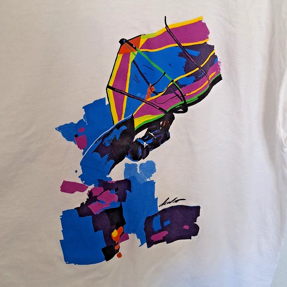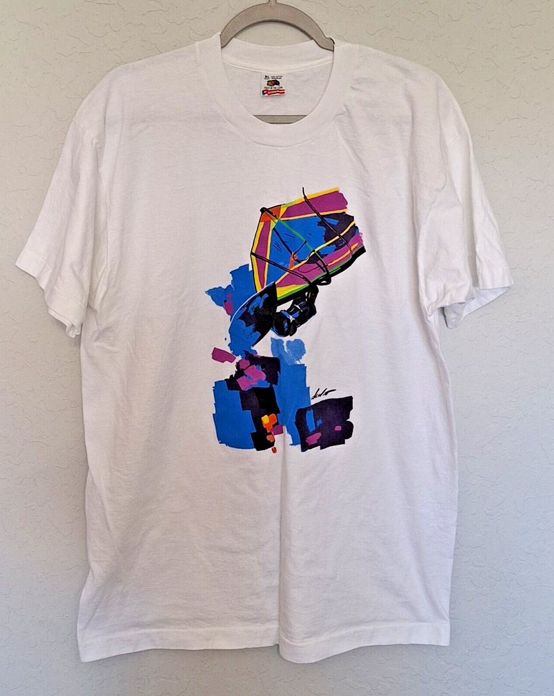 Vintage Jim DeWitt graphic art of windsurfer on Size XL Fruit of the Loom. Made in the USA and single stitch. Hard to find XL size on the real Fruit of the Loom tag, not a reprint. Deadstock and no wear. Stored in a clear polybag and will ship in an additional mailer for extra protection! Thank you for looking!!