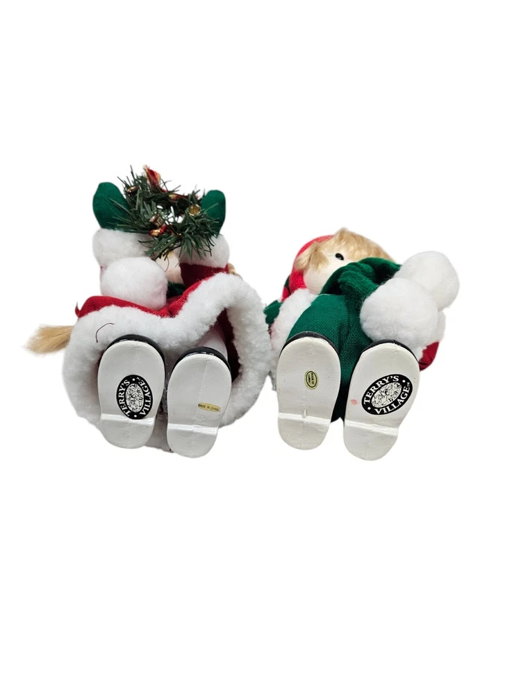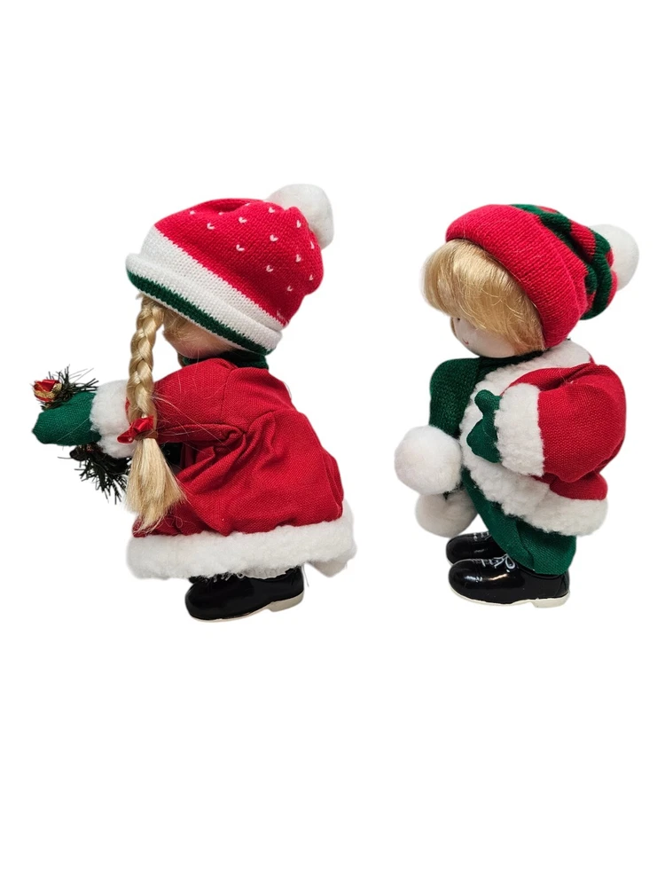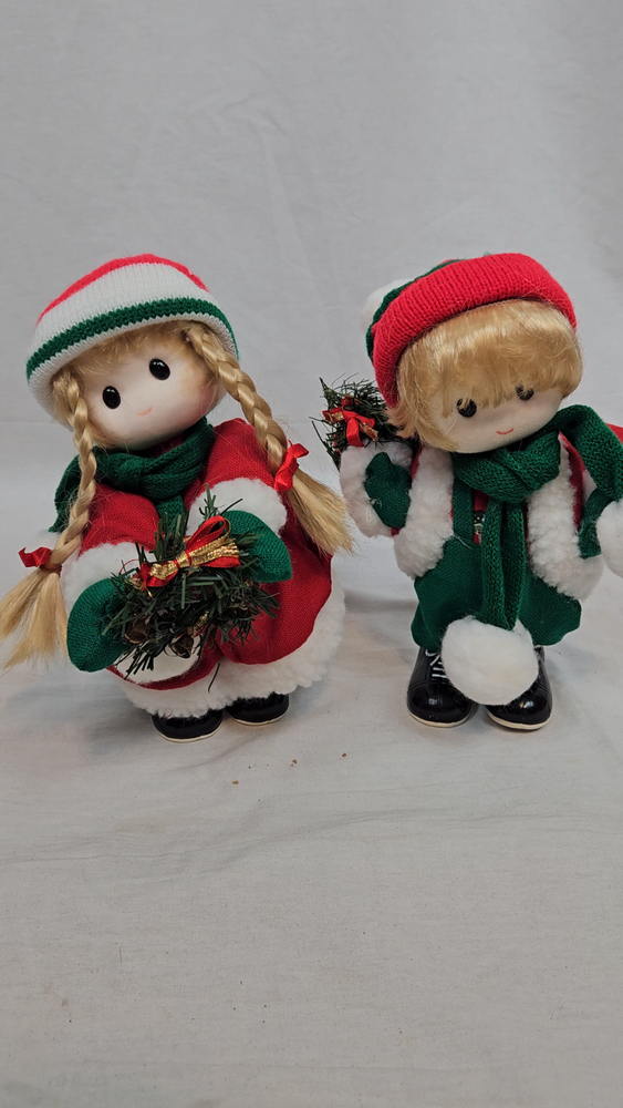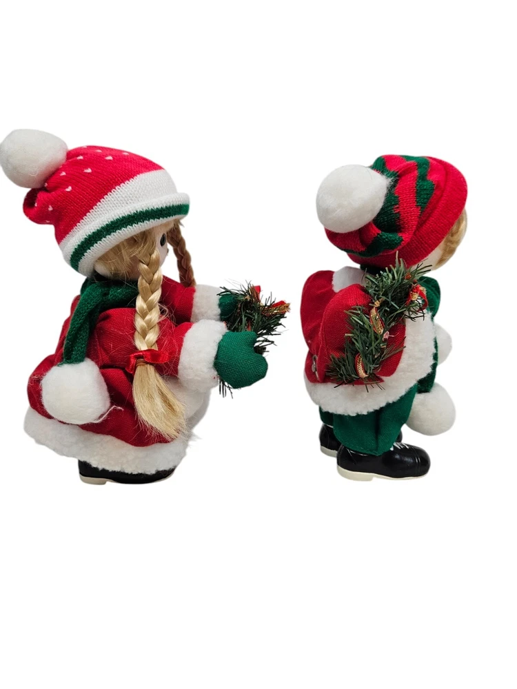 Vintage Terry's Village Girl & Boy Jingle Bells Music Wind-Up Motion Doll Set In excellent condition Vintage Terry's Village Girl & Boy Jingle Bells Music Wind-Up Motion Doll Set Features vintage 90s Terry's Village set of wind-up musical Christmas dolls, back wind up mechanism, girl and boy set, instrumental Jingle Bells and heads move, both are dressed in festive outdoor Christmas gear with scarves and holding wreaths. Measurements height 10" length 6" depth 3" Fabric mixed This is a pre-owned item that may show signs of wear. In excellent condition, no flaws. Tested - works - wind-up is tight. 14 Day returns accepted under the following conditions: Item must be in the same condition as stated If item shows additional wear buyer will receive a partial refund Buyer pays all shipping costs Refund amount will be for the item price only Please contact me prior to starting a return