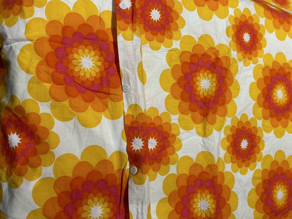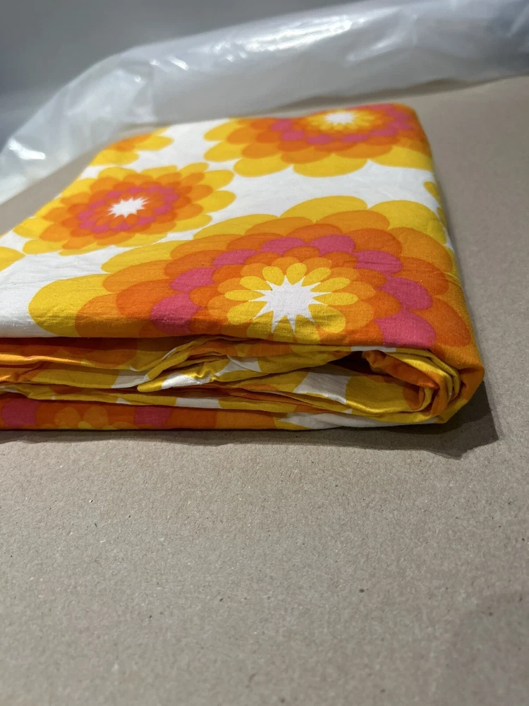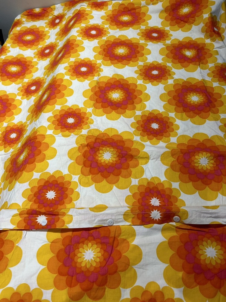This vintage Danish import duvet cover is a must-have for any collector of unique textiles. The orange and yellow gradient on a white background gives it a distinct 1970's look, perfect for adding a pop of color to your bedroom. This twin size duvet is a new product without tags, so the cotton is a crisp, clean & tightly woven material without flaws. The item is a new, unused twin duvet cover and is considered deadstock. It was manufactured in Denmark in the 1970’s. ****condition is NEW -crispy cotton without wear****Happy Shopping!! Feel free to ask any questions!