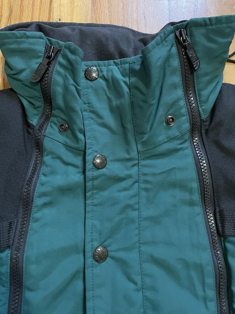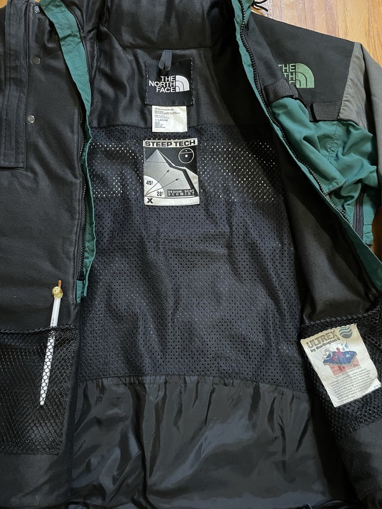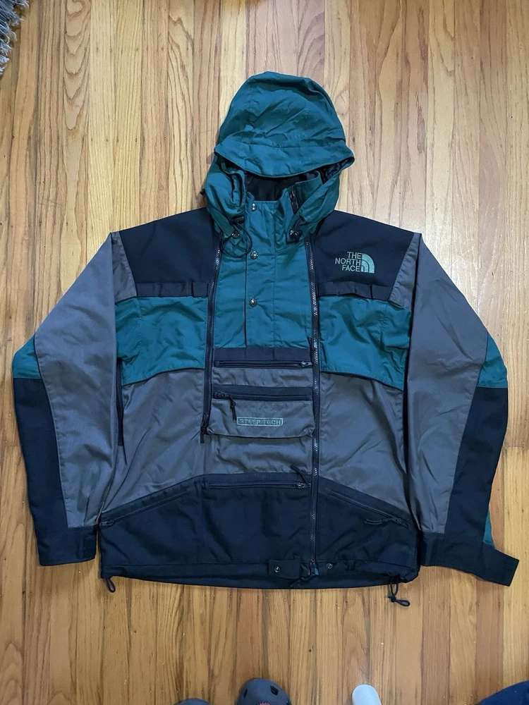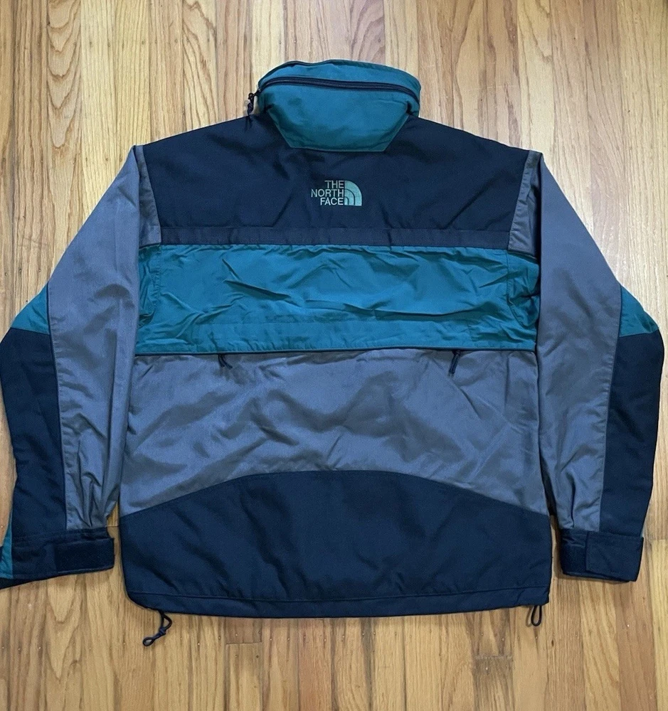 This 1990’s Vintage The North Face Steep Tech Jacket is a classic outdoor piece perfect for men looking for a versatile winter coat. Made with durable nylon outer shell material and cozy fleece fabric type, this 3-in-1 jacket features a zip and button closure, removable hood, and multiple pockets for functionality. With its retro design and iconic logo accents, this mid-length jacket is ideal for travel and casual occasions in the colder seasons. The North Face brand ensures quality and performance, making this jacket a timeless wardrobe staple for outdoor activities like hiking and skiing.