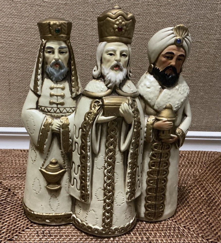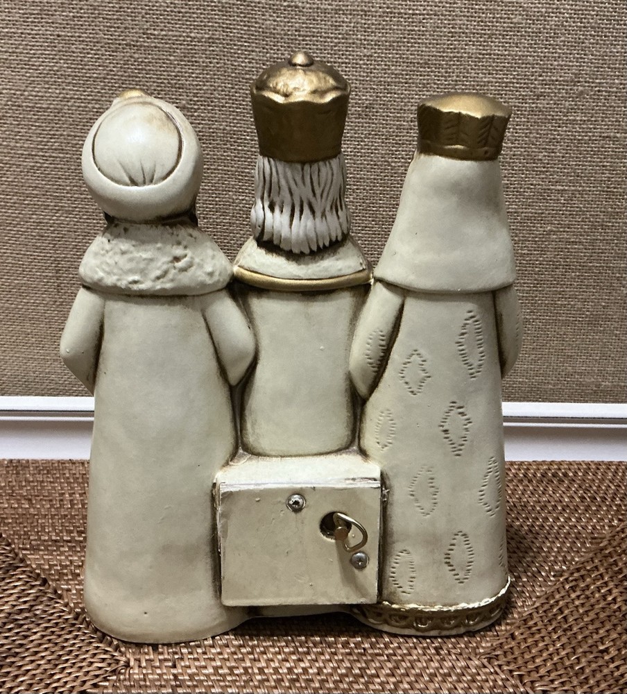 Vintage Three Kings Wise Men Wind Up Musical Figure Christmas Nativity Gold This item does have a musical wind up song, I am not sure what song it is. Measures: 7.5” x 9.5”...