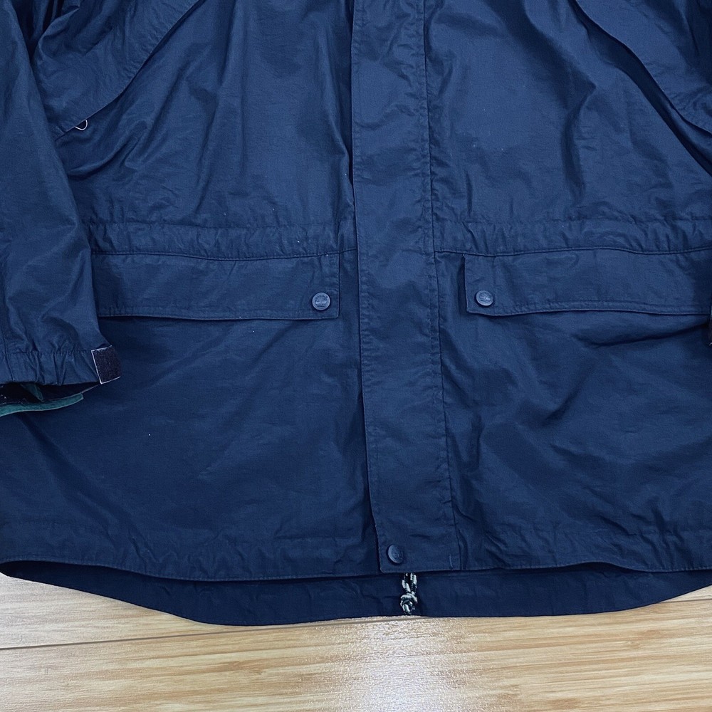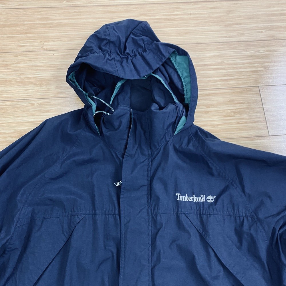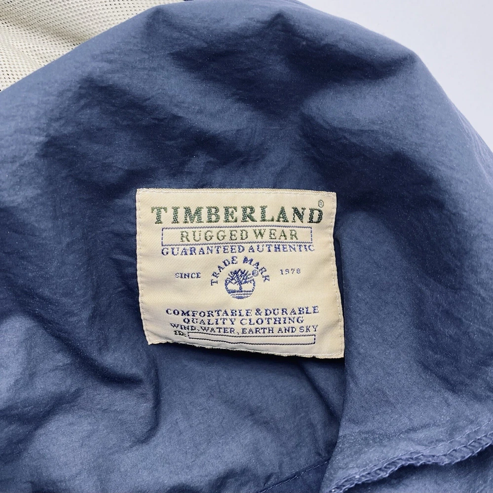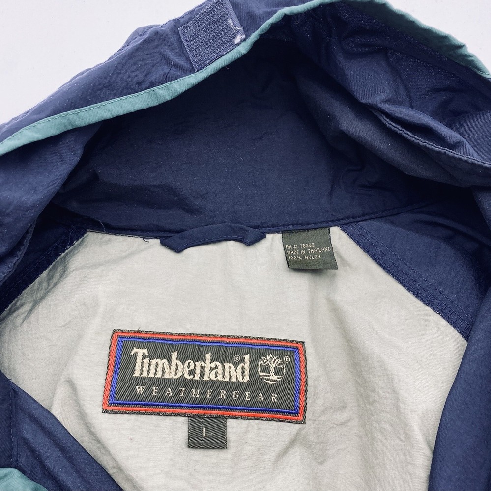 This vintage Timberland jacket is a must-have for any stylish man's wardrobe. The green and blue windbreaker features a 1/4 zip closure, hood, and is made of lightweight polyester material, making it perfect for all seasons and weather conditions. The jacket is also water-resistant and wind-resistant, ensuring you stay dry and comfortable in any weather. The jacket comes in a size L, and its unique blue-purple model makes it a standout piece. The jacket is perfect for outdoor activities such as hiking, camping, or any outdoor event. This jacket is a Timberland brand, and its quality is unmatched. Add this vintage jacket to your collection today!
