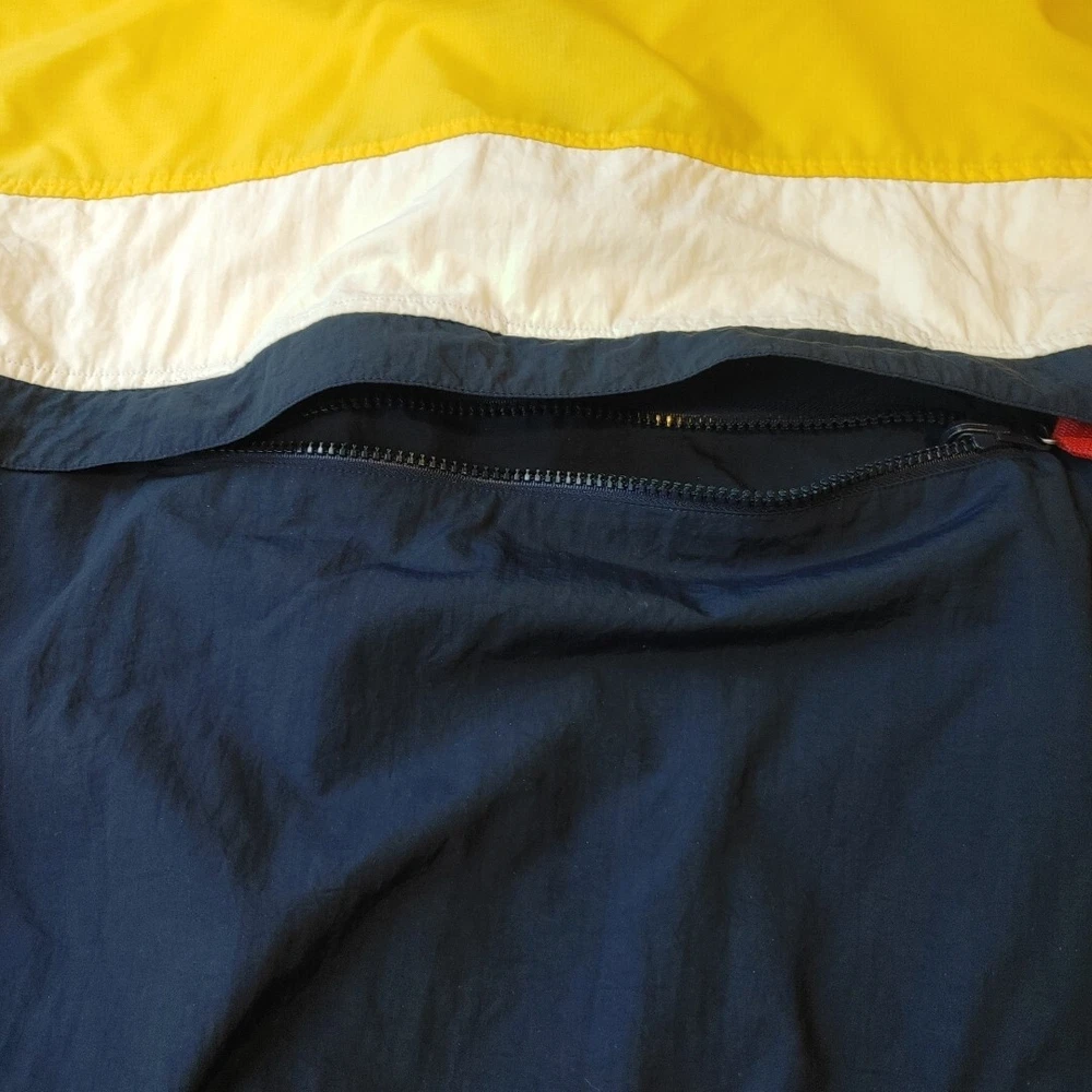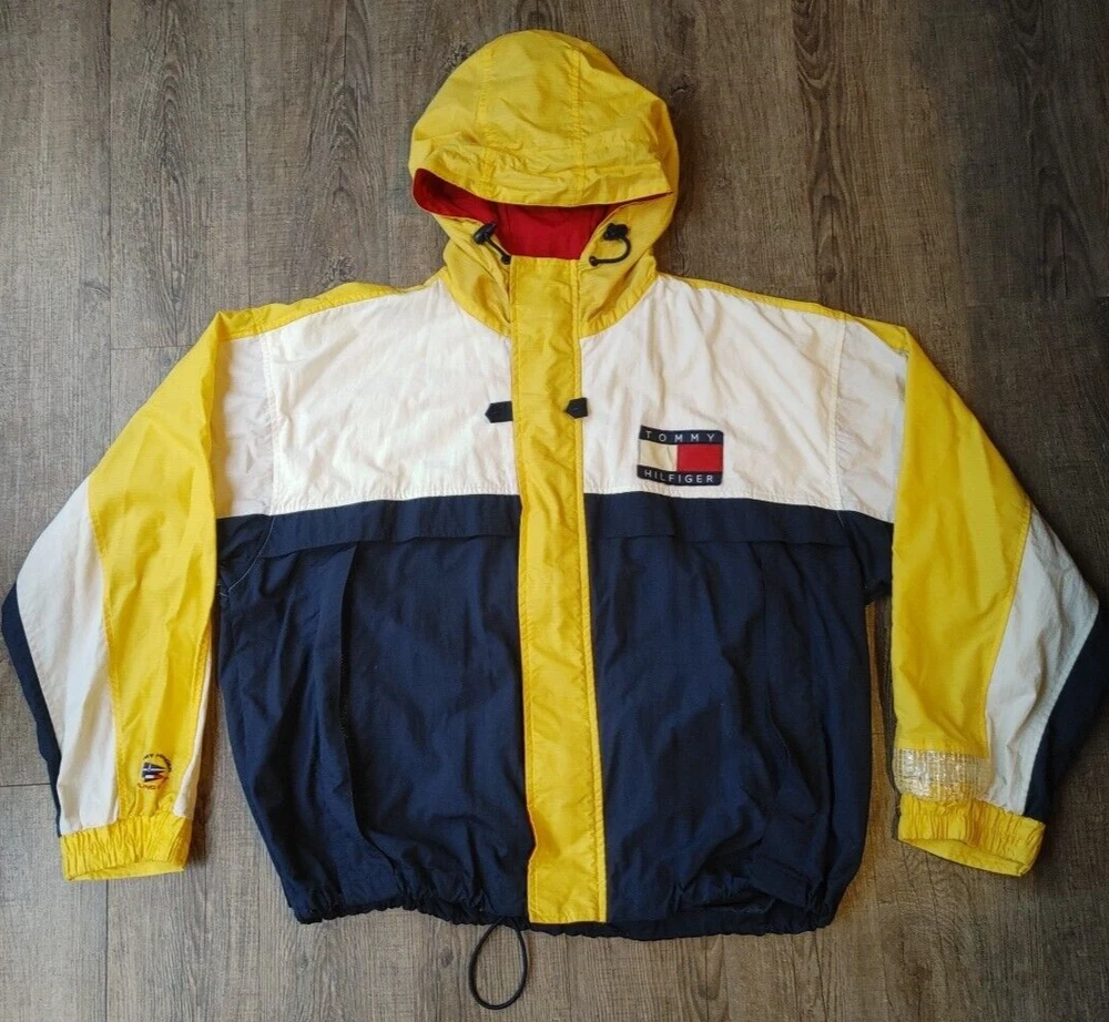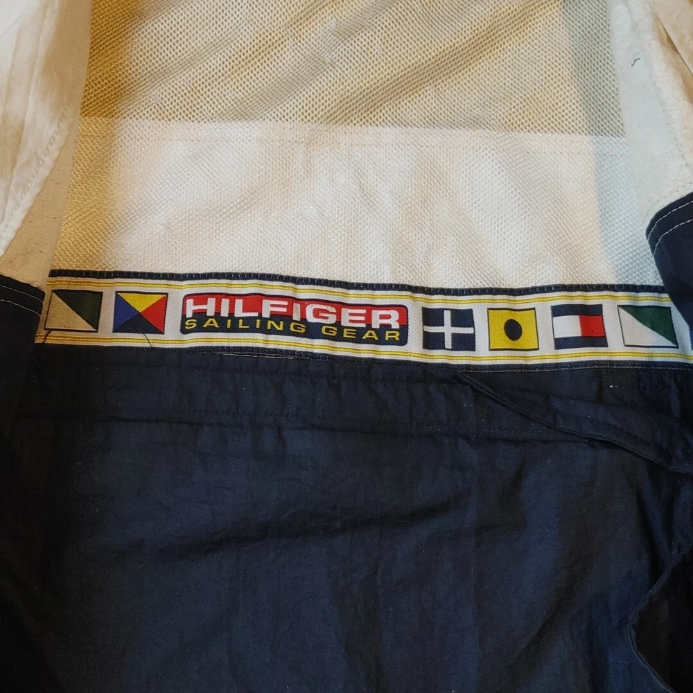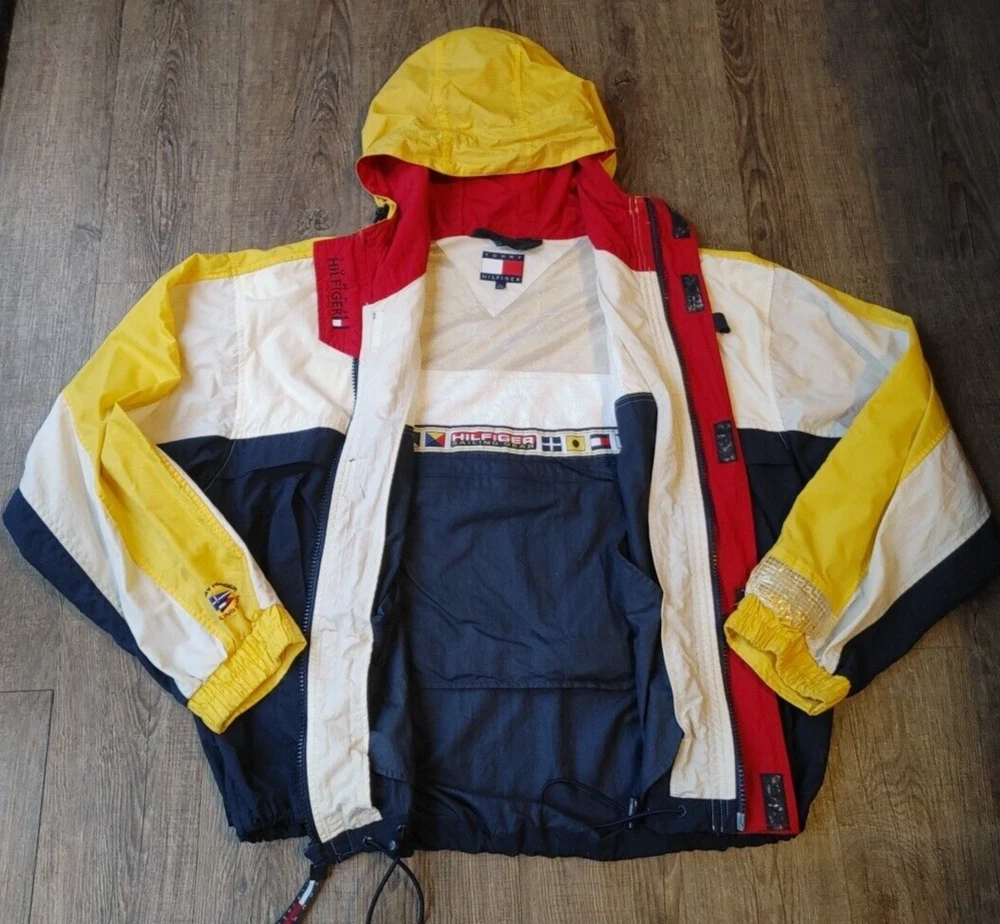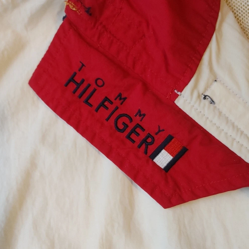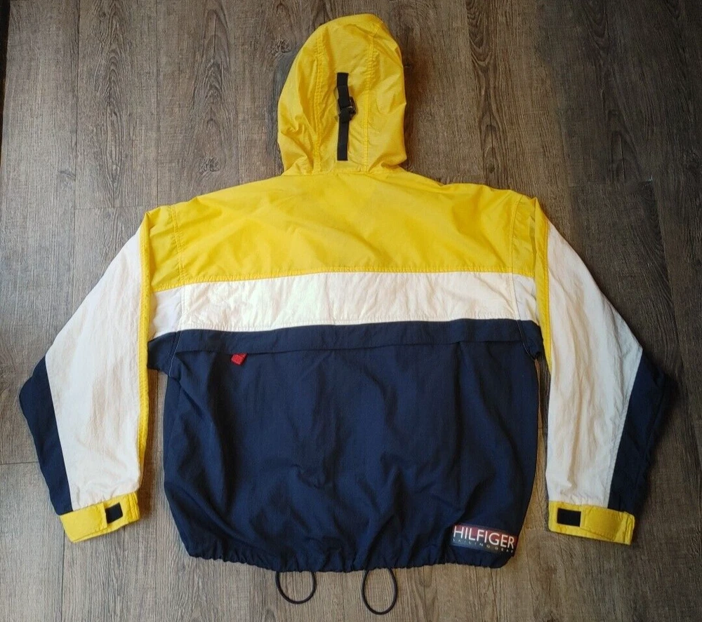 EXCELLENT PRE-OWNED CONDITION NO RIPS, TEARS, HOLES OR STAINS COLORS: MULTI- COLORS YELLOW,WHITE, NAVY, RED PATTERN: COLORBLOCK LONG SLEEVES HOODED WITH CINCH CLOSURE FULL ZIP WITH HOOK & LOOP SELF CLOSURE CINCH WAIST HEM 2 LARGE SLASH POCKETS ZIP CLOSURE ELASTIC COMPRESSION CUFFS HOOK & LOOP SELF CLOSURE TOMMY HILFIGER PATCH LEFT CHEST & RIGHT CUFF CLEAR SEE THROUGH PATCH ON LEFT SLEEVE ABOVE CUFF INNER POCKETS LARGE POUCH POCKET HALF DOWN THE JACKET ZIP CLOSURE WEBBED STRAP ON BACK OF HOOD & INSIDE BACK POUCH POCKET LARGE HILFIGER SAILING GEAR SILICONE LIKE PATCH LOWER RIGHT WAIST BAND NYLON, POLYURETHANE, POLYESTER DRY CLEAN ONLY!!!!! LENGTH 27" (COLLAR/NECK SEAM TO WAIST BAND HEM) WIDTH 26" (ACROSS CHEST) SLEEVE LENGTH 37" (COLLAR/NECK CENTER TO CUFF HEM) ALL GARMENTS ARE PRE-OWNED USED "LIKE NEW" CONDITION UNLESS STATED ABOVE! SHIP SAME DAY OR NEXT DAY SHIPPING USING USPS! 30 DAY RETURN POLICY! ALL MEASUREMENTS ARE TAKEN WITH GARMENT LAYING FLAT! SOLD AS IS! PLEASE SEE PICTURES AS THEY ARE PART OF THE DESCRIPTION! NOTE: THE DIGITAL IMAGES DISPLAYED ARE ACCURATE COLOR(S) AS POSSIBLE. HOWEVER, DUE TO DIFFERENCES IN MONITORS/SCREENS, THERE MAY BE VARIATION IN COLOR BETWEEN THE ACTUAL PRODUCT AND YOUR SCREEN.