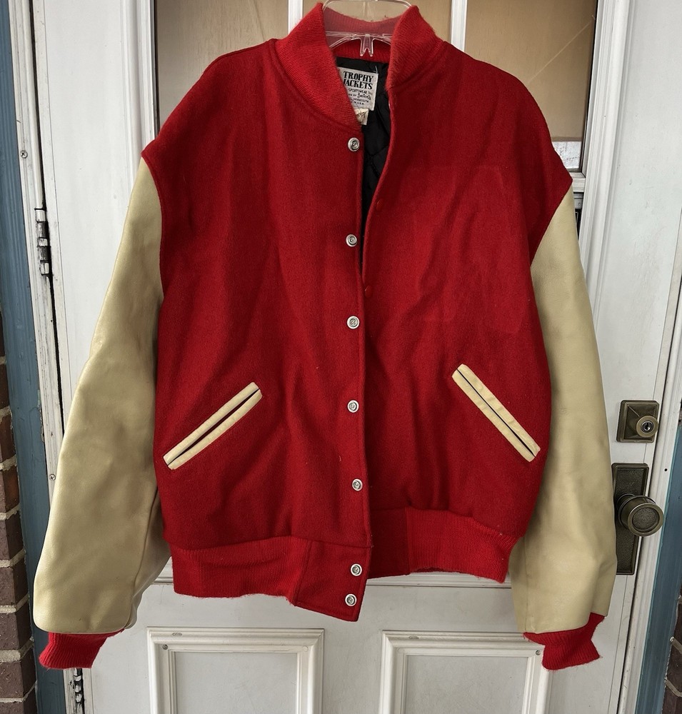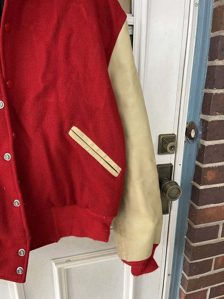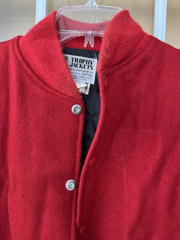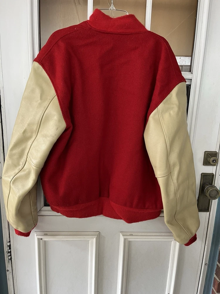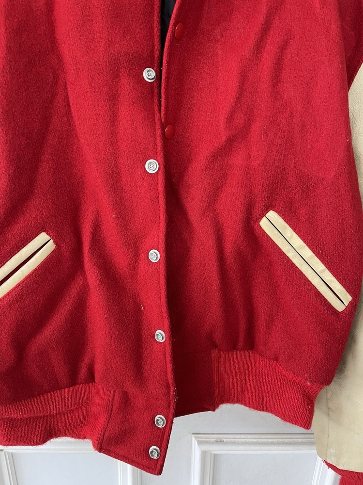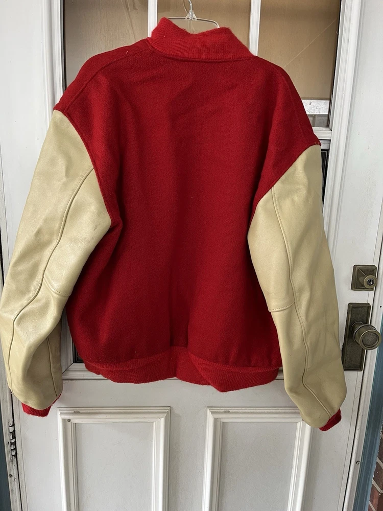 I absolutely love this vintage varsity jacket! The red color is bold and eye-catching, while the wool material feels durable yet comfortable. The fit is true to size, and the button/snap closure keeps it secure. It’s surprisingly lightweight but still warm enough for cooler weather. The retro style stands out, and the craftsmanship is impressive—you can tell it’s handmade. Perfect for casual outings or adding a pop of nostalgia to any outfit. Rare find and definitely worth it!