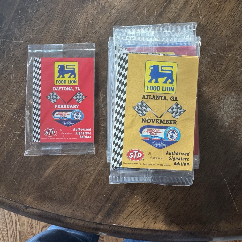 This unopened 1992 STP NASCAR trading card set is a must-have for collectors! The nostalgia hits hard with these vintage Food Lion packs—perfect condition, full of racing legends, and a rare find. The thrill of keeping them sealed or opening for a surprise makes it even better. A true gem for any NASCAR fan!