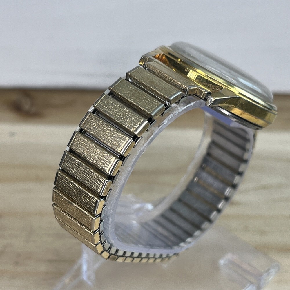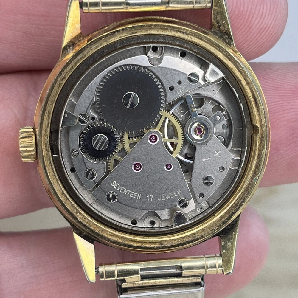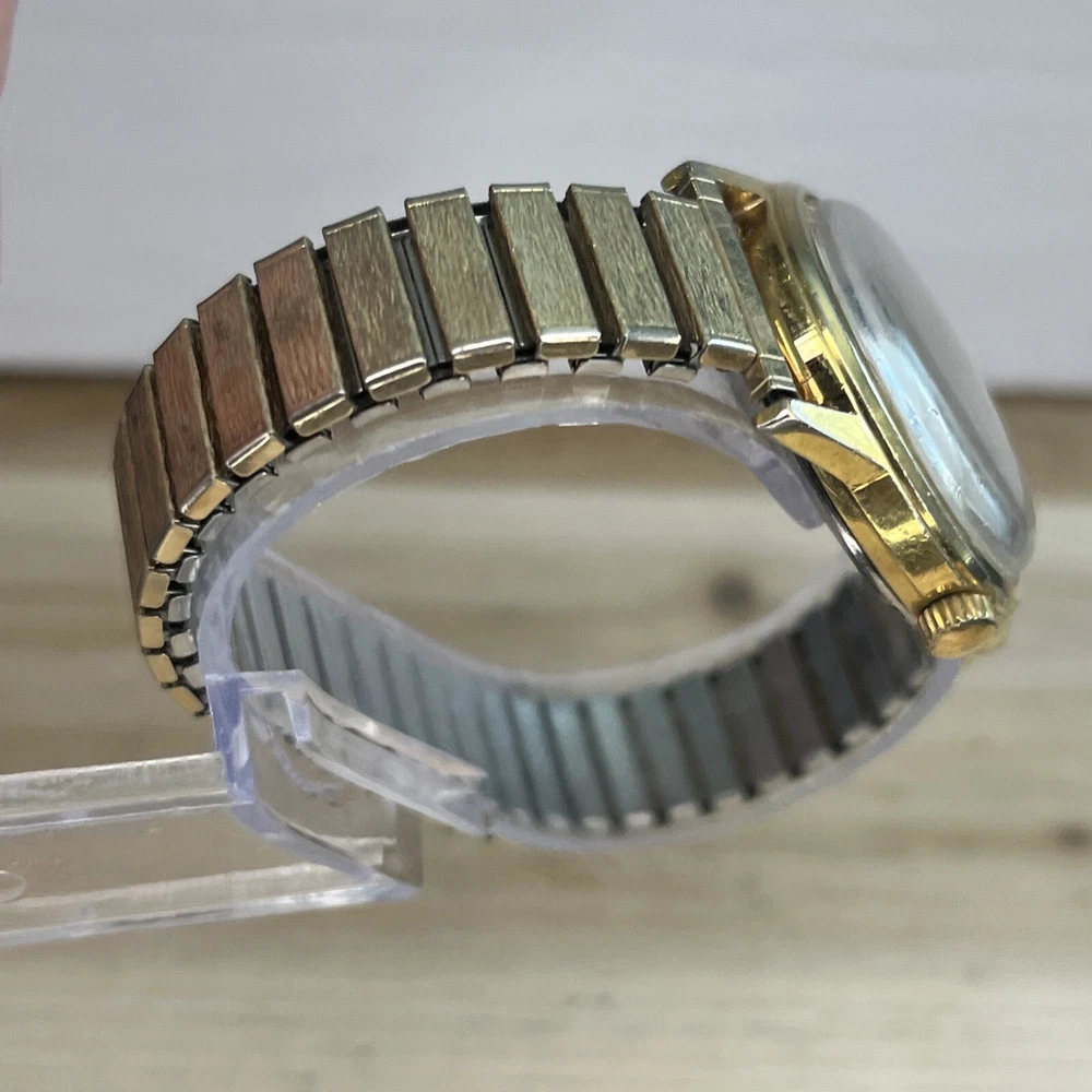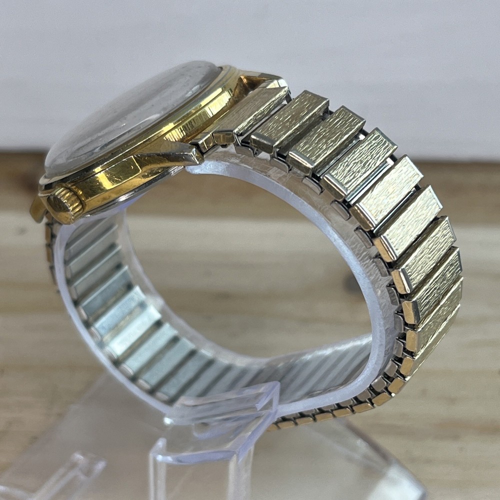 Vintage "V" 17 Jewels Automatic Men's Watch Gold Tone Stretch Band RUNS GREAT! This is a pre-owned watch. Please review all pictures for condition. All watches are tested for functionality, which includes installing a new battery. Please feel free to message any questions about the watch or any additional info or pictures you would like. Always happy to help! :)