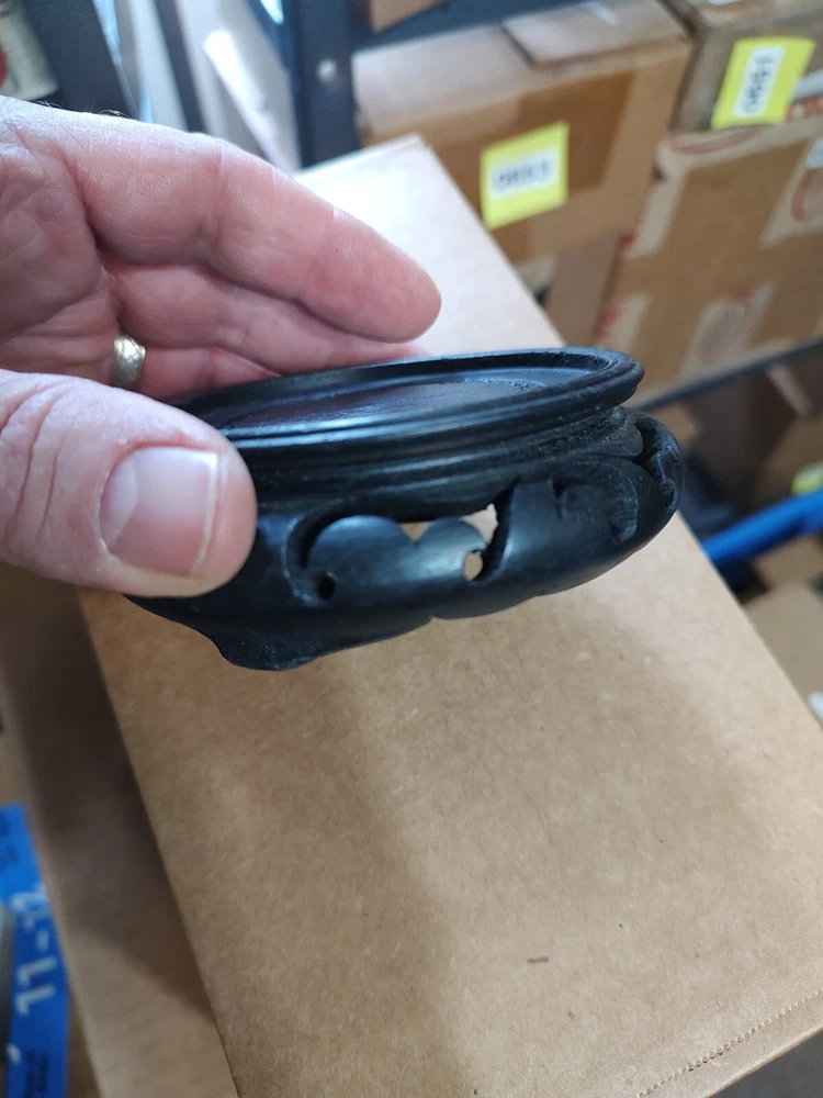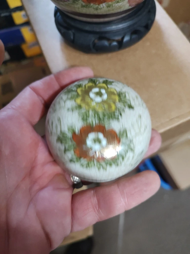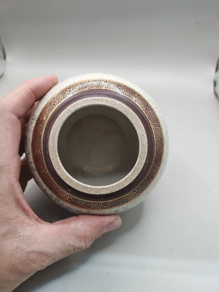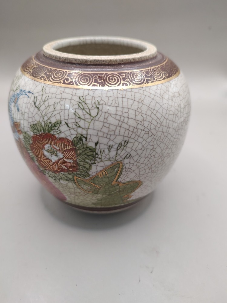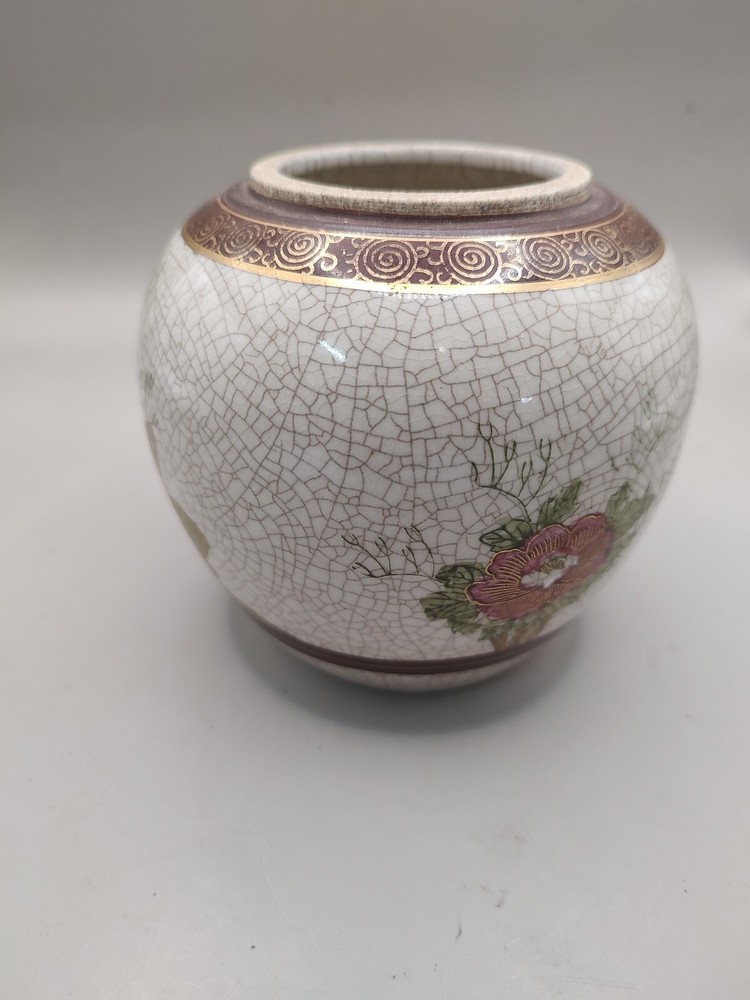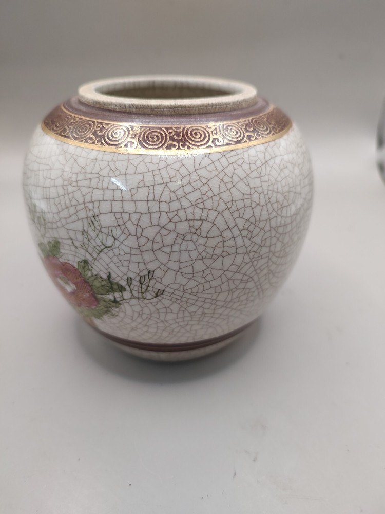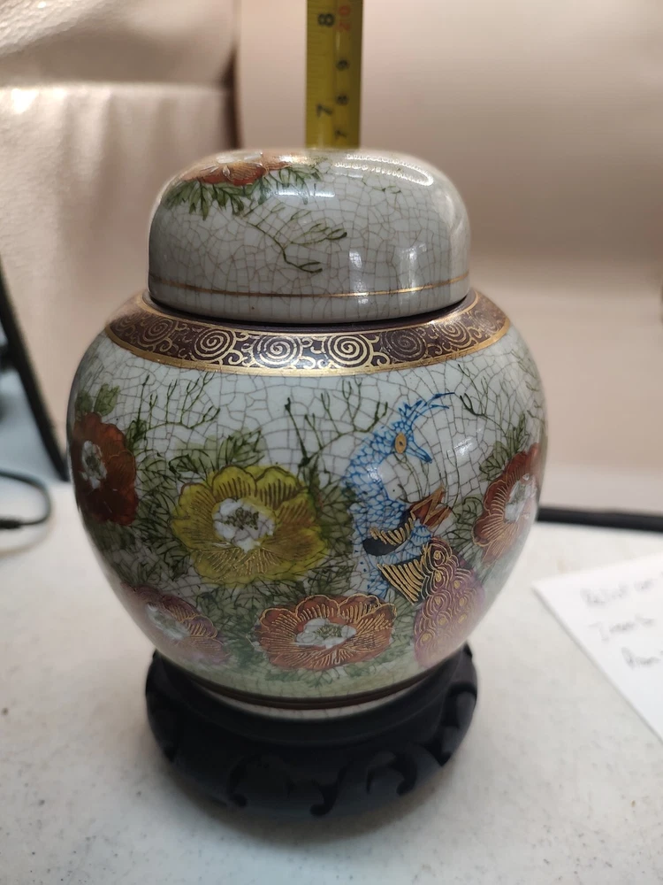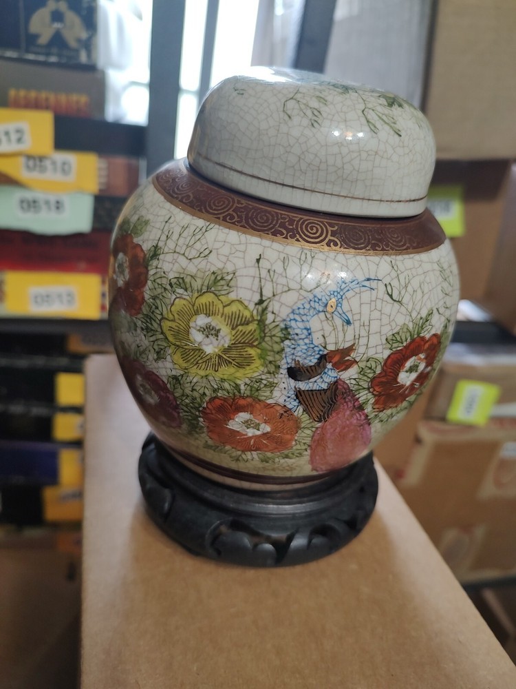 There is no chips or cracks on this vase and it comes with a beautiful lid and stand.