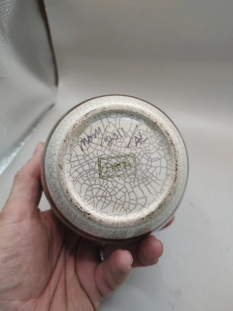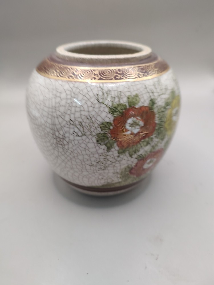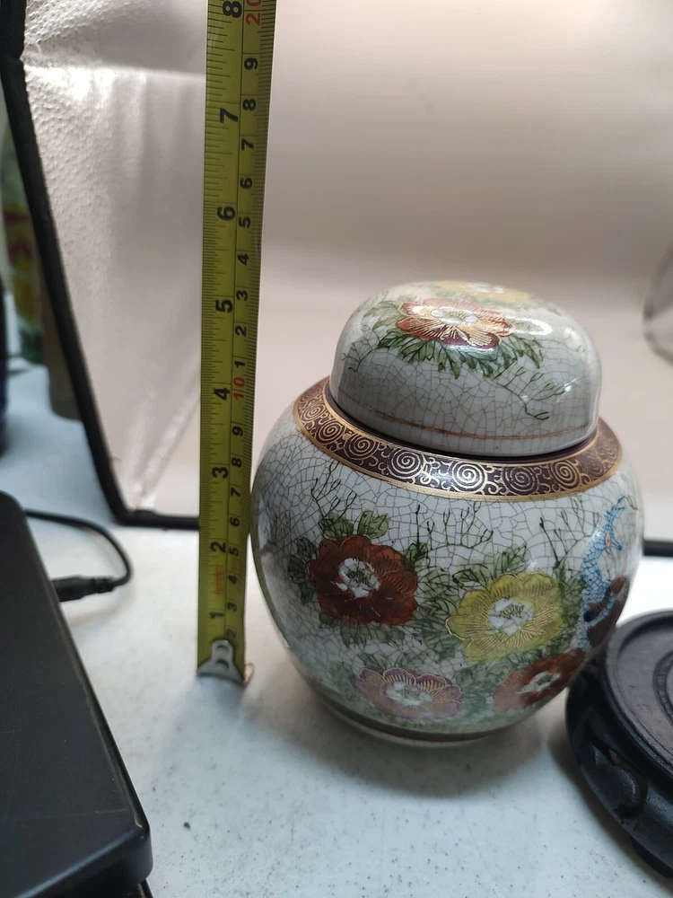 There is no chips or cracks on this vase and it comes with a beautiful lid and stand....