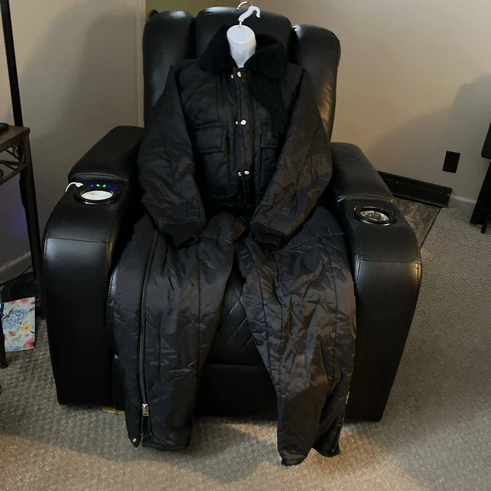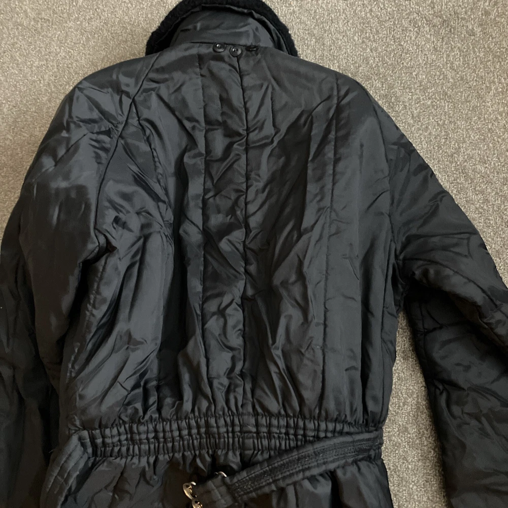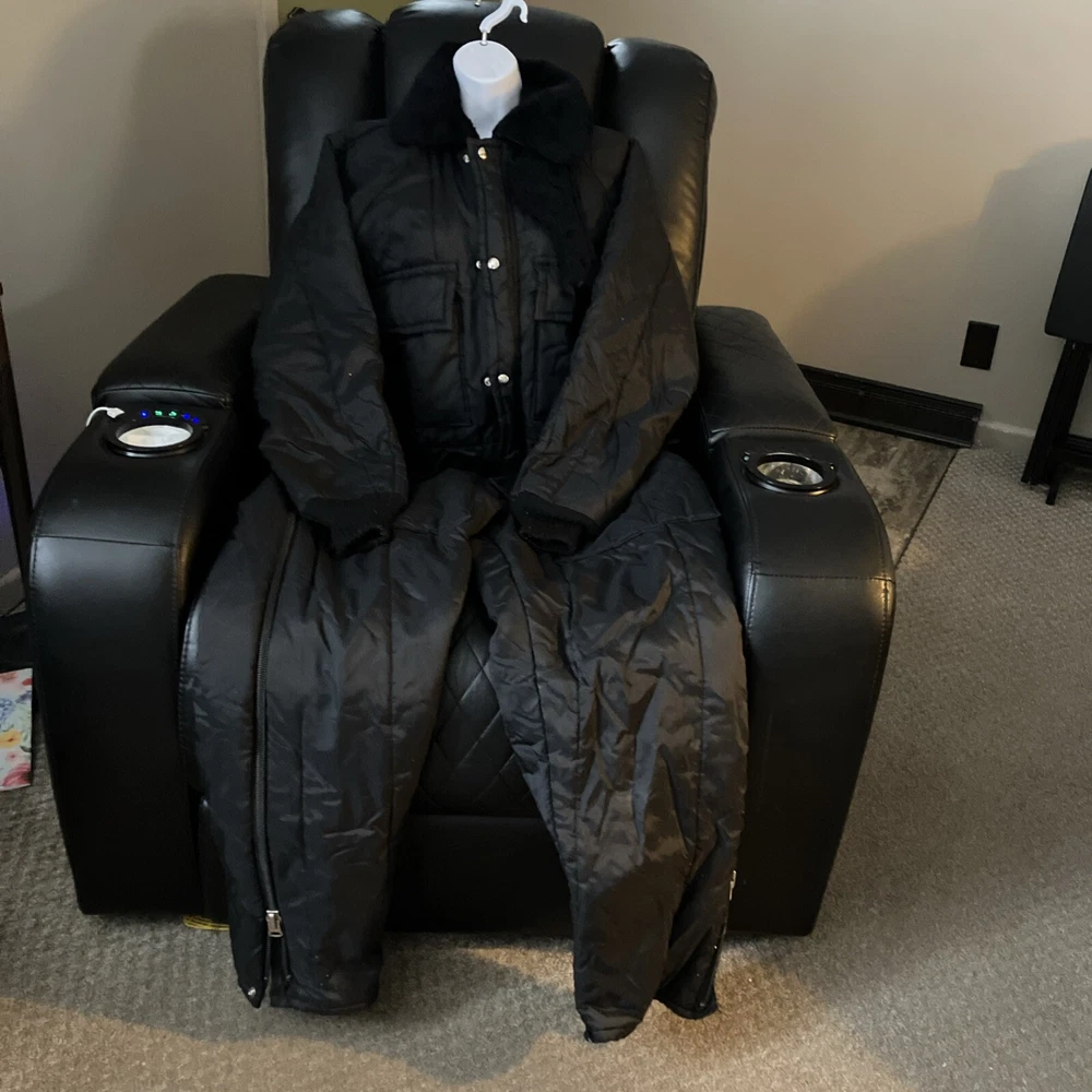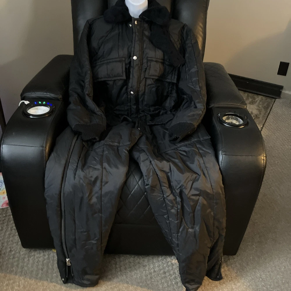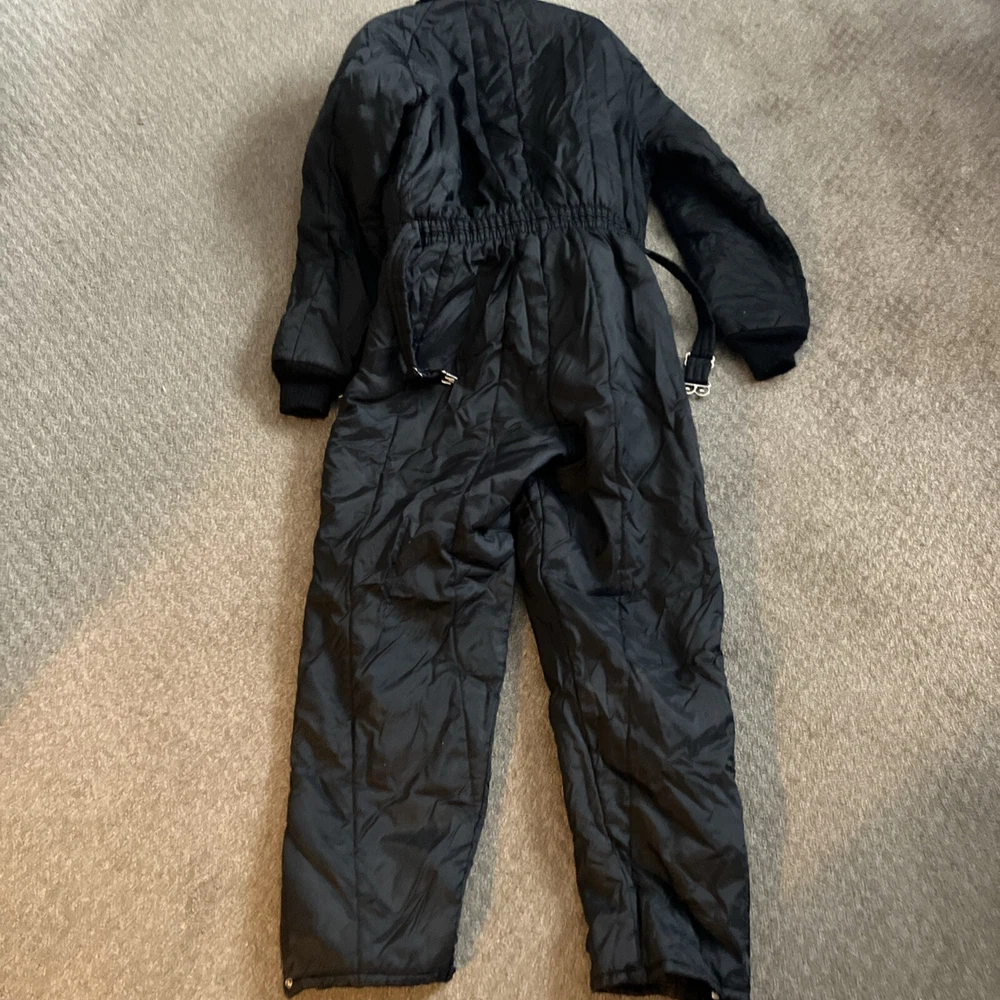 This vintage Walls snowsuit is perfect for any winter activity, whether it be skiing or snowboarding. The suit features a full zip closure, elastic waist, and a fur-lined collar to keep you warm. The exterior is made of 100% nylon and the entire suit is machine washable for easy care. The suit is a unisex adult size with a regular fit and long sleeves. It has multiple pockets for storing your belongings and is wind-resistant. The suit is also lightweight and has a solid blue color with a retro and American theme. It is perfect for all seasons, including fall, spring, and winter. The suit is missing the size tag so here are the measurements crotch to hem 28” Waist 42” Shoulder to shoulder 23” Top of collar to waist line 28” Sleeve length from shoulder to cuff 26” Zipper 24” I think that is all the measurements you should need to get a good fit Seems to me this may be a larger boys size or a medium woman’s size please be sure measure carefully