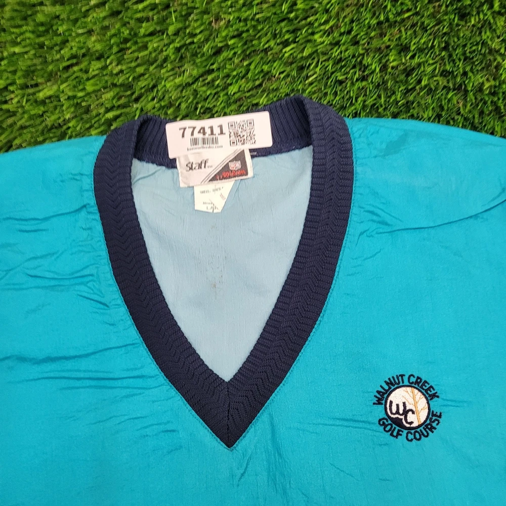 This vintage Walnut Creek windbreaker is a must-have for retro golf lovers! The fit is snug but comfy, with no rips or stains—just classic 80s charm. The cracked graphic adds character, and the lightweight material makes it perfect for breezy rounds. Love the throwback style!