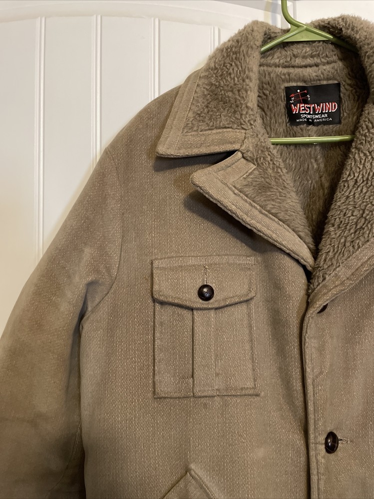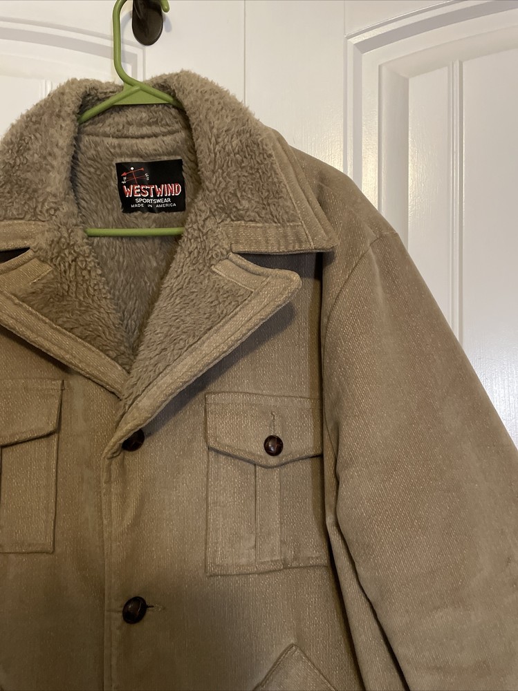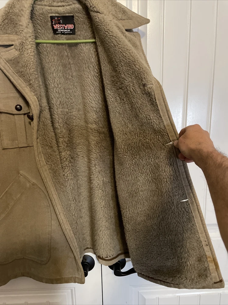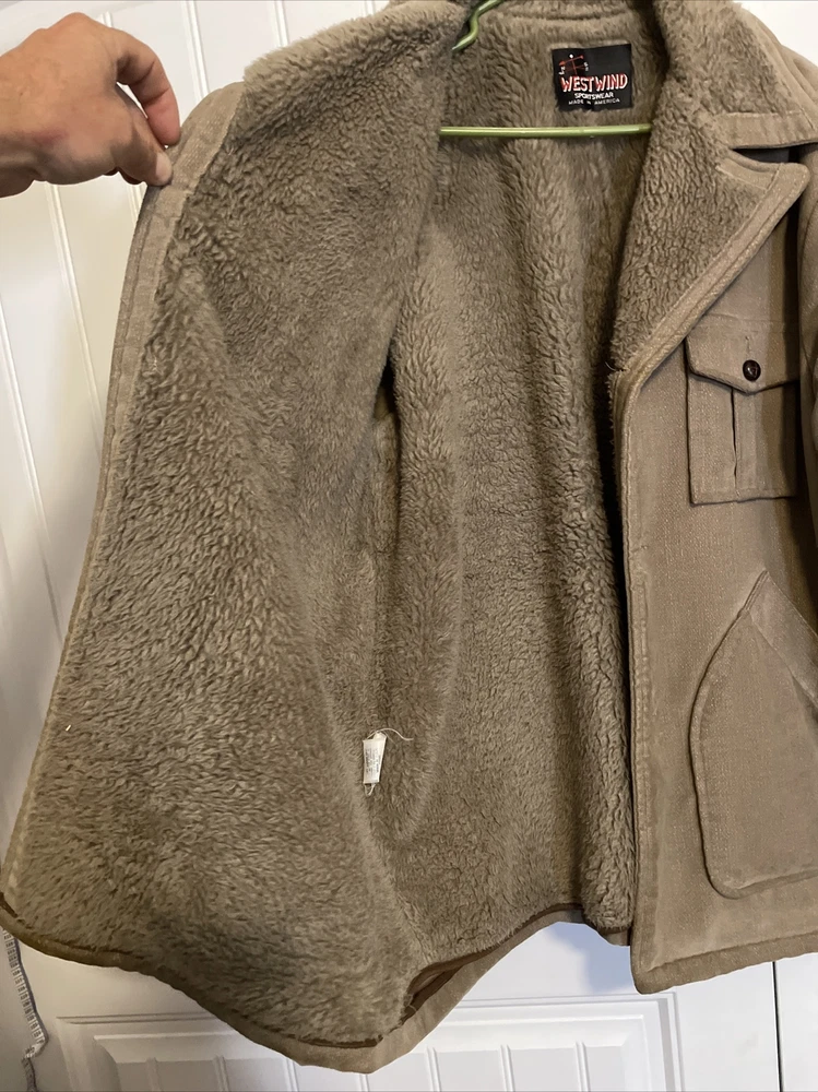 Vintage West Wind Sportswear Tan Sherpa Lined Jacket USA Made XL Extra Large. Jacket is in very good pre-owned condition with minor signs of use/wear or storage. Item shown in the photos is the same item that you will receive.