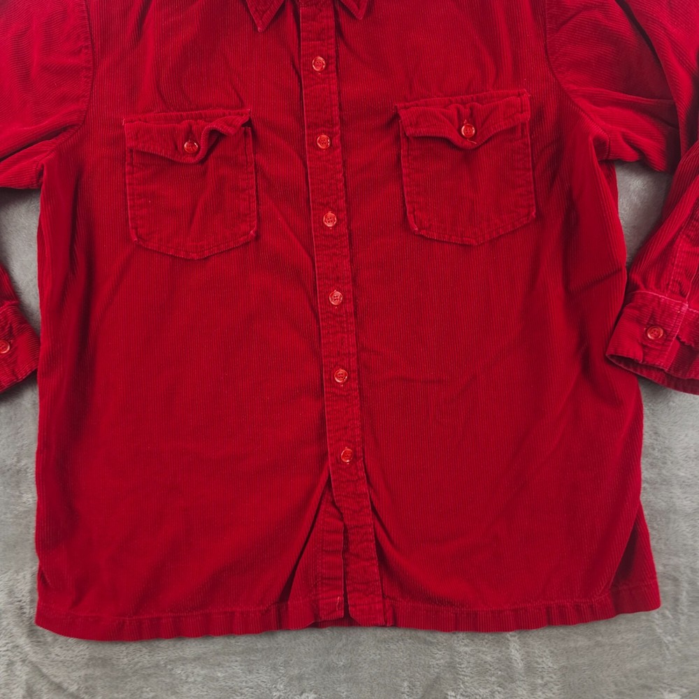Vintage Wind Breaker Corduroy Shirt Mens Red XL Long Sleeve 90s Y2K Heavyweight Size: Mens XL Condition: Used in Excellent condition Defects: No Defects Found. Please review picture. Measurements: Please review pictures for measurements Combined Shipping is super easy. Simply add all of your items to the cart and shipping will be automatically combined and calculated. We hope to ship to you soon!