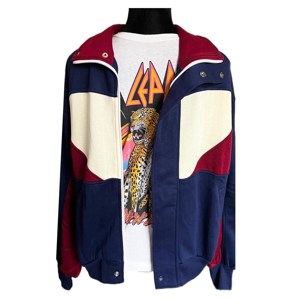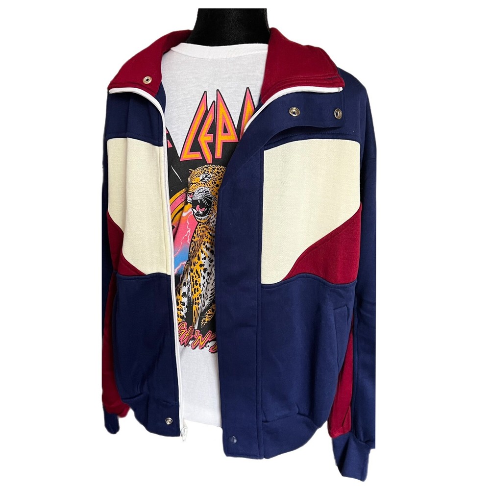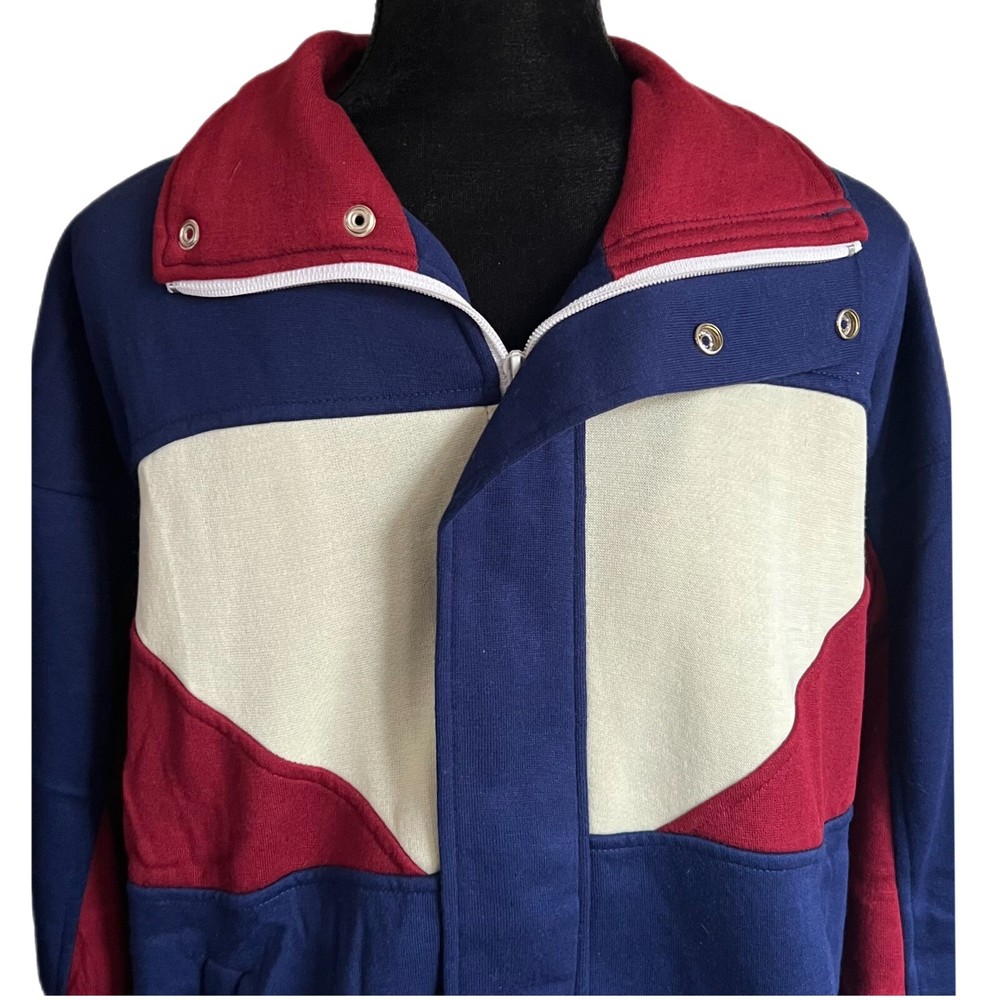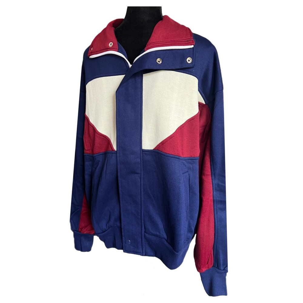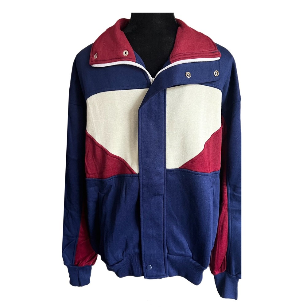 Vintage Wind Jammer Track Jacket 80s Warm Up Jacket - Size Large Era: 1980s Brand: Wind Jammer Color: Multicolor (Navy Blue w/ Cream & Maroon Accents Size: Men's Large Material: 100% Acrylic Exterior Measurements: Chest: 22" (Underarm Seam to Underarm Seam) Sleeves: 23" (Cuff of Sleeve to Shoulder Seam) Total Length: 26" (Base of Jacket to Top of Back Collar) Shoulders: 22.5” (Shoulder Seam to Shoulder Seam) *All measurements are approximate and taken of the outside of the item while it was lying on a flat surface. Condition: Jacket is in excellent vintage pre-owned gently used condition (see photos). Well cared for, only worn once and stored in a 100% smoke free home (see photos). Photos accurately represent the condition of the jacket. Please review all photos thoroughly. Many thanks! Questions: Feel free to contact us through eBay if you have any questions concerning the item(s) listed. We are very easy to work with and pride ourselves on providing excellent customer service.