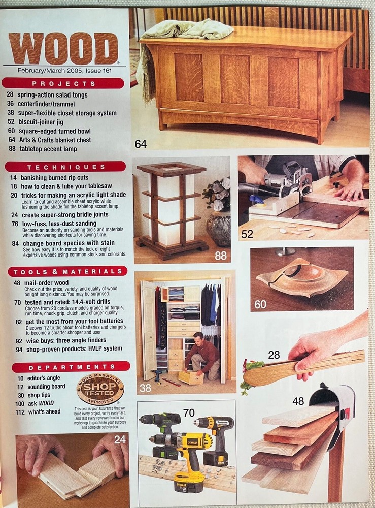 This issue is a gem for woodworking enthusiasts! Packed with timeless tips, beautiful projects, and nostalgic charm, it's a must-have for collectors. The craftsmanship showcased is inspiring, and the vintage ads add a fun retro touch. Perfect condition—feels like stepping back into 2005. Highly recommend for anyone who loves classic woodworking!