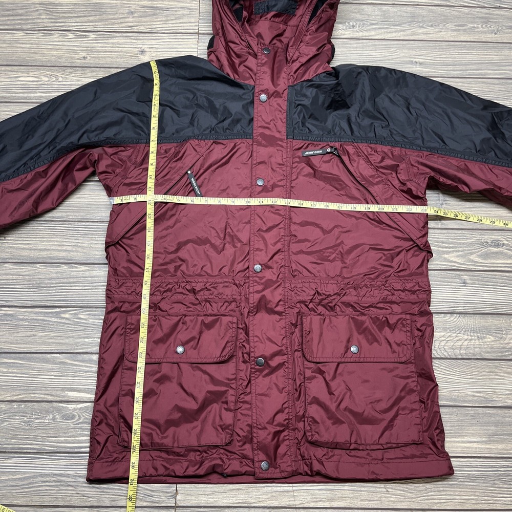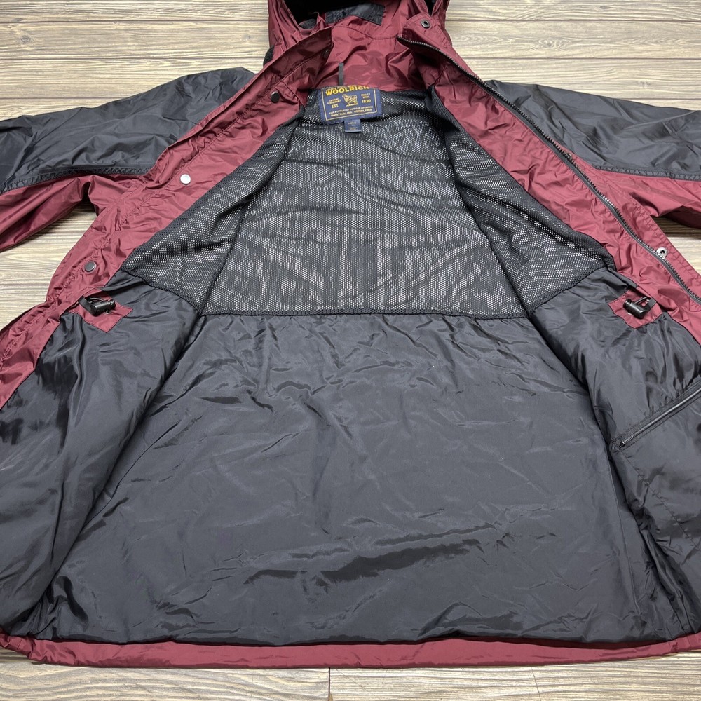 Vintage Woolrich Men Red Packable Hooded Rain Windbreaker Outfit Pants Large. The Jacket is size Large. The pants are size XL. Condition is pre owned. Shipped with USPS.