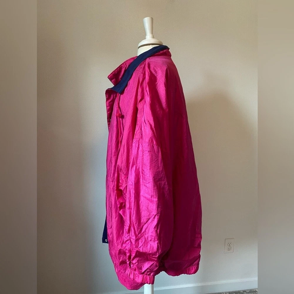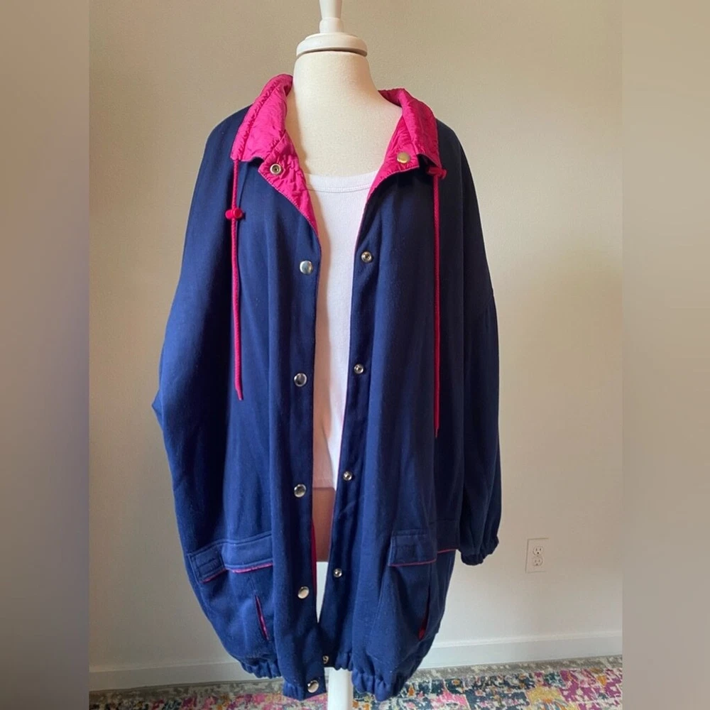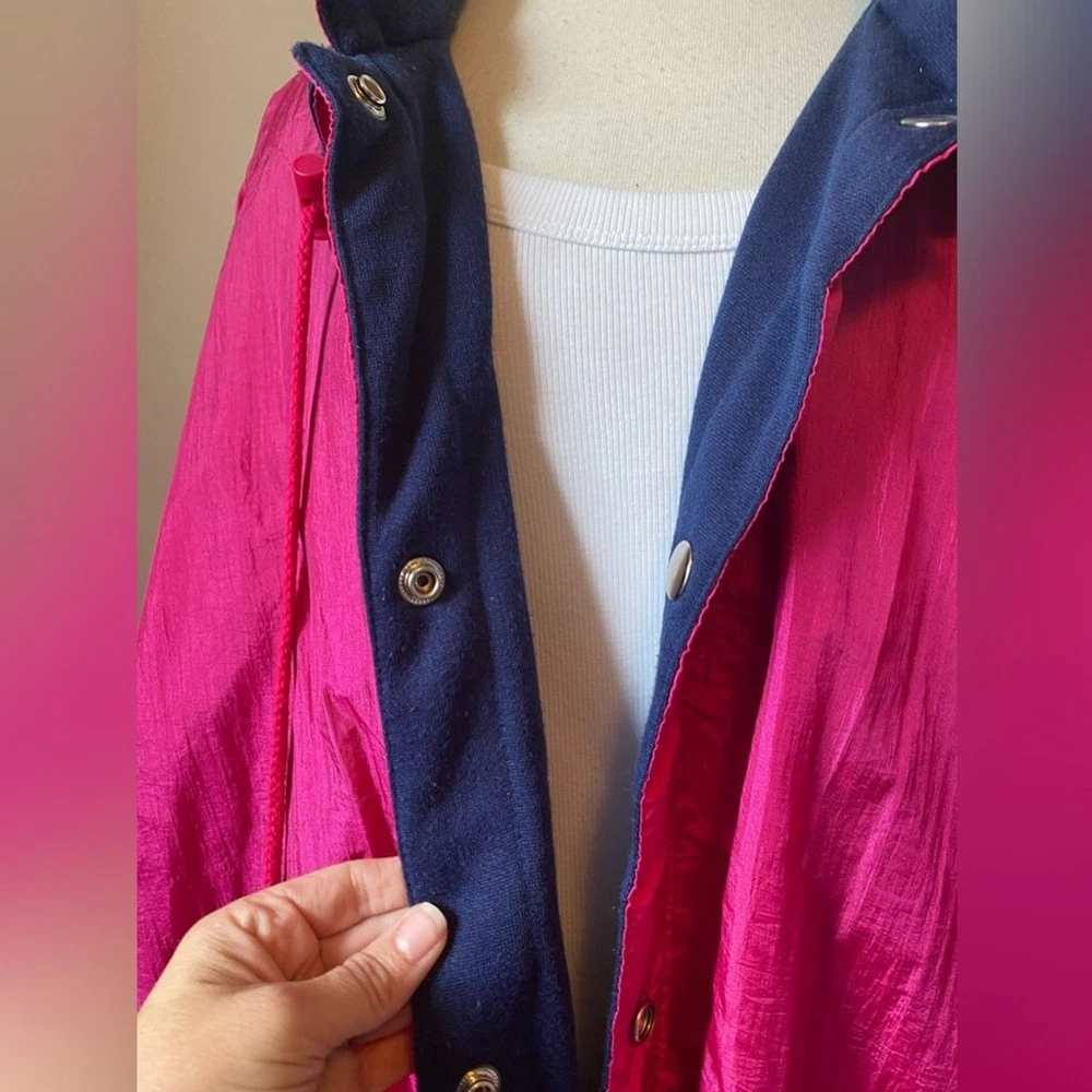 Vintage Y2K Womens PLUS Pink & Navy Reversible Windbreaker Cargo Jacket 4X Great condition! 74% Polyester, 14% Rayon, 12% Cotton Button Front Closure Elastic at bottom hem & wrists Reversible Pockets, Larger cargo style pockets on one side, slip in pockets on the other Pit to Pit- 34" Length- 37" Sleeves- 19.5" Shoulder to Shoulder- 33" Reference: Mannequin: Approx Size 8, 37” bust around, 15.5” front shoulder to shoulder, 28” waist around winter, fall, autumn, cozy, comfy, vintage, barbiecore, pink, navy, minimalist, Y2K CC-1