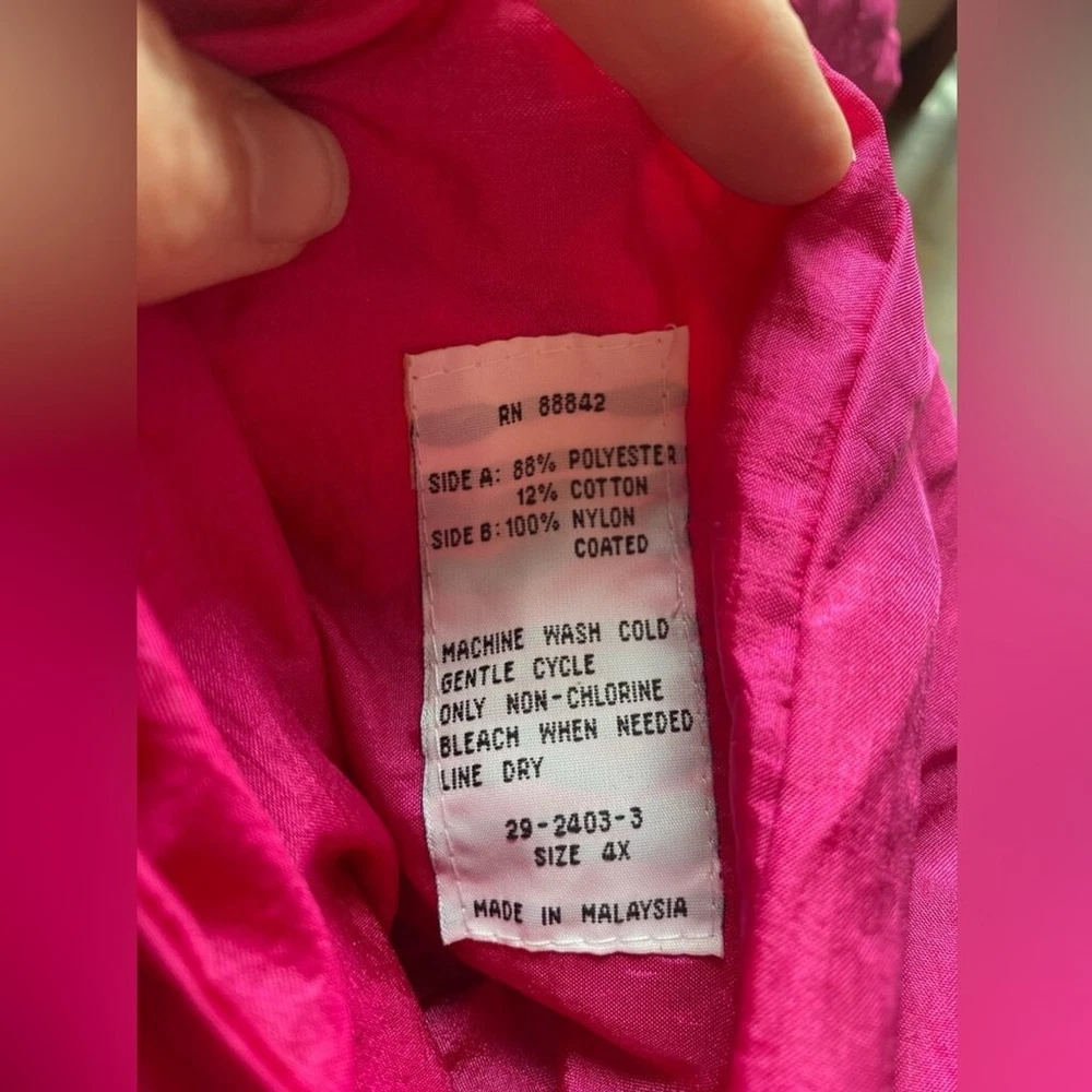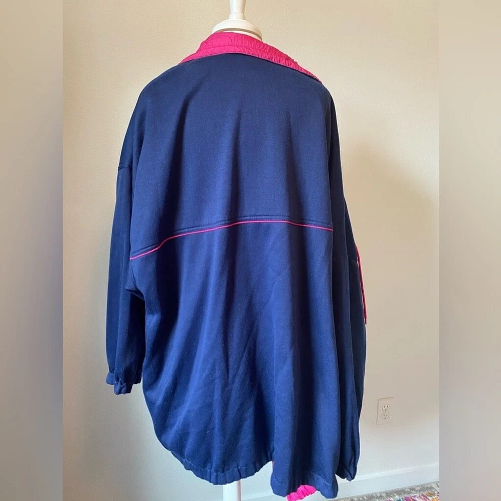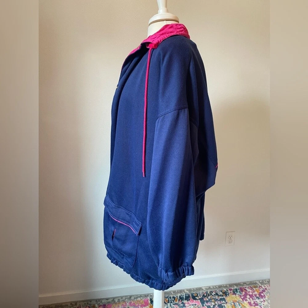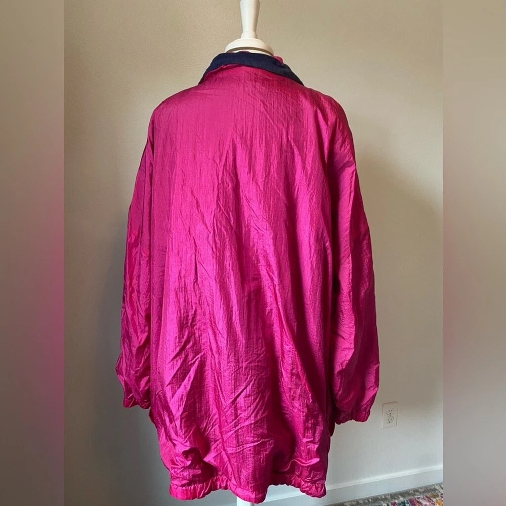 Vintage Y2K Womens PLUS Pink & Navy Reversible Windbreaker Cargo Jacket 4X Great condition! 74% Polyester, 14% Rayon, 12% Cotton Button Front Closure Elastic at bottom hem & wrists Reversible Pockets, Larger cargo style pockets on one side, slip in pockets on the other Pit to Pit- 34" Length- 37" Sleeves- 19.5" Shoulder to Shoulder- 33" Reference: Mannequin: Approx Size 8, 37” bust around, 15.5” front shoulder to shoulder, 28” waist around winter, fall, autumn, cozy, comfy, vintage, barbiecore, pink, navy, minimalist, Y2K CC-1