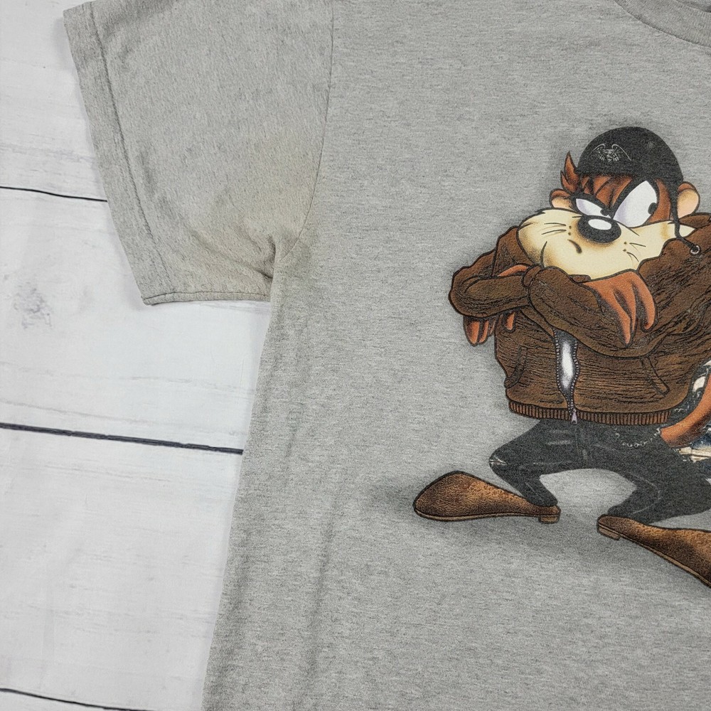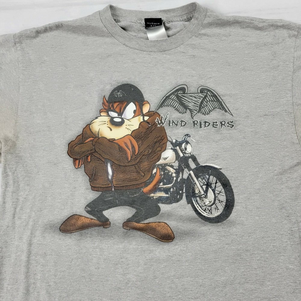 Vintage Y2k Looney Tunes Biker Taz Tee T Shirt Size Large Harley Wind Rider. Few mild stains. Dated 2000. Chest 22 Length 28