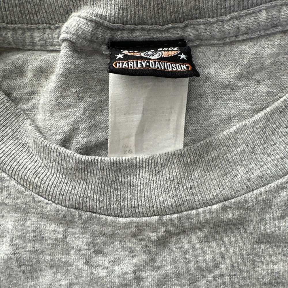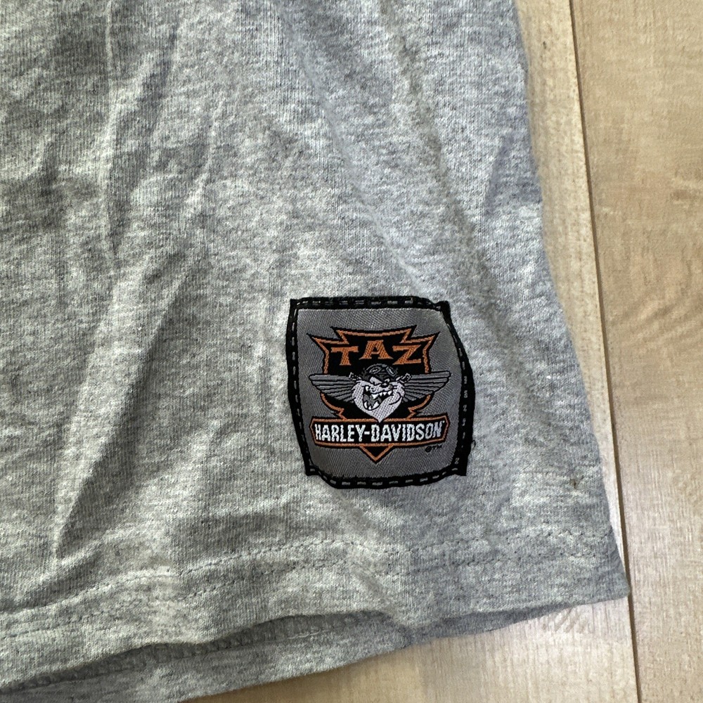 Stained and some holes shown in picture. Rev up your style with this vintage Y2K Looney Tunes biker tee from Harley-Davidson. In size XL, this black cotton shirt features short sleeves, a crew neck, and a solid pattern. The front boasts a double-sided print of Taz and Tweety along with the Harley Wind Rider logo. This regular-fit T-shirt is perfect for men who love the 90s, Harley Davidson, and the biker lifestyle. Made in the United States, it is breathable and suitable for all seasons. The shirt comes with an adjustable fit and accents that include the logo. It is a great addition to any collection with its vintage charm and character family of Marvel Universe and Looney Tunes.