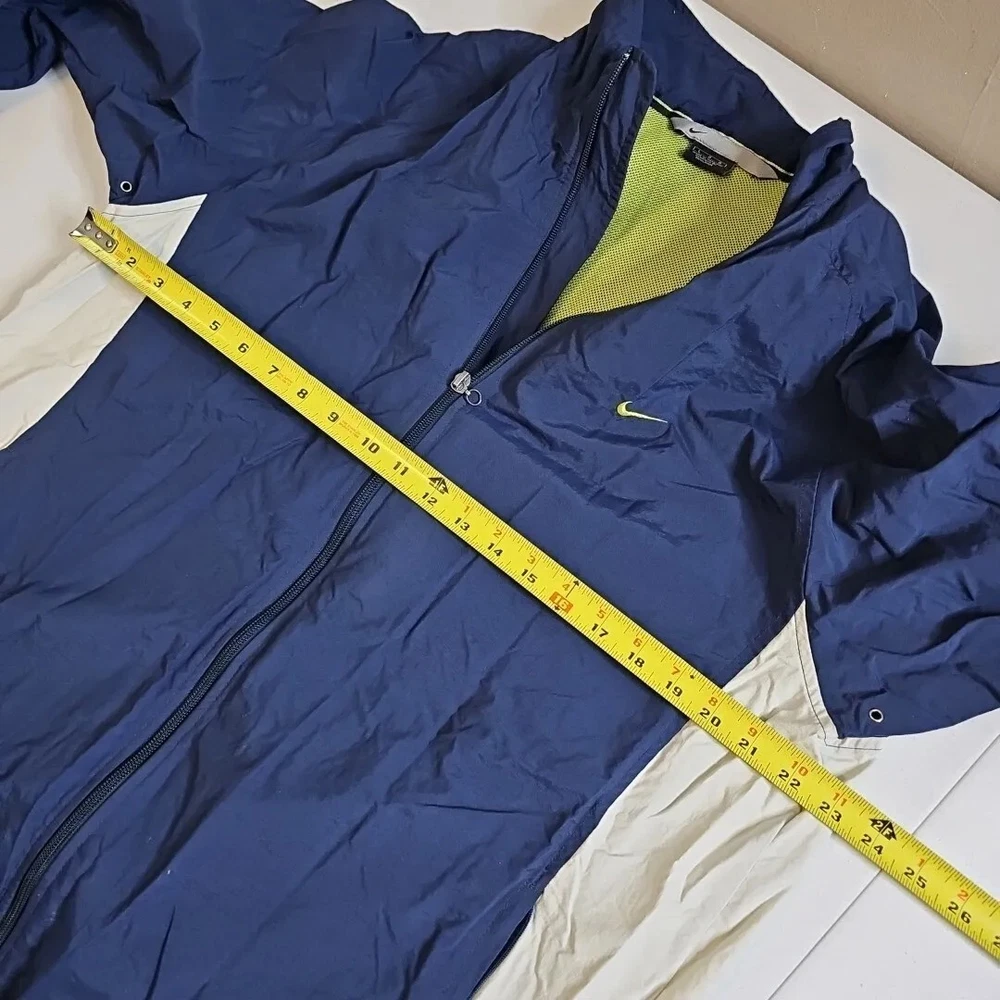 Vintage Y2k Nike Ful Zip Jacket Wind Breaker Navy Lime Green Spell Out Men's L . In gently used condition freshly washed as seen in the pictures. Measurements provided in the pictures.