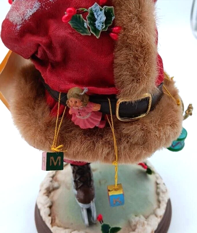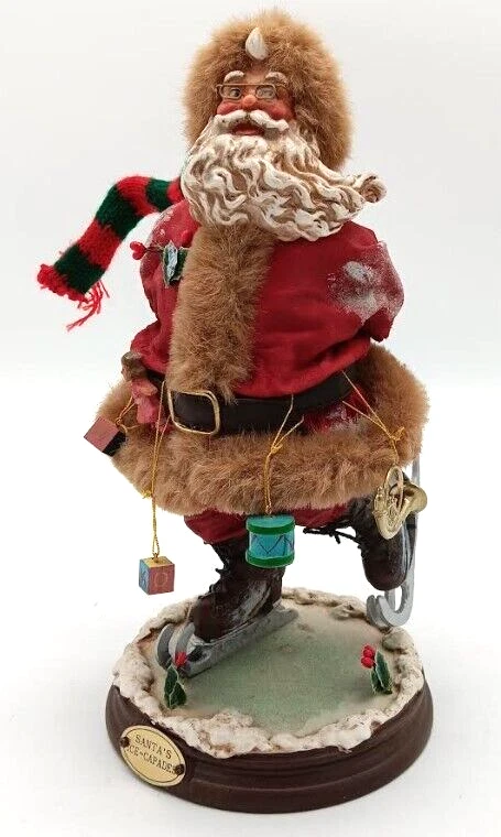 Vintage 1990's “Santa Ice Capades” Musical Skating Santa from Kurt S. Adler Made of mixed materials including fabric-mache, Wind him up to hear the “Skaters waltz”, Measuring 12” H x 5-1/4” in diameter, Comes in original box. Please review all pictures as they are part of my description. I try to give you as many pictures as possible. If you want more pictures or have additional questions, do not hesitate to ask. W e use clean recycled shipping materials while shipping as safe and economical as possible. We will combine shipping on multiple items purchased. My husband and I are very proud to have a 100% feedback rating!! Be sure to stop by our store for more unique items.