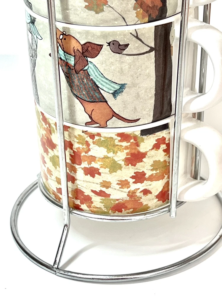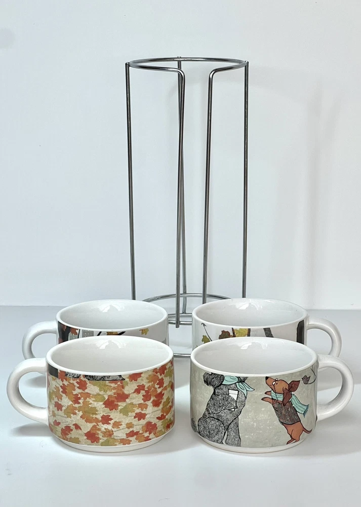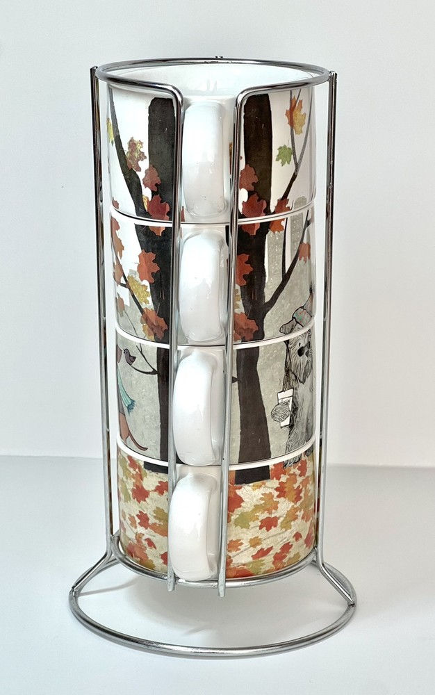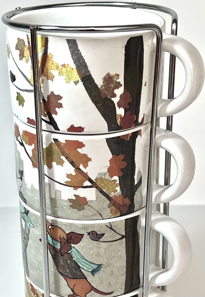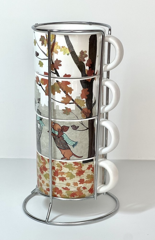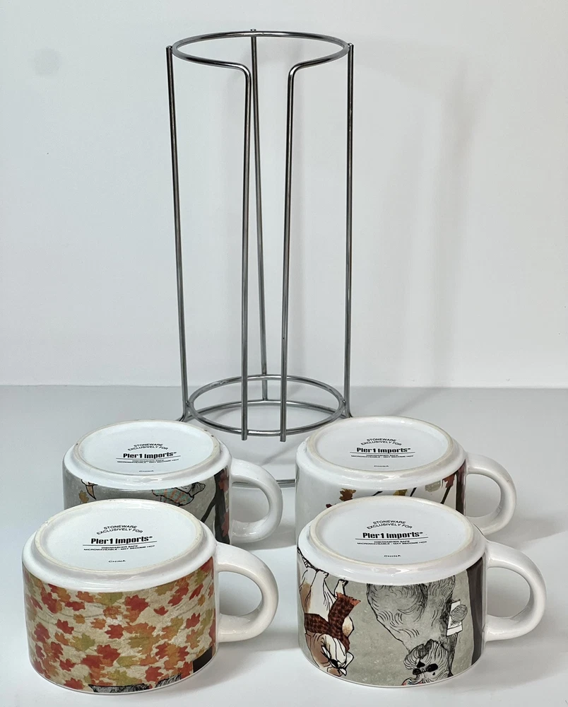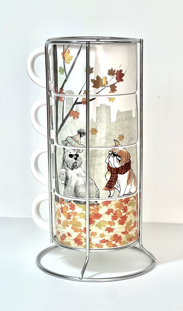 Welcome to Lorena’s Online Treasures! Title: Pier 1 Imports Stackable Mug Set with Metal Stand - Autumn Dogs Design Characteristics: •Brand: Pier 1 Imports •Type: Stackable Mug Set with Metal Stand •Material: Stoneware (ceramic), metal stand •Stand Dimensions: •Height: 9 3/4” •Base Diameter: 5 1/4” •Mug Dimensions: •Height: 2 1/4” •Length (handle to rim): 4 3/4” •Diameter: 3 1/2” •Depth: 2” •Theme: Autumn, Dogs, Cozy Lifestyle •Pattern: Illustrated Dogs with Fall Leaves and Cityscape Background •Color: Multicolor - White Base with Red, Orange, Green, and Brown Accents •Style: Contemporary, Seasonal, Functional Decor •Shape: Round •Era: Early 2000s - 2010s •Production Period: Approx. 2005 - 2015 •Origin: Made in China •Condition: Very good vintage condition with minimal signs of use. Please inspect the images carefully before purchasing. •Features: •Stackable design for space-saving storage •Secure metal stand for easy organization •Adorable fall-themed dog illustrations •Perfect for coffee, tea, or hot chocolate •Stoneware material ensures durability and heat retention •Ideal for collectors, dog lovers, and fall enthusiasts Description: Enjoy your favorite warm beverages in style with this delightful Pier 1 Imports stackable mug set, featuring charming autumn-inspired dog illustrations. Each mug showcases cozy fall elements such as scarves, hats, and falling leaves, set against a soft cityscape background. The stackable design ensures easy storage, with a sturdy metal stand that keeps everything organized. A perfect addition to any kitchen, this set is ideal for dog lovers and fall enthusiasts alike! Company History: Pier 1 Imports was founded in 1962 in San Mateo, California, and quickly became a leading retailer specializing in globally inspired and uniquely crafted home décor and furniture. Known for offering exclusive and stylish designs, Pier 1 Imports produced seasonal collections, dinnerware, furniture, and decorative accessories that reflected contemporary and vintage aesthetics. Although the company ceased physical store operations in 2020, its legacy of quality and distinctive designs continues to attract collectors and home décor enthusiasts. Note: Please inspect the images carefully to be 100% sure before purchasing. Important Note: Please carefully inspect each photo of the item, as I do not accept returns. Every product I list is thoroughly checked to ensure there are no major damages that would render the item unusable. If an item has a minor issue that doesn’t affect its function, I always mention it in the description, leaving it up to you to decide if it meets your criteria. Rest assured, if a product is listed, it’s because it can be used without problems; these notes are simply for full transparency. The no-return policy does not mean I sell damaged goods; rather, it’s in place due to past issues with returns where items were sent back that weren’t the same as those originally shipped. Unfortunately, some people take advantage of the system, disregarding the hard work and effort put in by small sellers like myself. This does not mean I believe you would do the same, but I want to be transparent about why this policy is in place. I am not a large corporation; I am just an ordinary person striving to move forward and take joy in each sale I make. I aim to highlight every detail of each item to the best of my ability. In extreme cases, like when a product arrives damaged due to shipping (which has happened once before), I always work out a satisfactory resolution with the buyer. I wanted to explain why I don’t accept returns, but rest assured, you can buy with confidence knowing that I am dedicated to providing quality items. If you have any questions or concerns, please do not hesitate to contact me. Thank you for visiting my store, Lorena’s Online Treasures. Best regards, Lorena.🤗