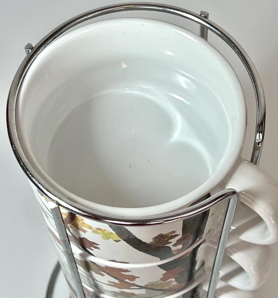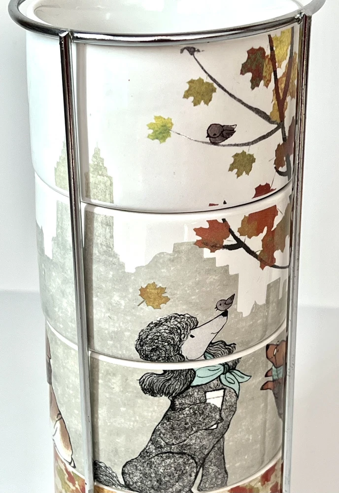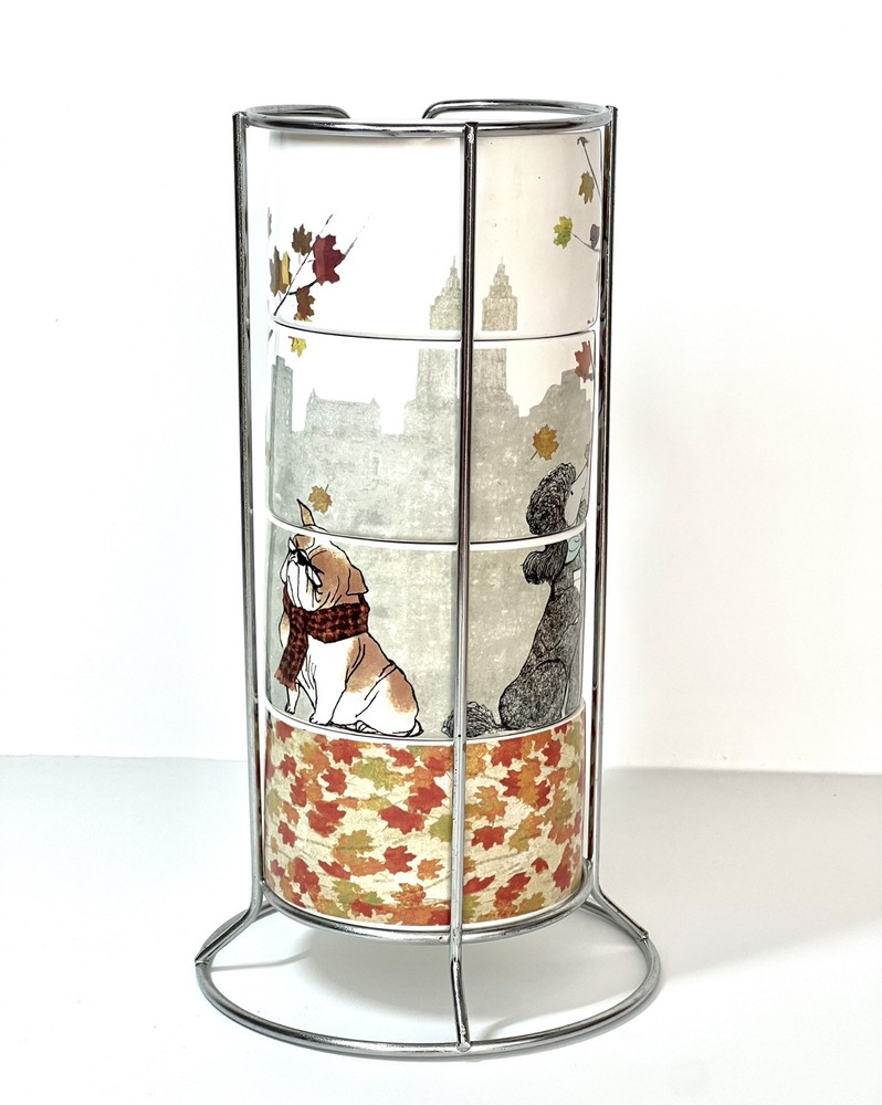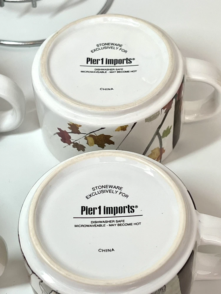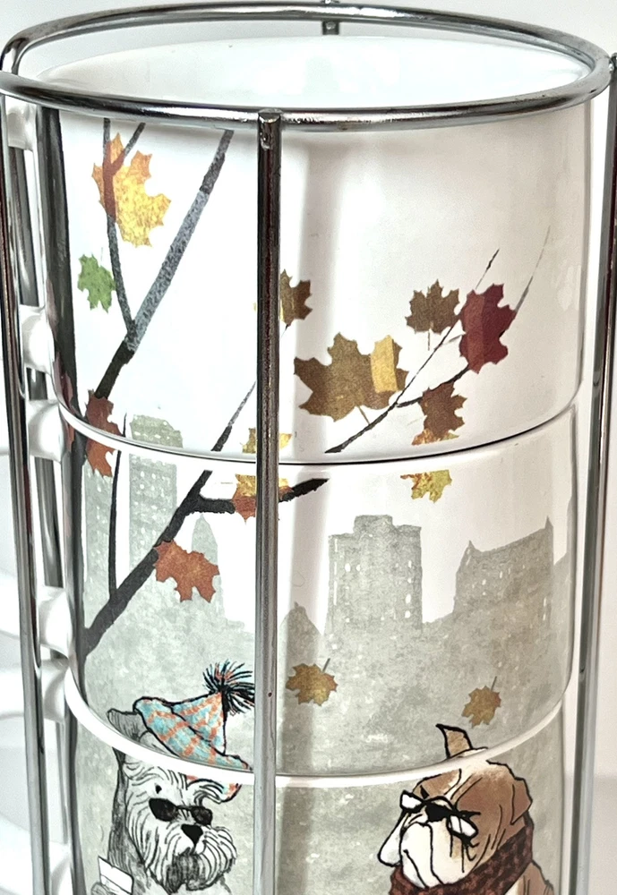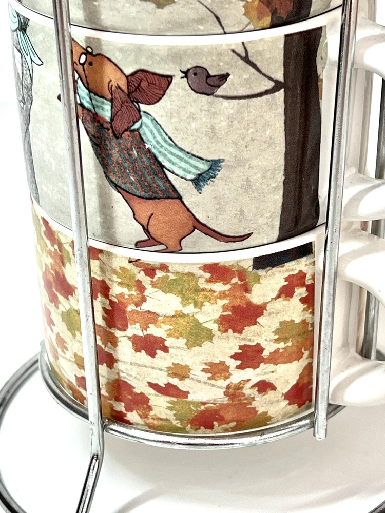 Welcome to Lorena’s Online Treasures! Title: Pier 1 Imports Stackable Mug Set with Metal Stand - Autumn Dogs Design Characteristics: •Brand: Pier 1 Imports •Type: Stackable Mug Set with Metal Stand •Material: Stoneware (ceramic), metal stand •Stand Dimensions: •Height: 9 3/4” •Base Diameter: 5 1/4” •Mug Dimensions: •Height: 2 1/4” •Length (handle to rim): 4 3/4” •Diameter: 3 1/2” •Depth: 2” •Theme: Autumn, Dogs, Cozy Lifestyle •Pattern: Illustrated Dogs with Fall Leaves and Cityscape Background •Color: Multicolor - White Base with Red, Orange, Green, and Brown Accents •Style: Contemporary, Seasonal, Functional Decor •Shape: Round •Era: Early 2000s - 2010s •Production Period: Approx. 2005 - 2015 •Origin: Made in China •Condition: Very good vintage condition with minimal signs of use. Please inspect the images carefully before purchasing. •Features: •Stackable design for space-saving storage •Secure metal stand for easy organization •Adorable fall-themed dog illustrations •Perfect for coffee, tea, or hot chocolate •Stoneware material ensures durability and heat retention •Ideal for collectors, dog lovers, and fall enthusiasts Description: Enjoy your favorite warm beverages in style with this delightful Pier 1 Imports stackable mug set, featuring charming autumn-inspired dog illustrations. Each mug showcases cozy fall elements such as scarves, hats, and falling leaves, set against a soft cityscape background. The stackable design ensures easy storage, with a sturdy metal stand that keeps everything organized. A perfect addition to any kitchen, this set is ideal for dog lovers and fall enthusiasts alike! Company History: Pier 1 Imports was founded in 1962 in San Mateo, California, and quickly became a leading retailer specializing in globally inspired and uniquely crafted home décor and furniture. Known for offering exclusive and stylish designs, Pier 1 Imports produced seasonal collections, dinnerware, furniture, and decorative accessories that reflected contemporary and vintage aesthetics. Although the company ceased physical store operations in 2020, its legacy of quality and distinctive designs continues to attract collectors and home décor enthusiasts. Note: Please inspect the images carefully to be 100% sure before purchasing. Important Note: Please carefully inspect each photo of the item, as I do not accept returns. Every product I list is thoroughly checked to ensure there are no major damages that would render the item unusable. If an item has a minor issue that doesn’t affect its function, I always mention it in the description, leaving it up to you to decide if it meets your criteria. Rest assured, if a product is listed, it’s because it can be used without problems; these notes are simply for full transparency. The no-return policy does not mean I sell damaged goods; rather, it’s in place due to past issues with returns where items were sent back that weren’t the same as those originally shipped. Unfortunately, some people take advantage of the system, disregarding the hard work and effort put in by small sellers like myself. This does not mean I believe you would do the same, but I want to be transparent about why this policy is in place. I am not a large corporation; I am just an ordinary person striving to move forward and take joy in each sale I make. I aim to highlight every detail of each item to the best of my ability. In extreme cases, like when a product arrives damaged due to shipping (which has happened once before), I always work out a satisfactory resolution with the buyer. I wanted to explain why I don’t accept returns, but rest assured, you can buy with confidence knowing that I am dedicated to providing quality items. If you have any questions or concerns, please do not hesitate to contact me. Thank you for visiting my store, Lorena’s Online Treasures. Best regards, Lorena.🤗