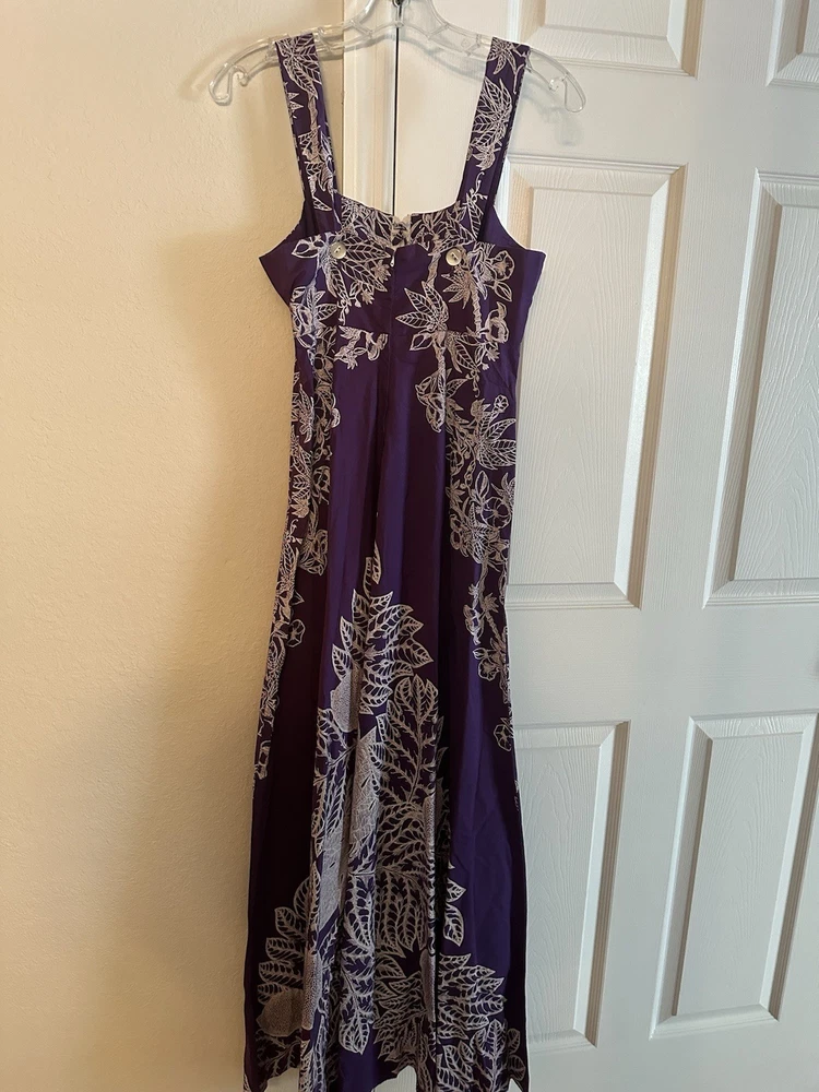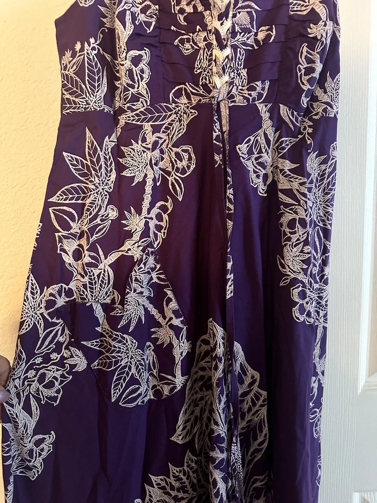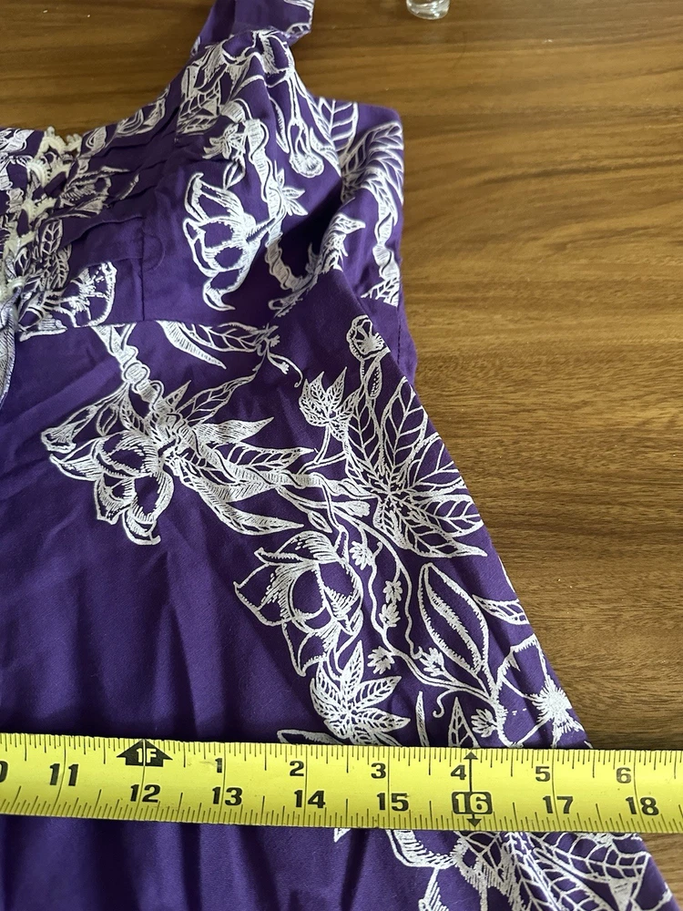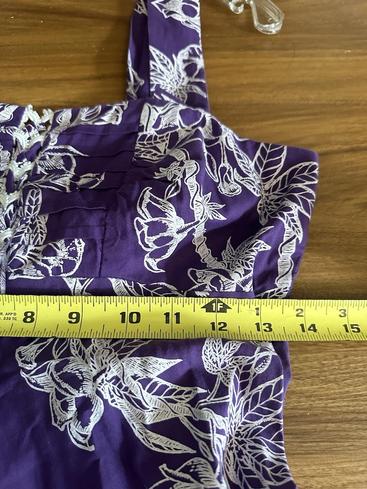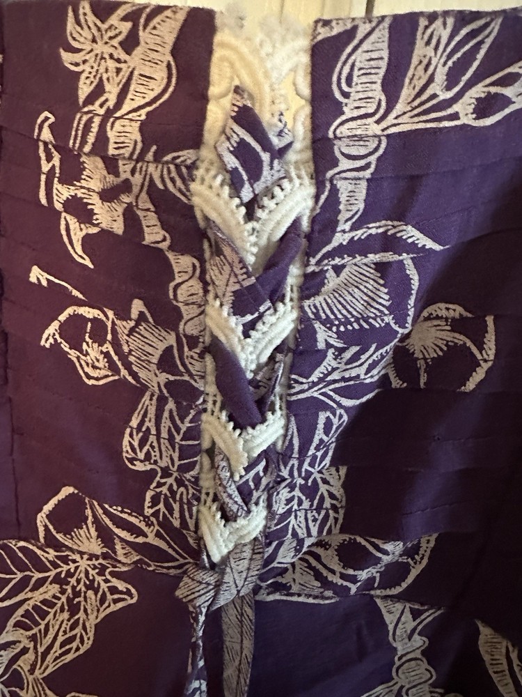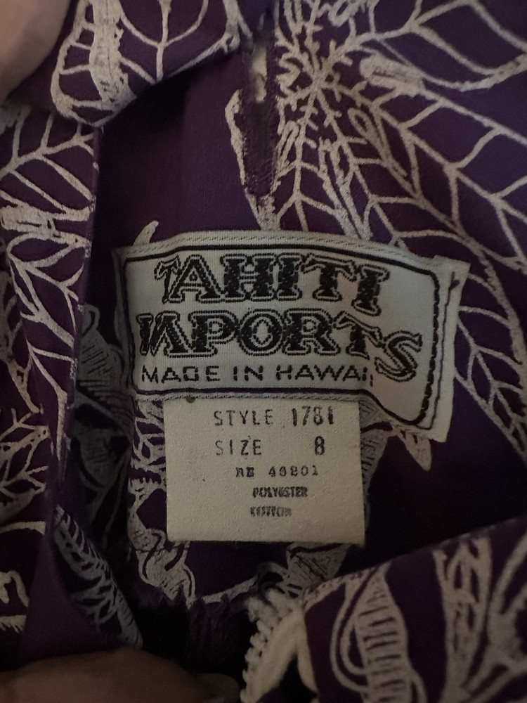 The Vntg Tahiti Imports Rare Dress is a special occasion maxi dress from the 60's - 70's with an empire waist and long flowing design in purple & white colors. Made by Tahiti Imports in the United States, this original vintage piece exudes a Hawaiian look that speaks to an era gone by . The size 8 dress is perfect for women looking to make a statement at their next event with a unique and stylish outfit that captures the essence of the vintage era. I love the simplicity of this design and my very favorite feature is the beautiful skirt that flows in an elegant way that is simply stunning! Please view the photo gallery as you will find a detailed description through the pictures. The dress is cut small so please use the measurements to compare this with something in your wardrobe that fits you. Thanks for looking and have a blessed day 🦋
