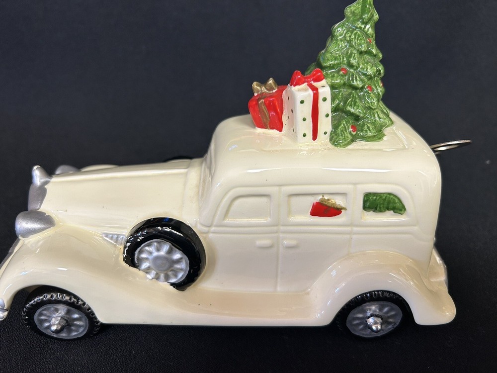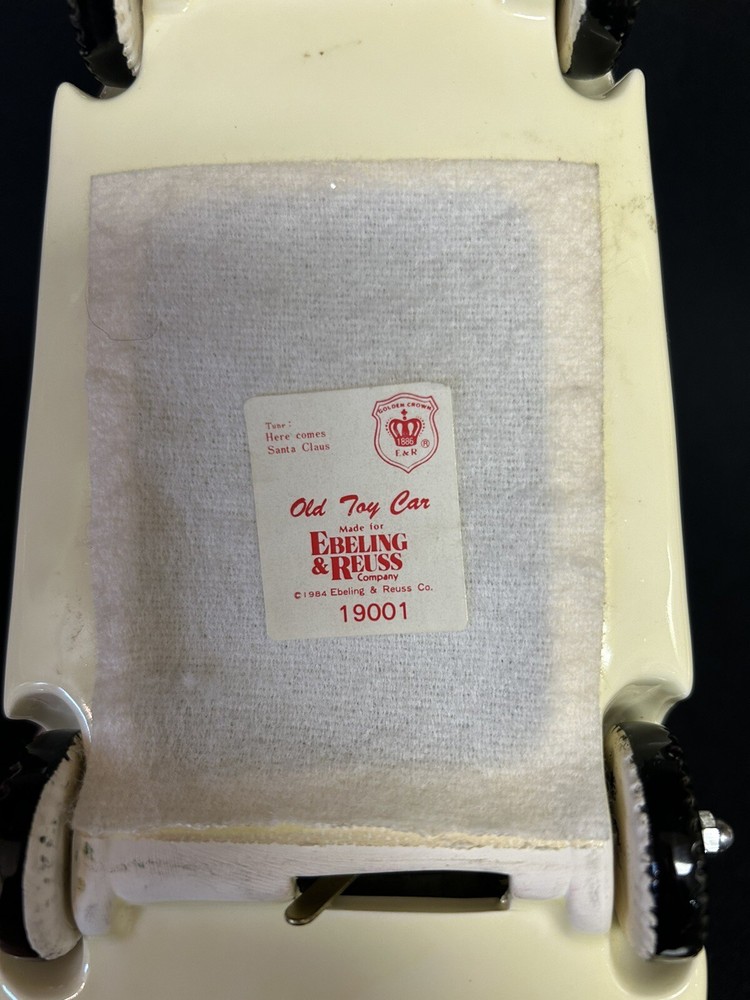 This vintage 1984 Christmas wind-up musical Rolls Royce is a beautiful addition to any collection. The ceramic car is designed by Ebeling & Reuss and features intricate details that make it a true work of art. The music box mechanism is in perfect working condition and plays a “Here Comes Santa Claus”. This item comes from a smoke-free home and has been well cared for. This item is perfect for collectors of music boxes or decorative collectibles. Add this charming piece to your collection today!