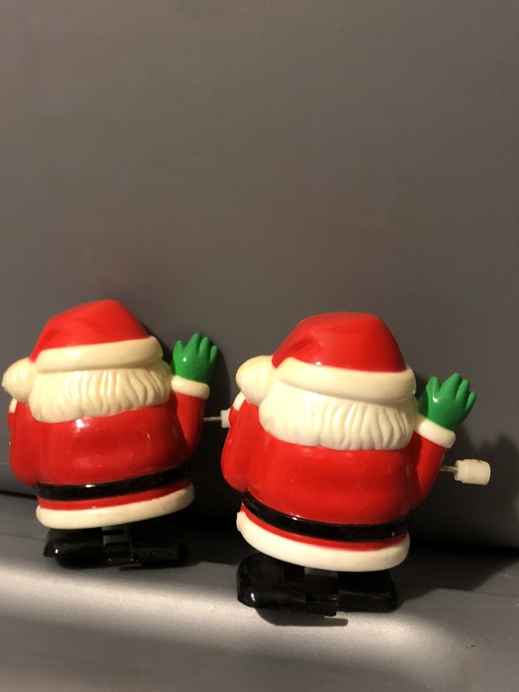 Vtg 2 Fun World Christmas Hard Plastic Wind Up Bobbing Santa Waving Walking Lot. (3-11-2022-Packing shelf)