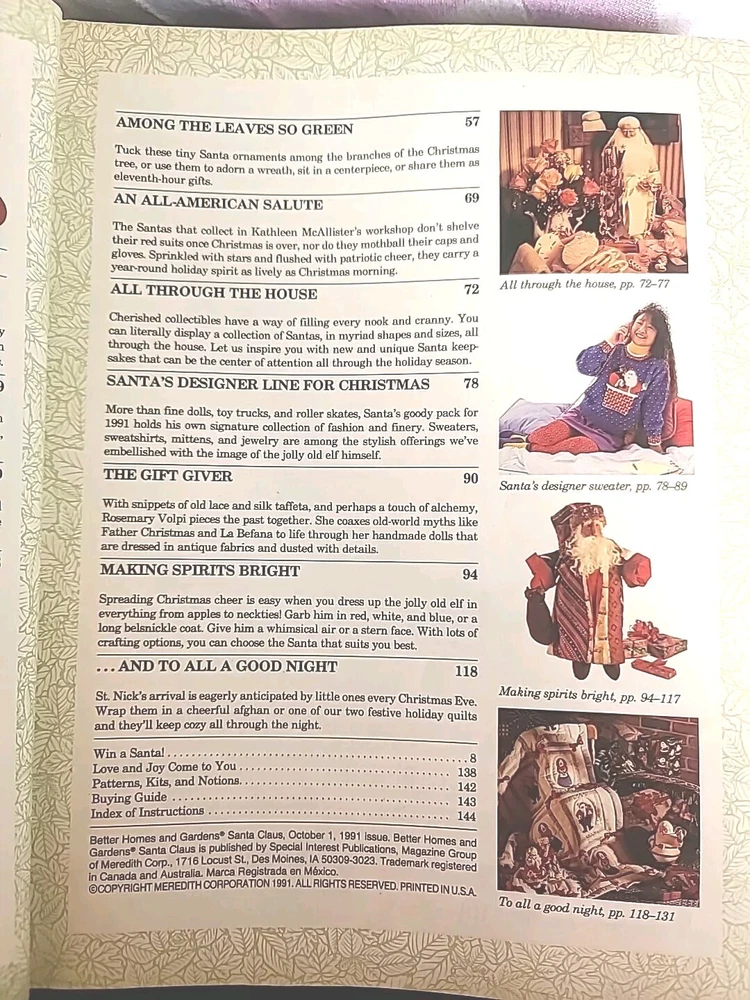 This lot includes three vintage Better Homes & Gardens magazines featuring Santa Claus and Christmas ideas. The magazines are from 1980, 1991, and 1995 and are in collector's edition, illustrated, and 1st edition. The magazines are in English and are perfect for those who enjoy craft books. The publisher of the magazines is BH&G and the topic is Christmas. This lot is a great addition to any collector's collection. All 3 magazines are in nice intact condition.