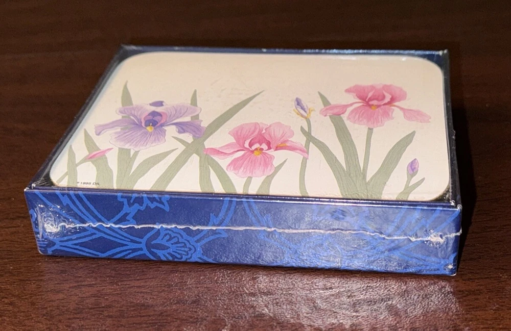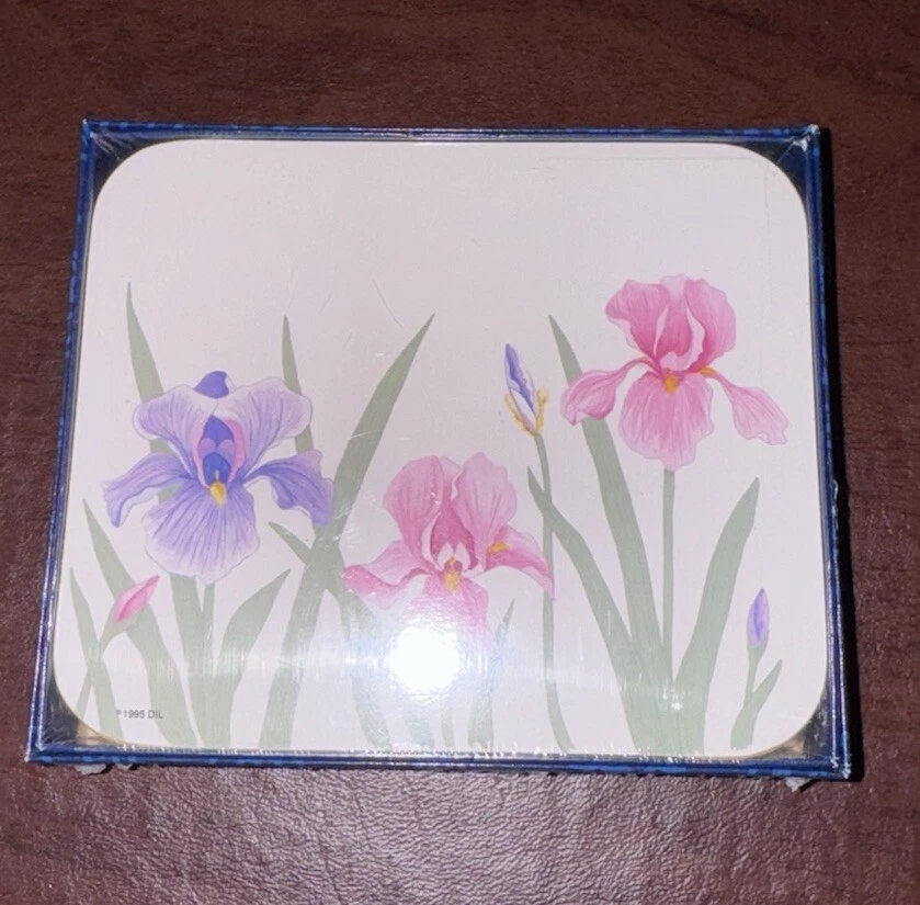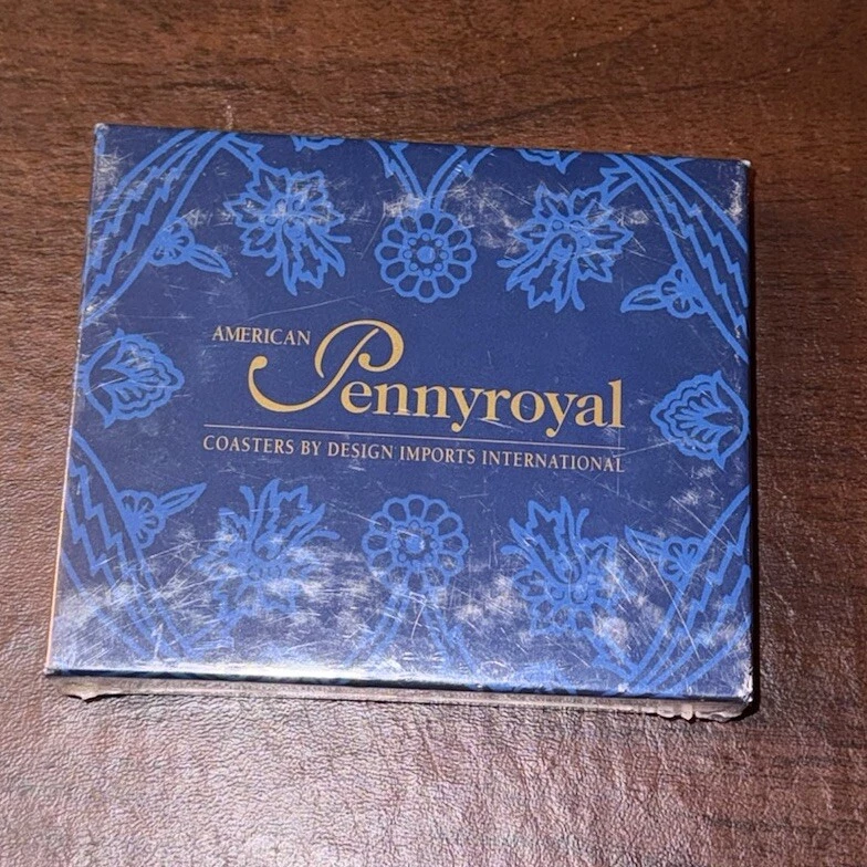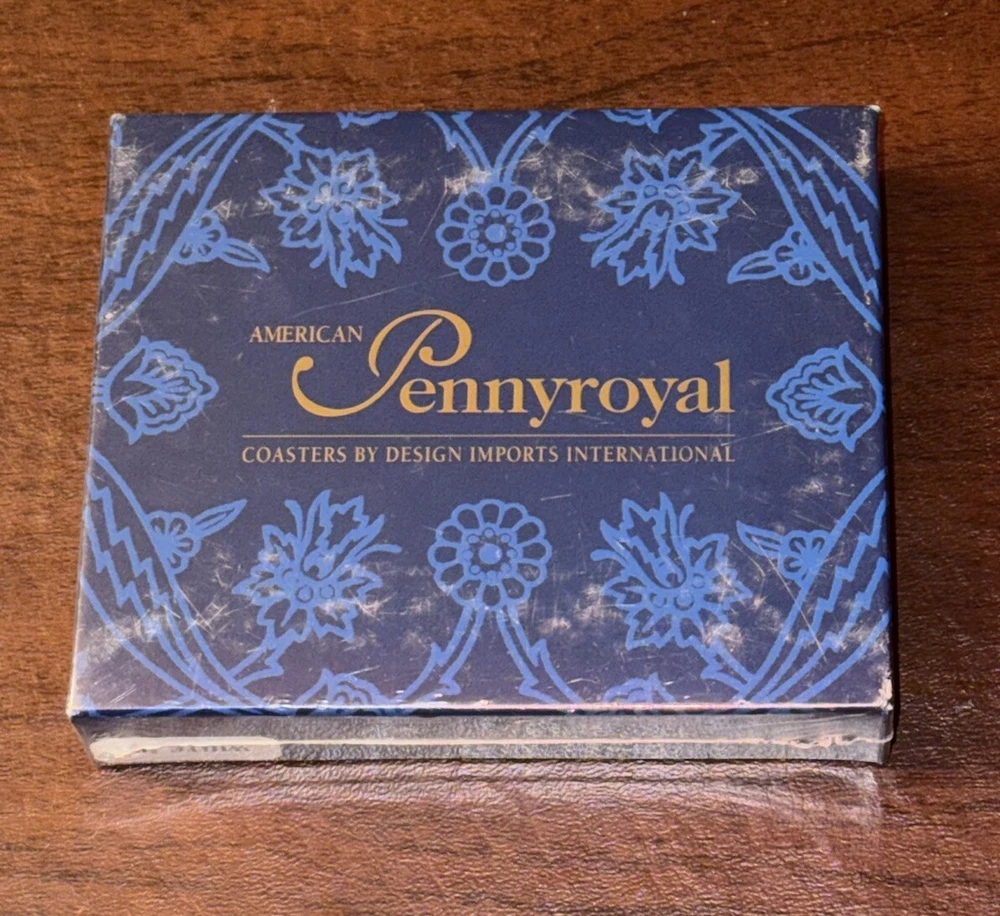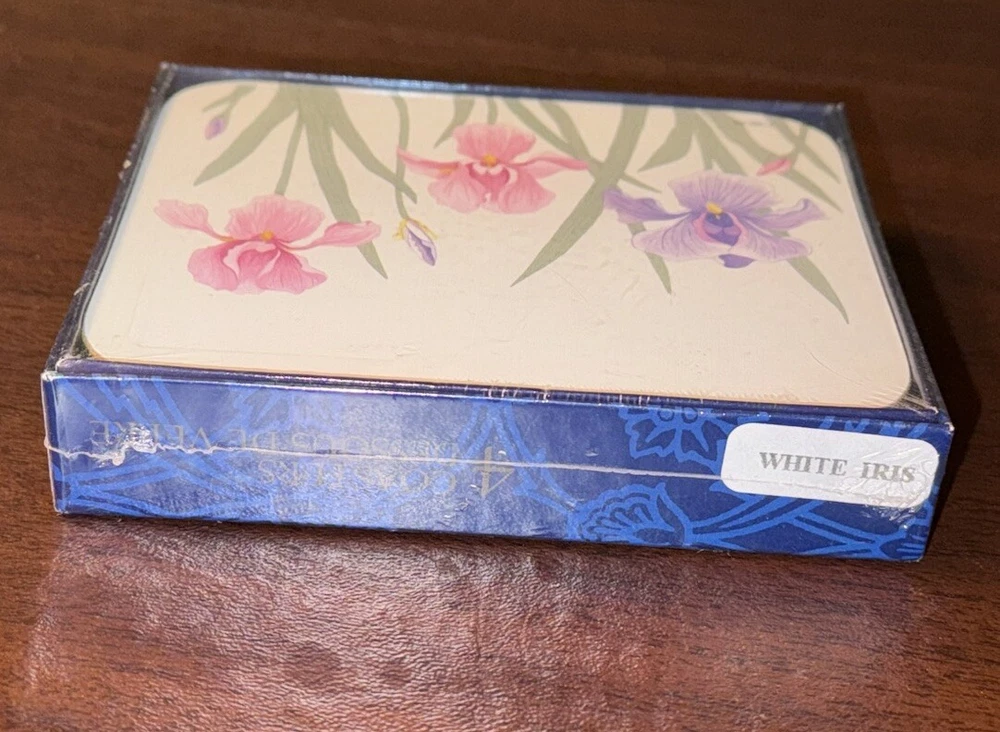 New sealed vintage 4 piece American Pennyroyal Coasters White Iris By Design Imports Int'l Sealed...