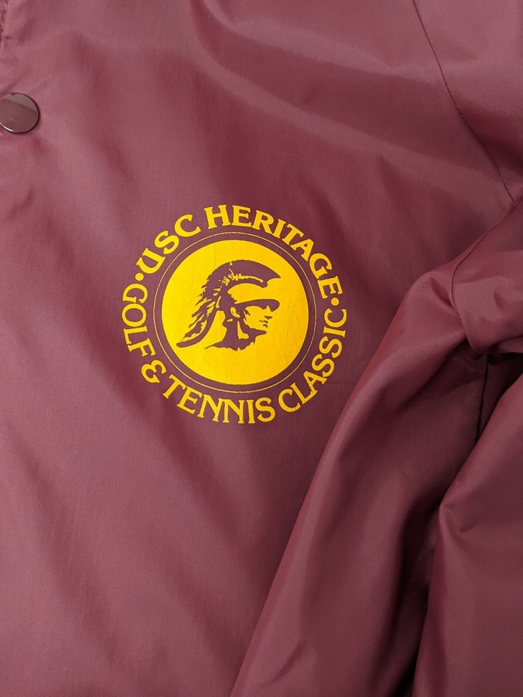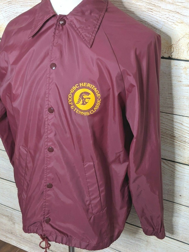 Vintage 1970's USC Trojans Heritage Golf and Tennis Classic Wind Breaker Jacket Mens M Flat Measure Underarm-underarm 22" Shoulder seam-cuff 23" Collar-hem 30" Snap Button Front 2 Front hand pockets Enlarge photos for details Please ask any questions before purchasing Customer Service is our top priority! Thank you for shopping with Traveling Soles!