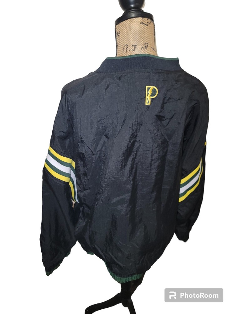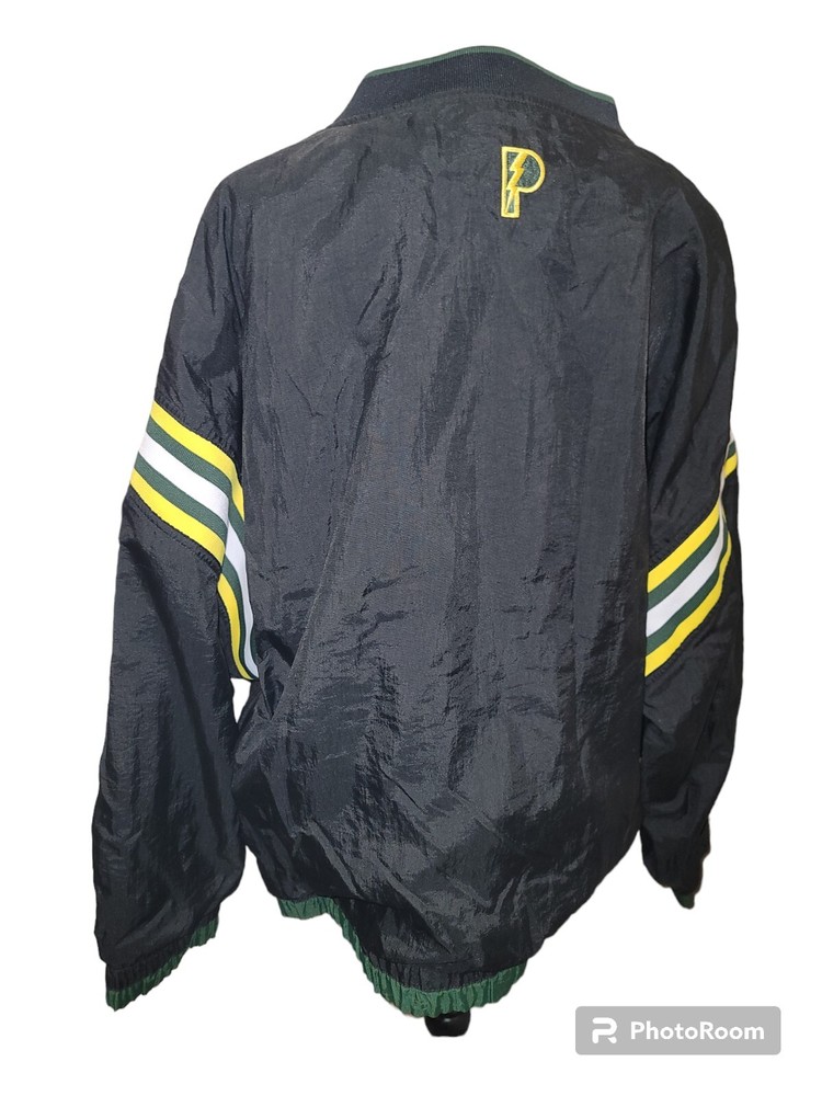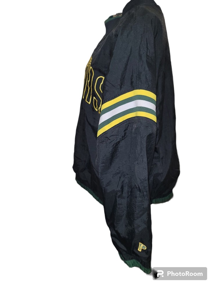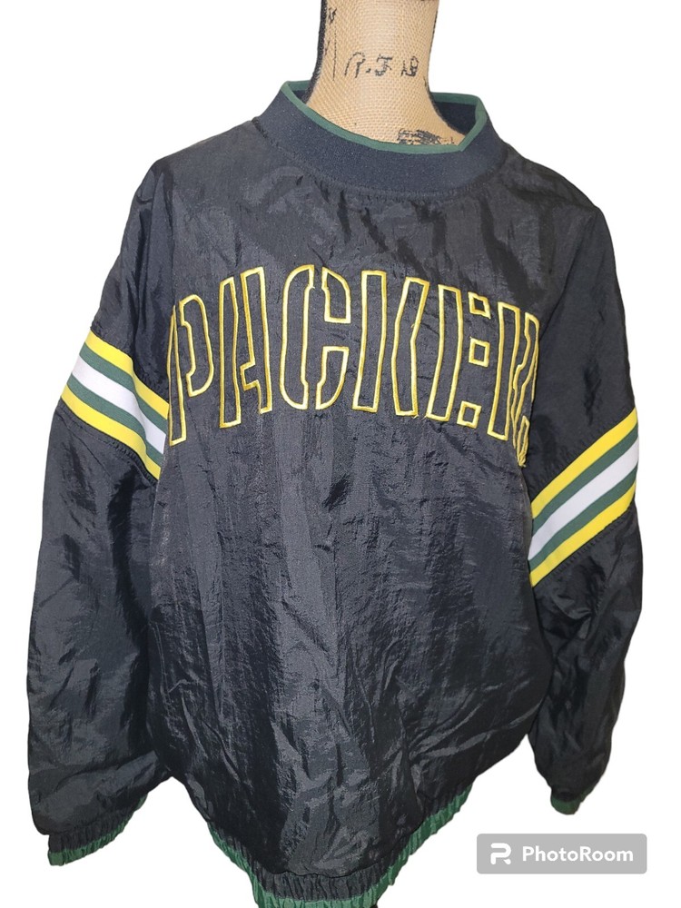 Show your love for the Green Bay Packers with this vintage 80's NFL football windbreaker pullover jacket. Made by Pro Player, this officially licensed jacket is perfect for any football fan. The jacket comes in black with the team's name and logo on the front and the back. The jacket has a large size and is suitable for men. It is perfect for the regular season games, and its quality is assured as it is made in Korea, Republic of. Get ready to cheer your favorite team to victory in this stylish jacket. Size Large Measurements Flat Lay Pit to pit 27" Length Shoulder to hem 28" Sleeve Pit to wrist 19" Vintage pre-owned gently used condition