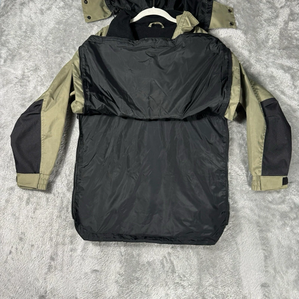 | Features | All Seasons, Breathable, Collared, Fishtail, Lightweight, Lined, Moisture Wicking, Pockets, Quick Dry, Wind-Resistant, Zipped Pockets, 1/4 Zip w/Velcro, Removable Hood that zips on w/2 Snaps, Sides Unzip w/velcro @ bottom of zippers |