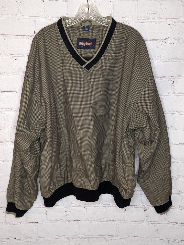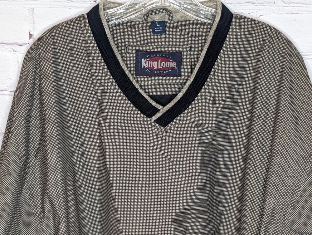 This vintage King Louie windbreaker is perfect for any occasion, whether you're hitting the links or just need a light pullover for travel or work. The pullover style with a v-neck and elastic waist provide a relaxed fit that's both comfortable and stylish. The jacket is made of windproof and wind-resistant polyester material, making it perfect for any season. This jacket features pockets for storing your essentials and a breathable, lightweight construction that keeps you comfortable in any weather. The classic golf and dad-inspired theme gives this jacket a timeless look that's perfect for any wardrobe. Whether you're walking, hiking, or playing golf, this windbreaker is the perfect addition to your collection.