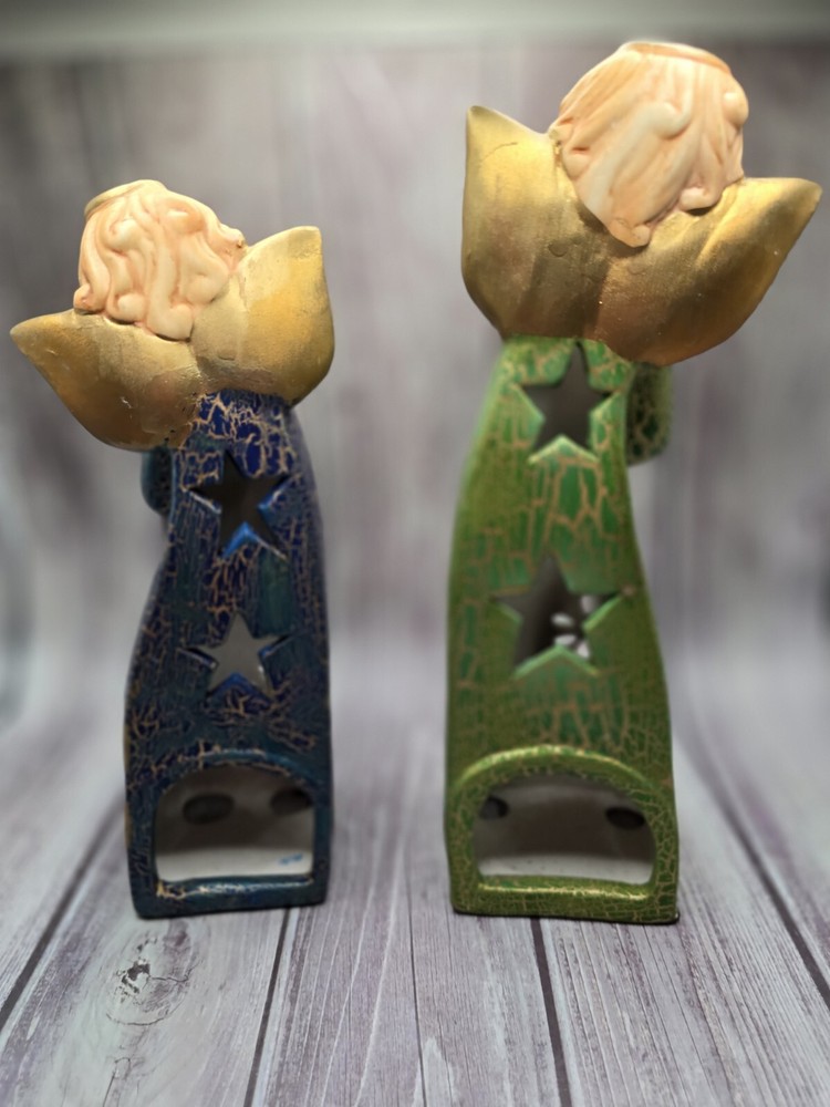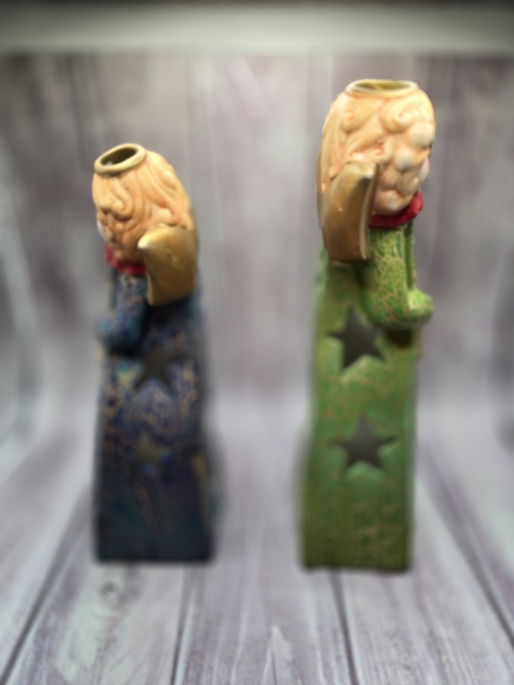 Add a touch of elegance to your home decor with this vintage 90s porcelain candle holder from Pier 1 Imports. Featuring a beautiful angel design, this multicolor candle holder is perfect for all occasions and adds a cozy touch to any room. Made from high-quality porcelain, this candle holder is a must-have for collectors and decorators alike. Whether you're looking to add to your collection or simply want to enjoy the warm glow of a candle, this piece is sure to impress.