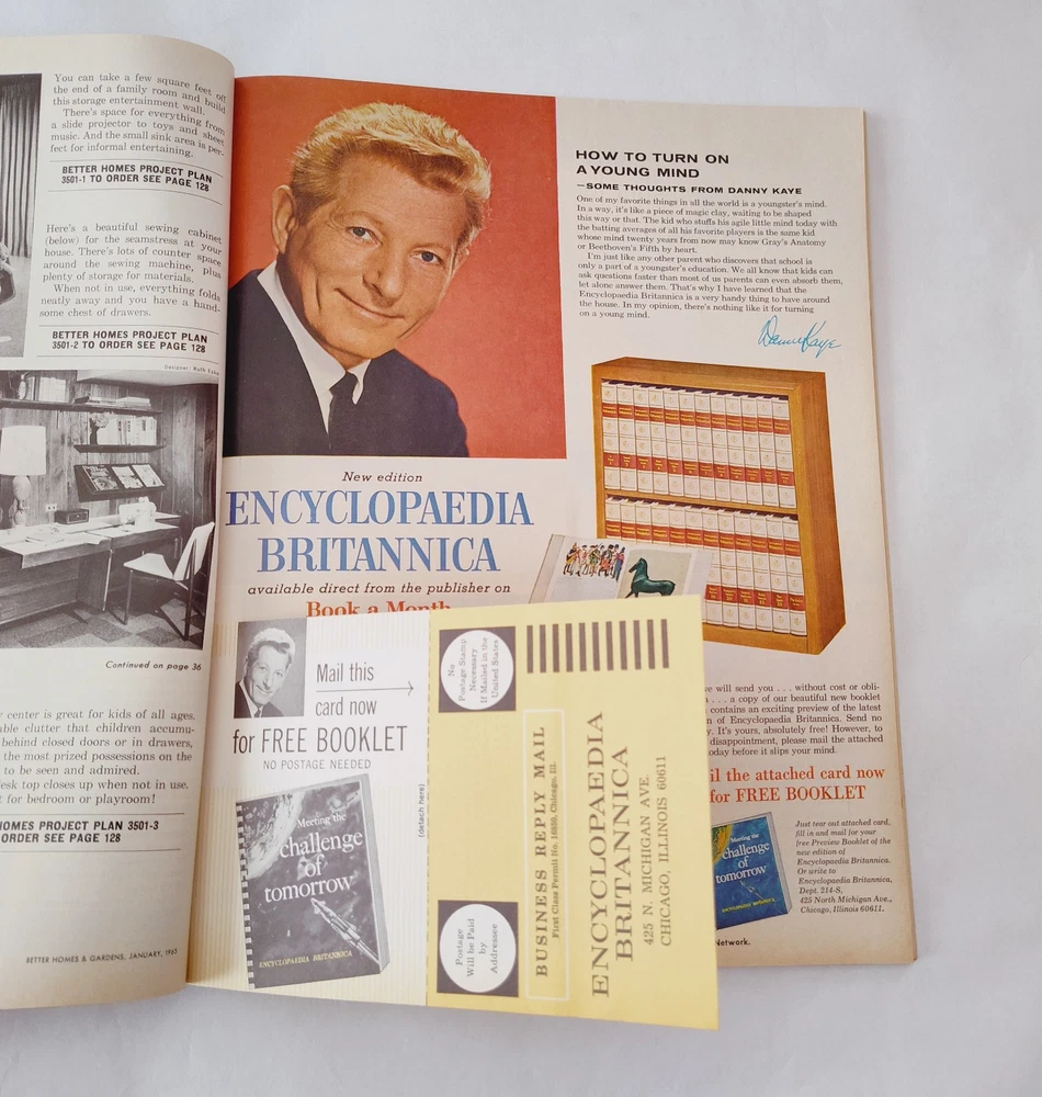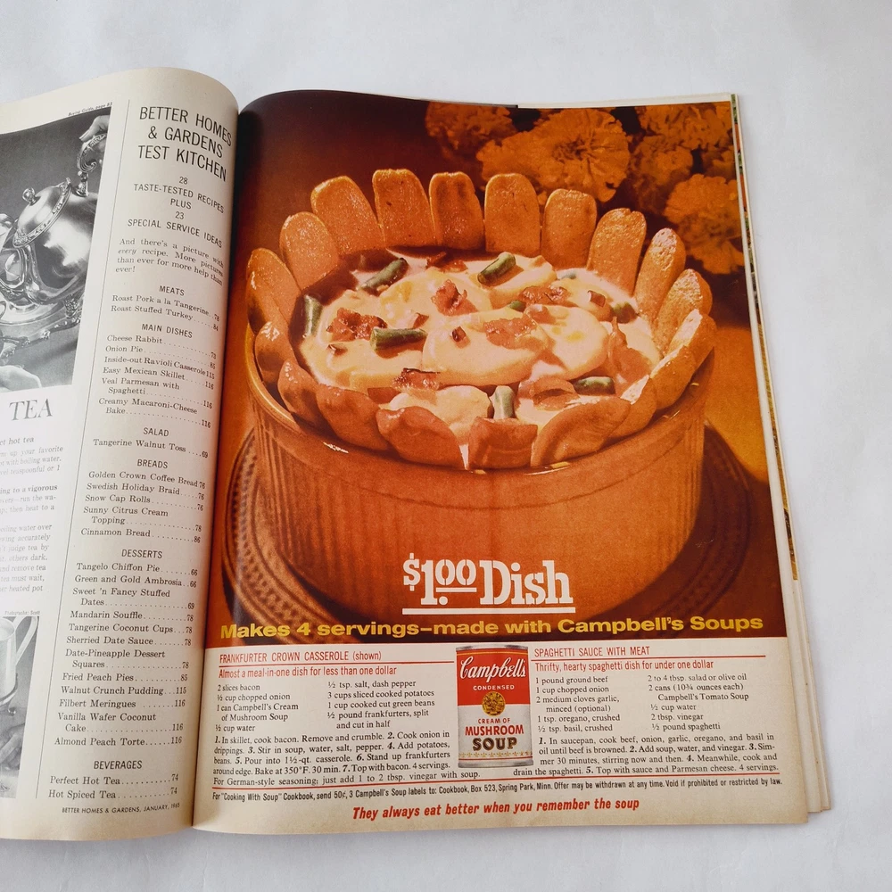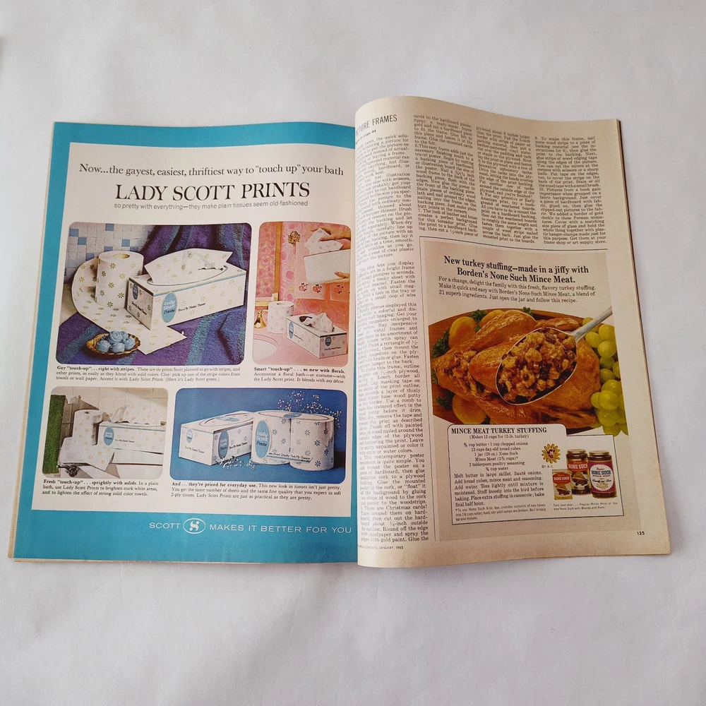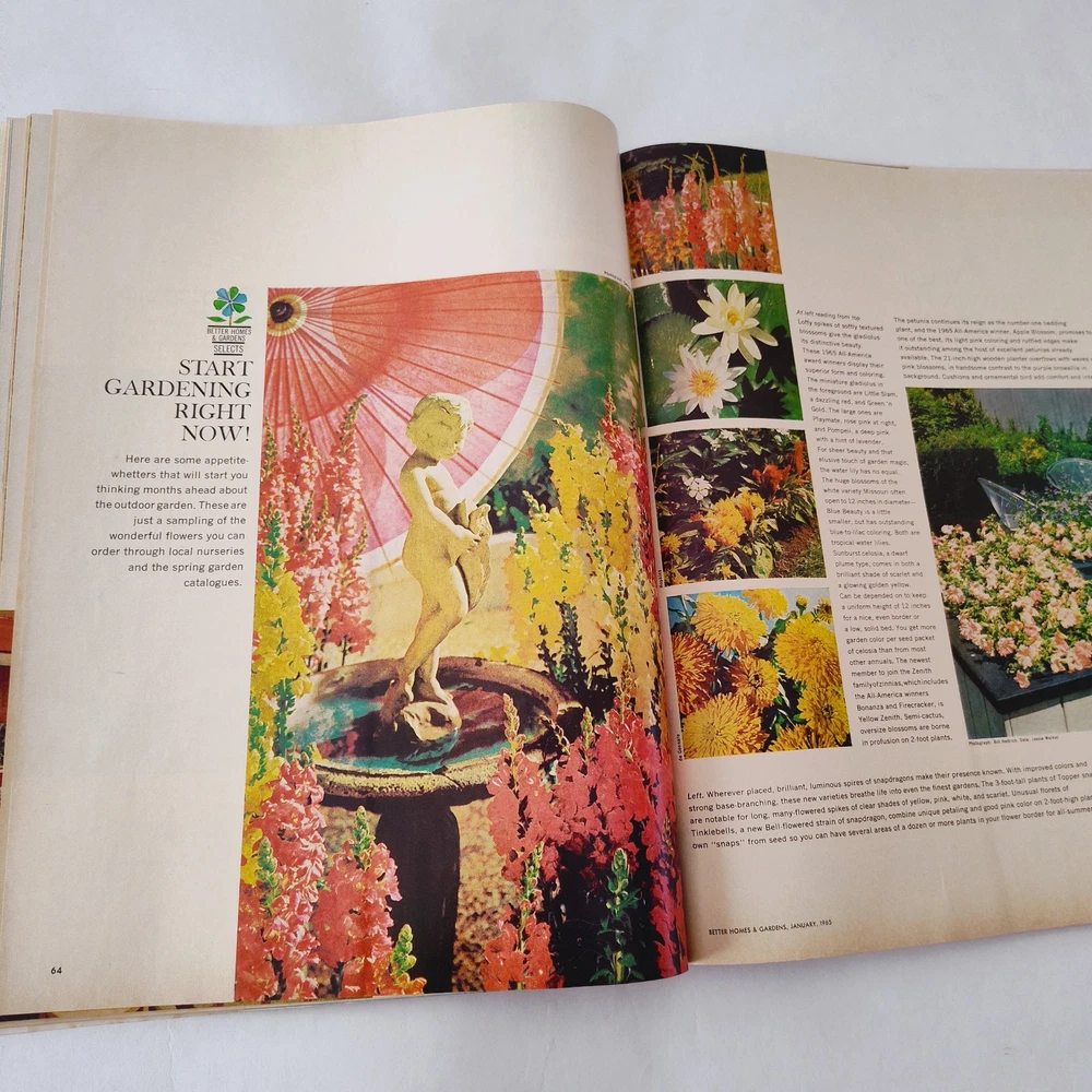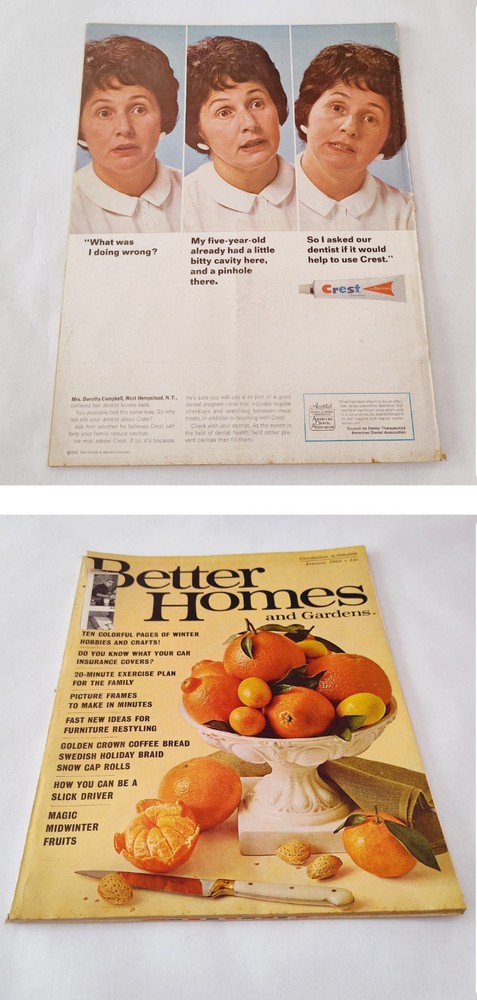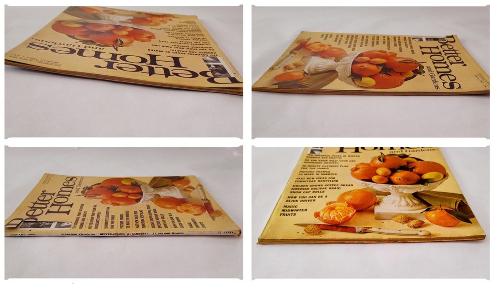 Oversize Vintage Better Homes & Gardens Magazine January 1965 Volume 43 BHG MCM In overall good condition for its age. Some yellowing on the pages can be expected. The mailing label has been cut out of the cover. Many full page and spread ads, all recipes, recipe cards, coupons and inserts intact. See all pictures as part of the description. Ships fast, packaged with great care for rigidity and protection in transit. Shop with confidence!