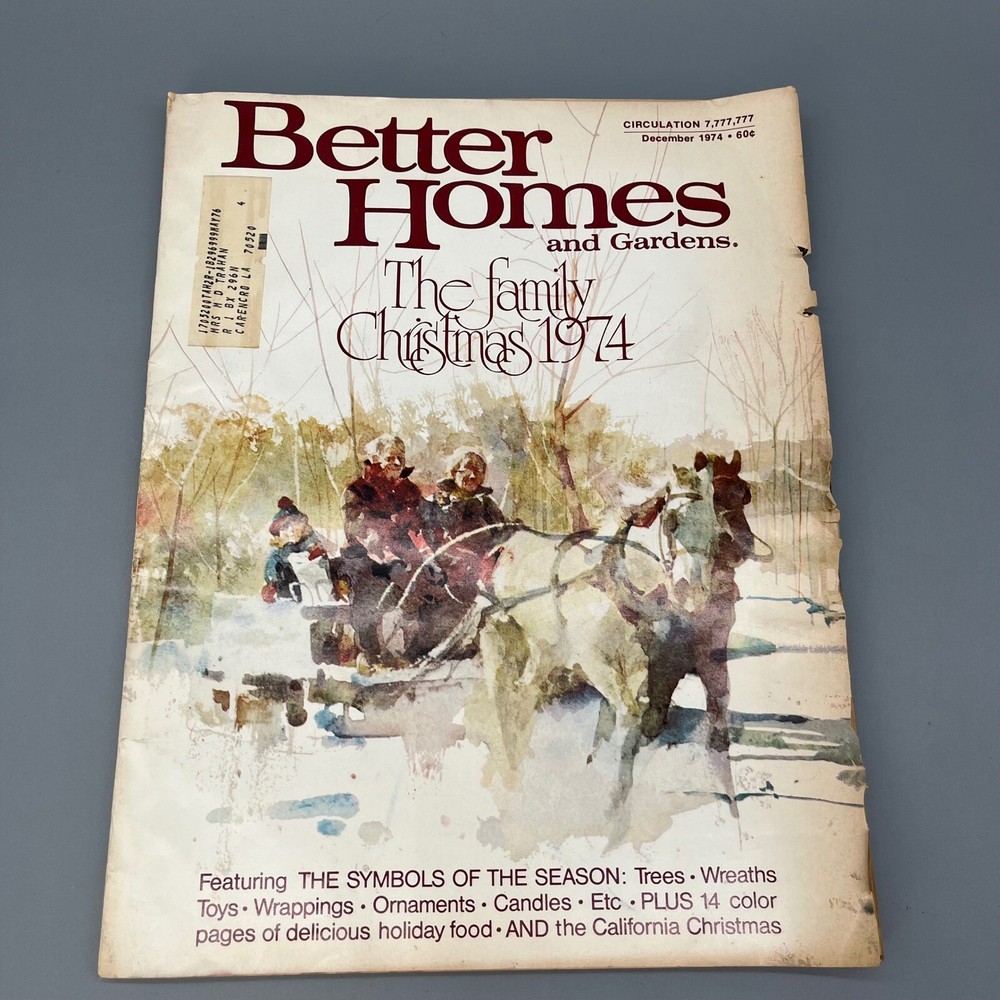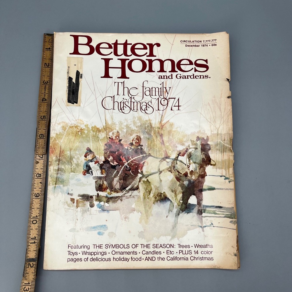 Vtg Better Homes & Gardens Magazine The Family Christmas 1974 Holiday Issue Dec. Publication Name: Better Homes and Gardens Publication Year: 1974 Publication Month: December Genre: Home & Garden, Cooking, Home Decor, Advertisements Topic: Christmas, Holidays, Recipes, Vintage Ads, Family Christmas Language: English Features: Illustrated, Collector's Edition Keywords: Better Homes and Gardens, Magazine, Vintage, December 1974, Christmas, Holiday, Collectable, Retro, 1970s, Home Decor, Recipes, Advertisements, Family Christmas, Horse Drawn Sleigh, Vintage Ads Please review photos carefully and use the Zoom Feature because what you see is what is being sold. No returns if used or installed. Sold "as is". Prompt shipping most next day. I strive for 100% positive feedback so feel free to message me with any questions or concerns.